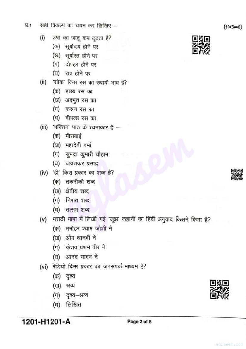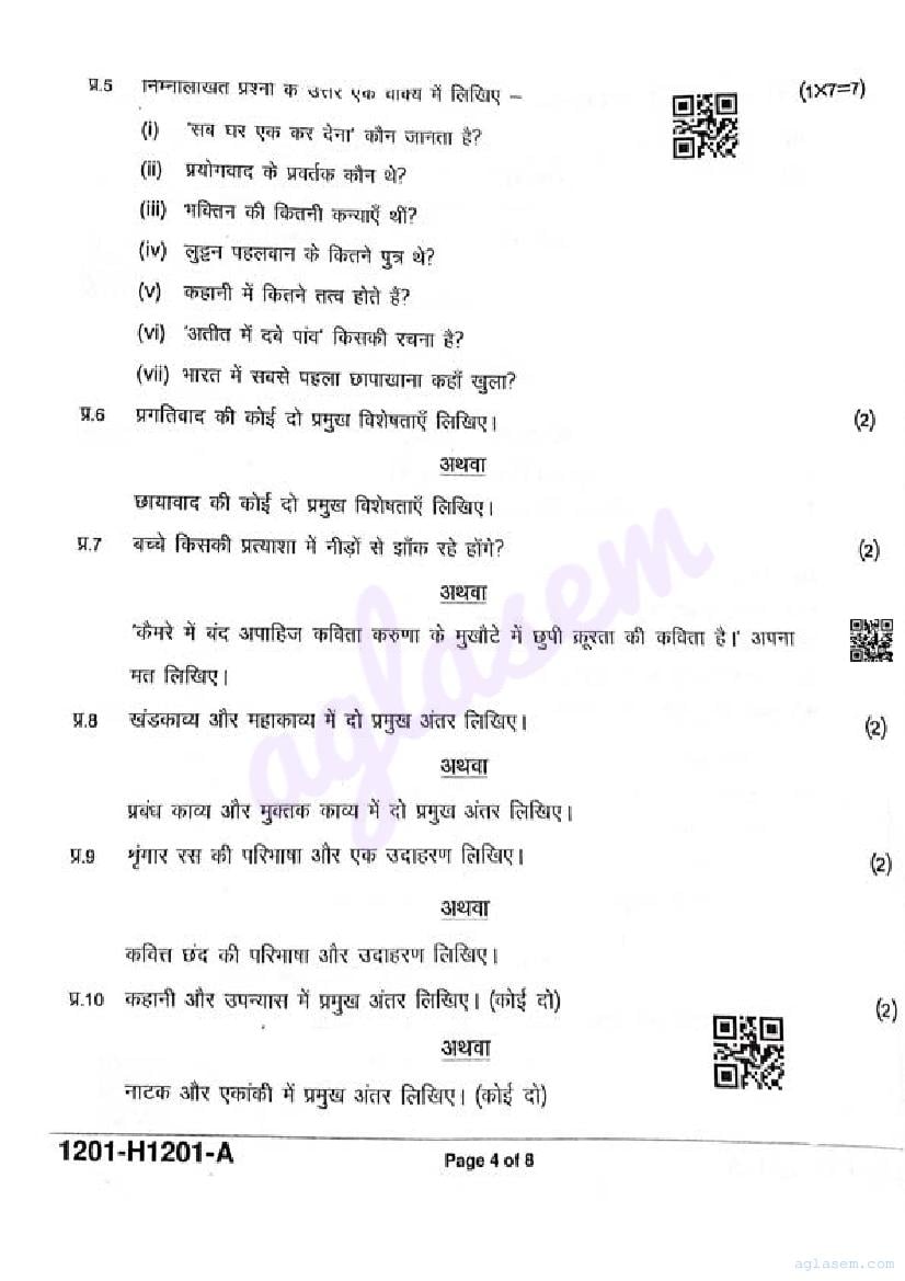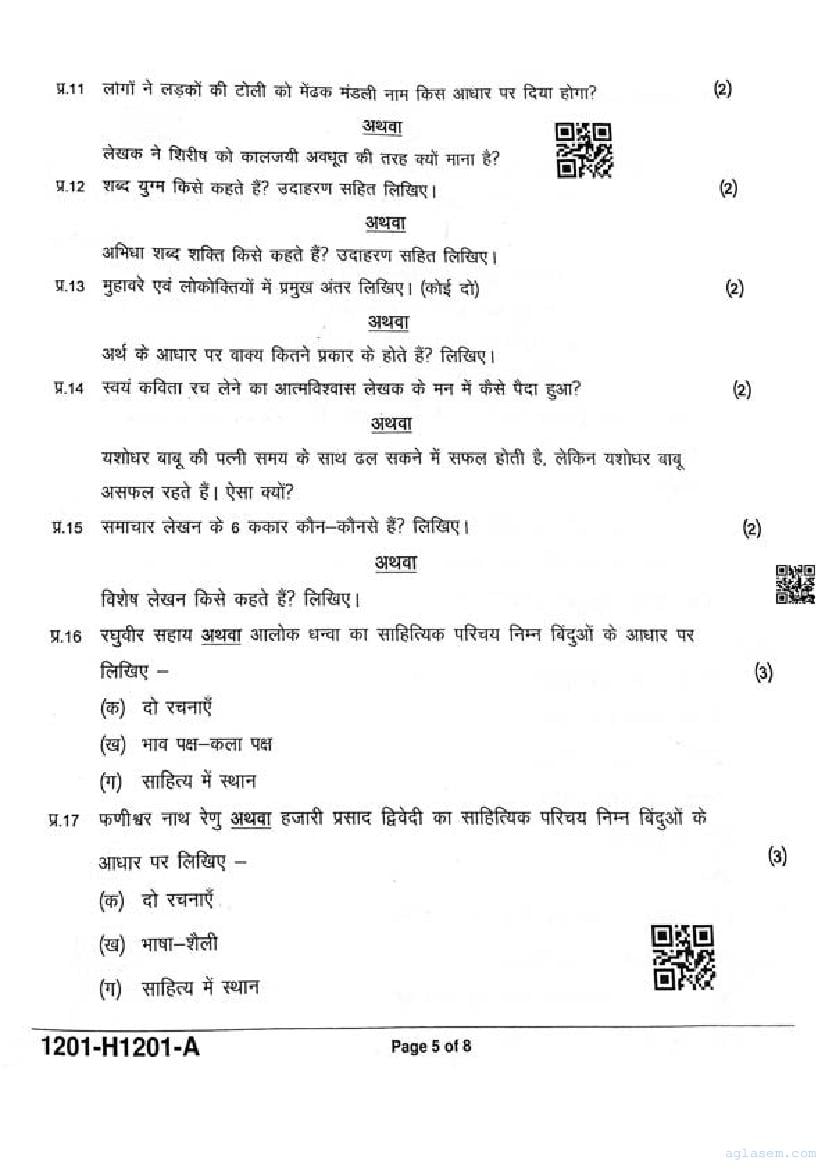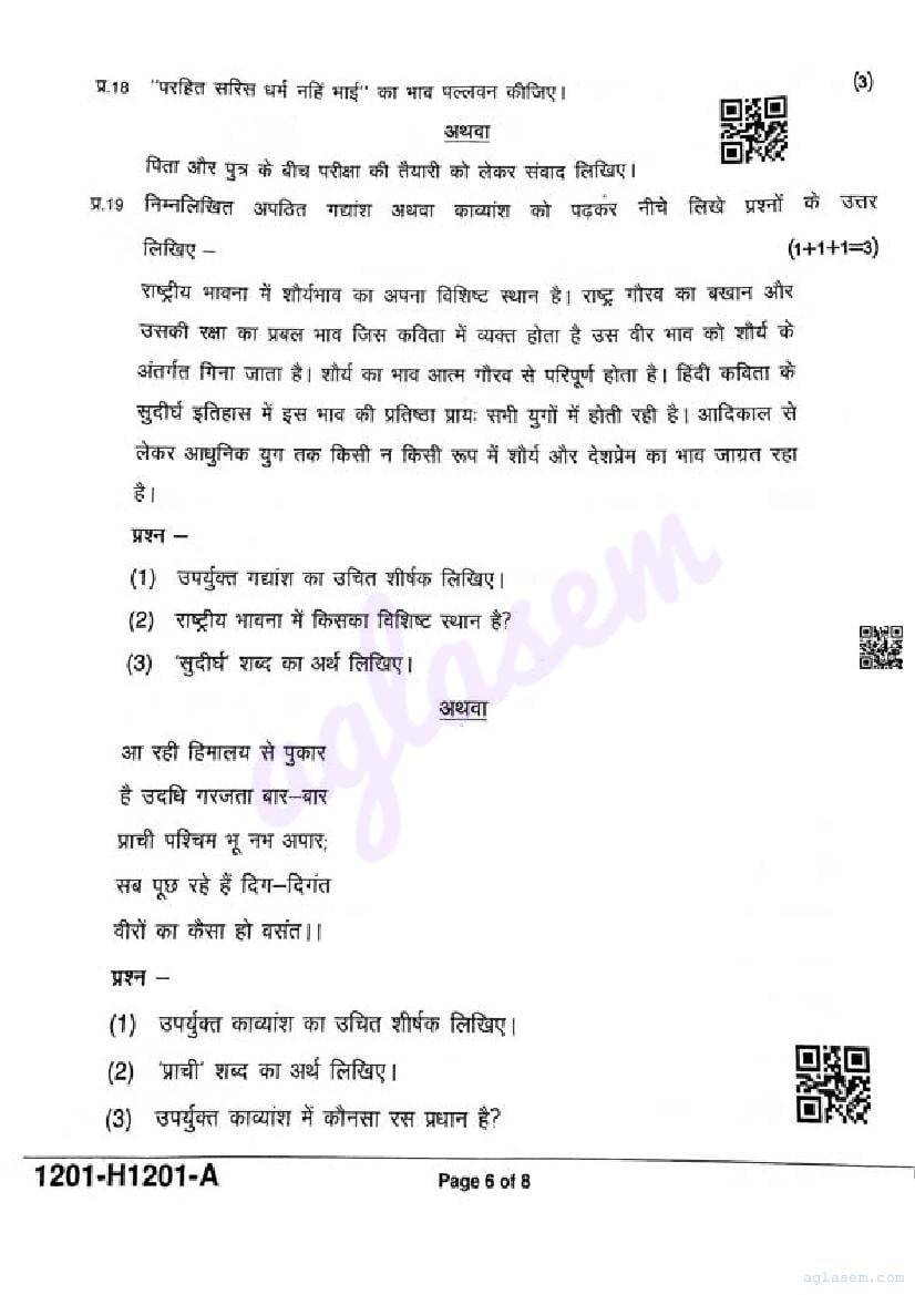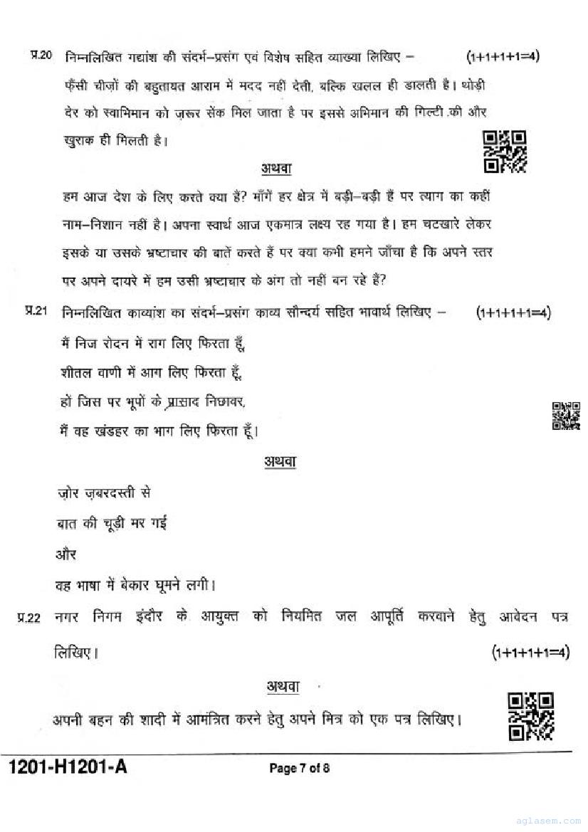 It is a good idea to download the class 12 Hindi question paper from aglasem, using above link. However if you want to read all the questions in 12th standard ardhvaarshik pariksha for Hindi, then you can also view the complete Hindi question paper here itself. The entire contents of the ardhvaarshik pariksha question paper for class 12 Hindi are as follows.
