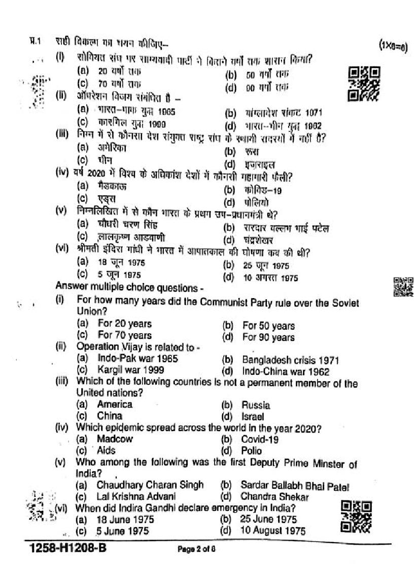 | Paper | Madhya Pradesh Class 12 Political Science Ardhvaarshik Pariksha Question Paper |
