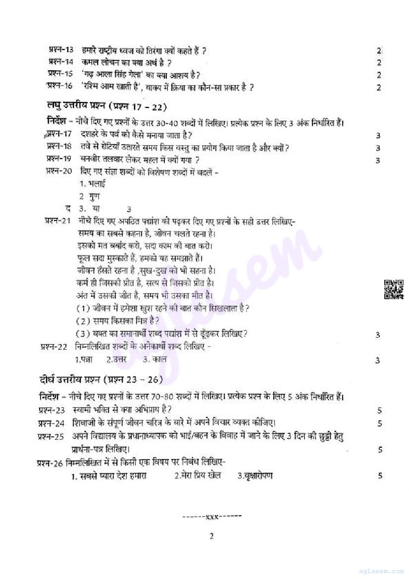 The MP Board Question Paper of class 5 Ardhvaarshik Exam for Hindi subject is as follows.