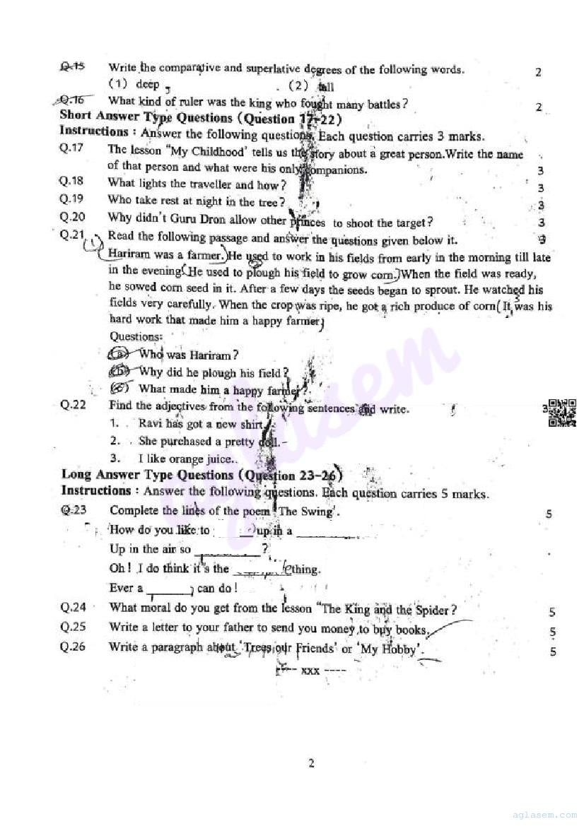 It is a good idea to download the class 6 English question paper from aglasem, using above link. However if you want to read all the questions in 6th standard ardhvaarshik pariksha for English, then you can also view the complete English question paper here itself. The entire contents of the ardhvaarshik pariksha question paper for class 6 English are as follows.