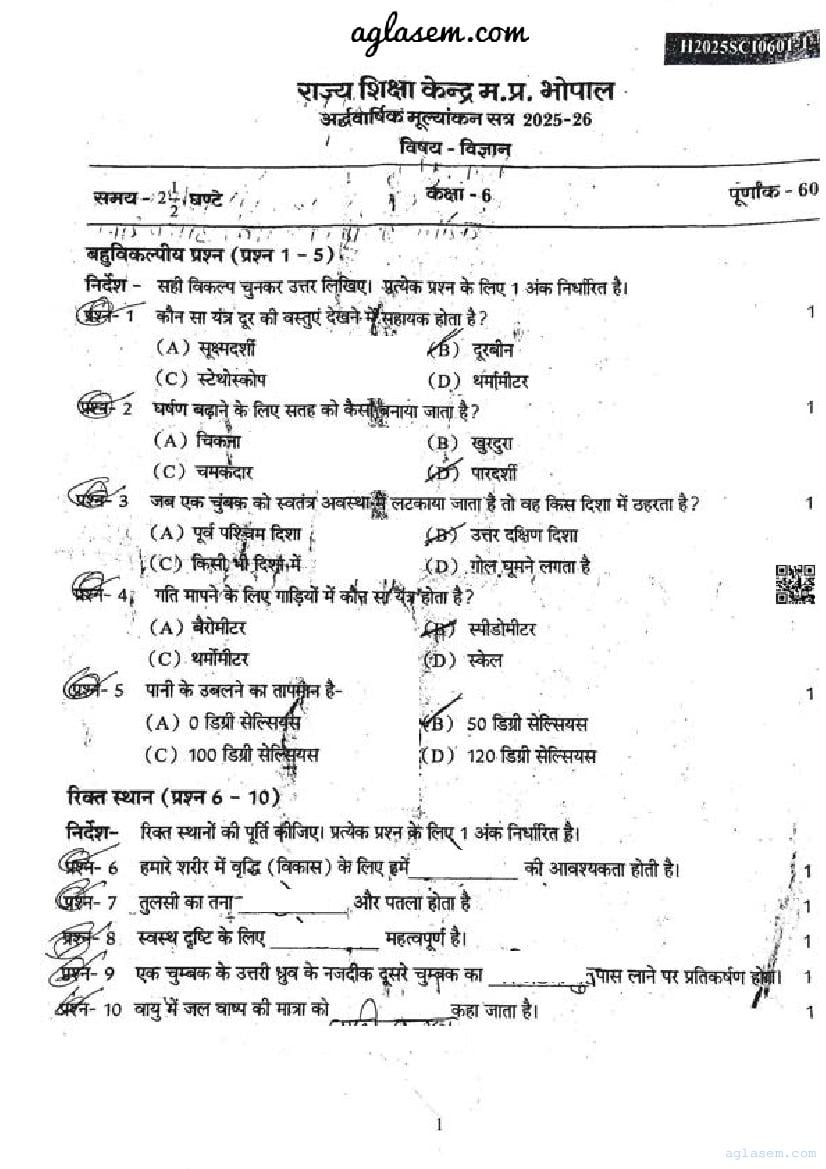 MP Board Class 6th Science Ardhvaarshik Paper 2025-26 PDF – Click Here to Download Question Paper