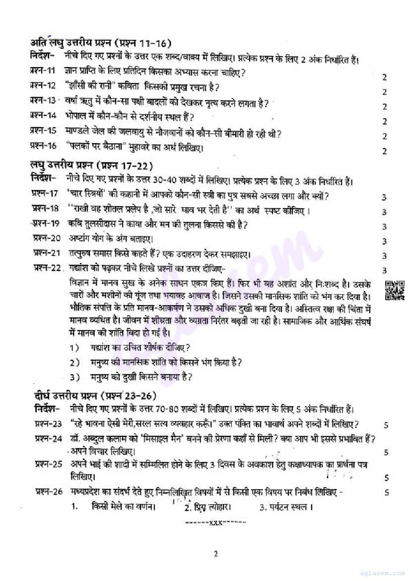 | Paper | Madhya Pradesh Class 7 Hindi Ardhvaarshik Pariksha Question Paper |