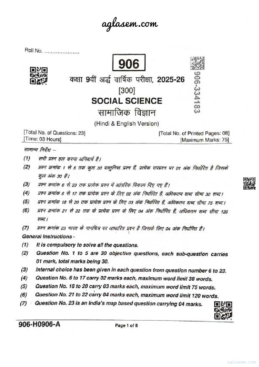 MP Board Class 9th Social Science Ardhvaarshik Paper 2025-26
