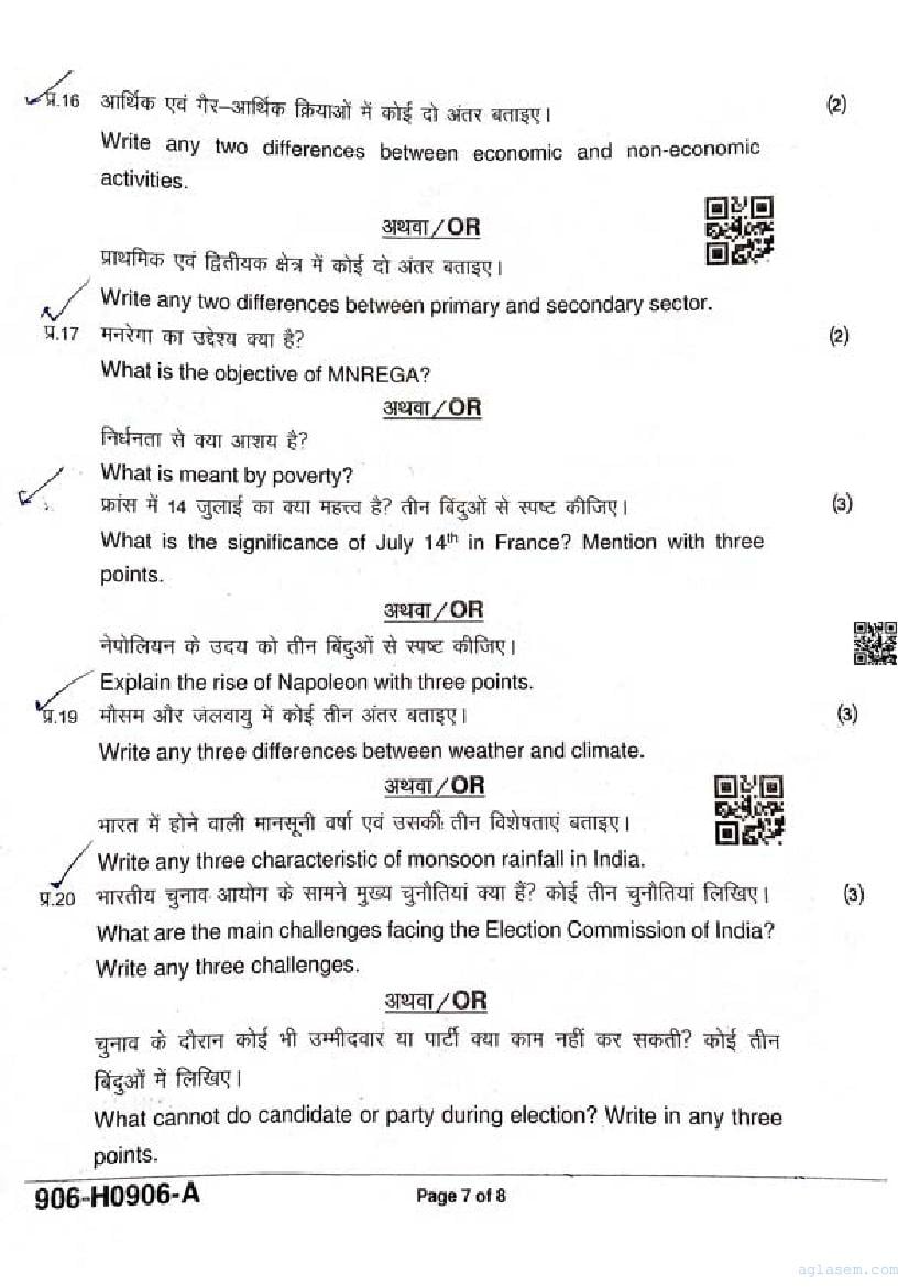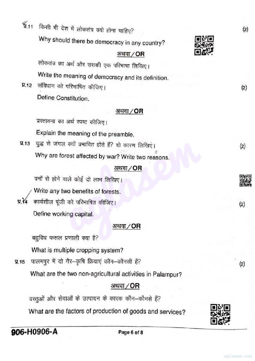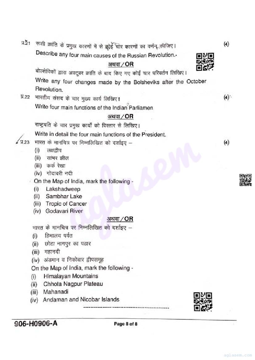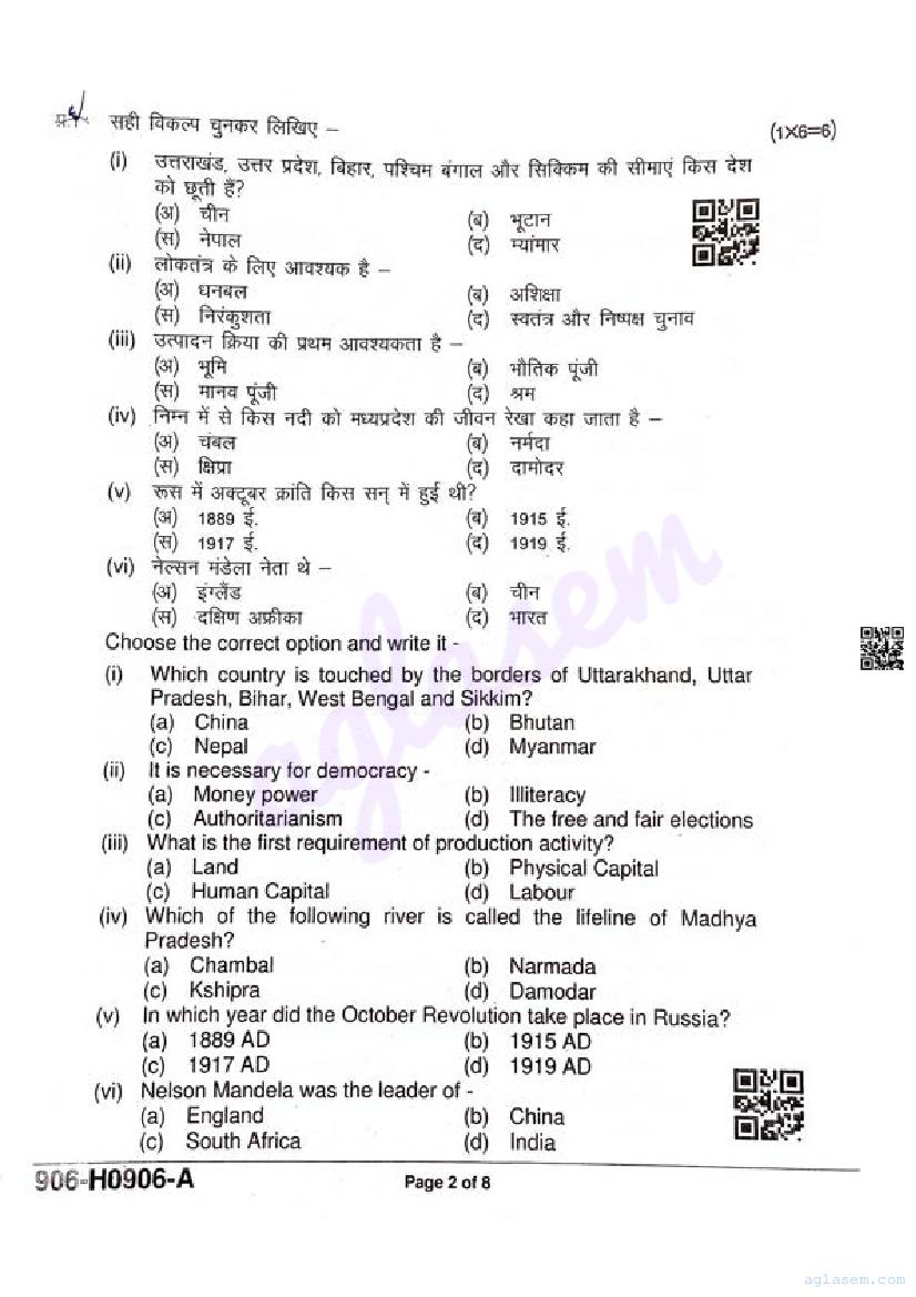 The MP Board Question Paper of class 9 Ardhvaarshik Exam for Social Science subject is as follows.