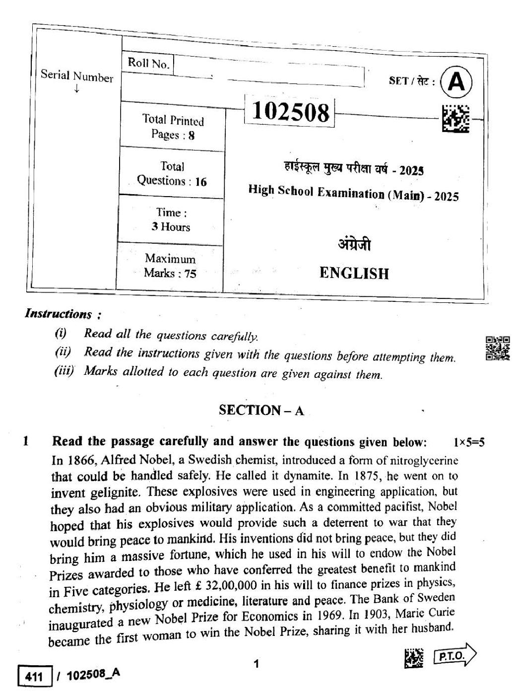 - MP Board Question Paper Class 12th