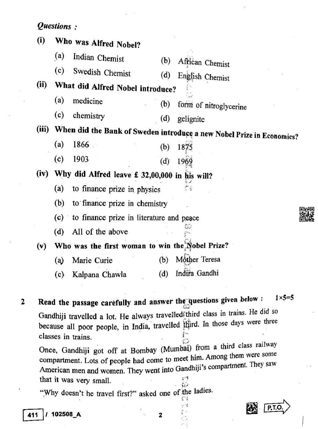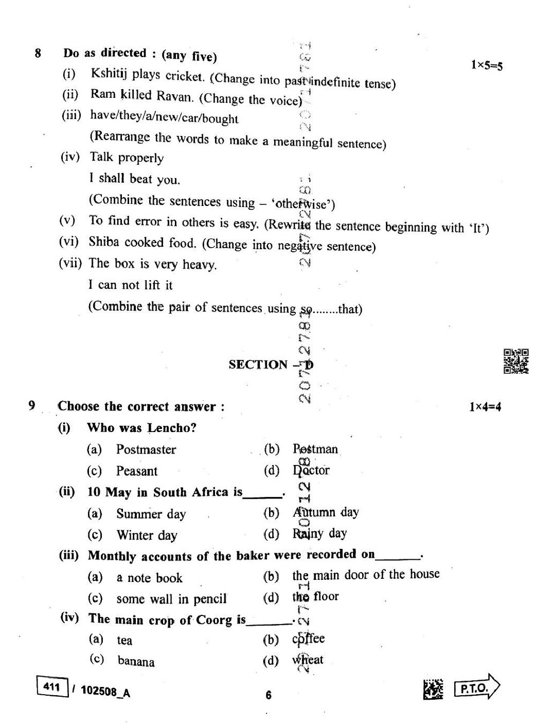 - MP Board Question Paper Class 9th