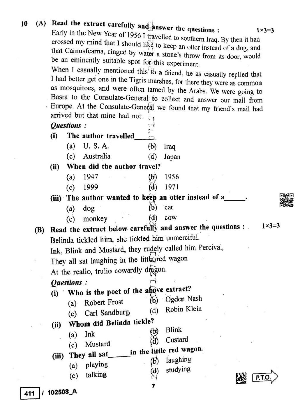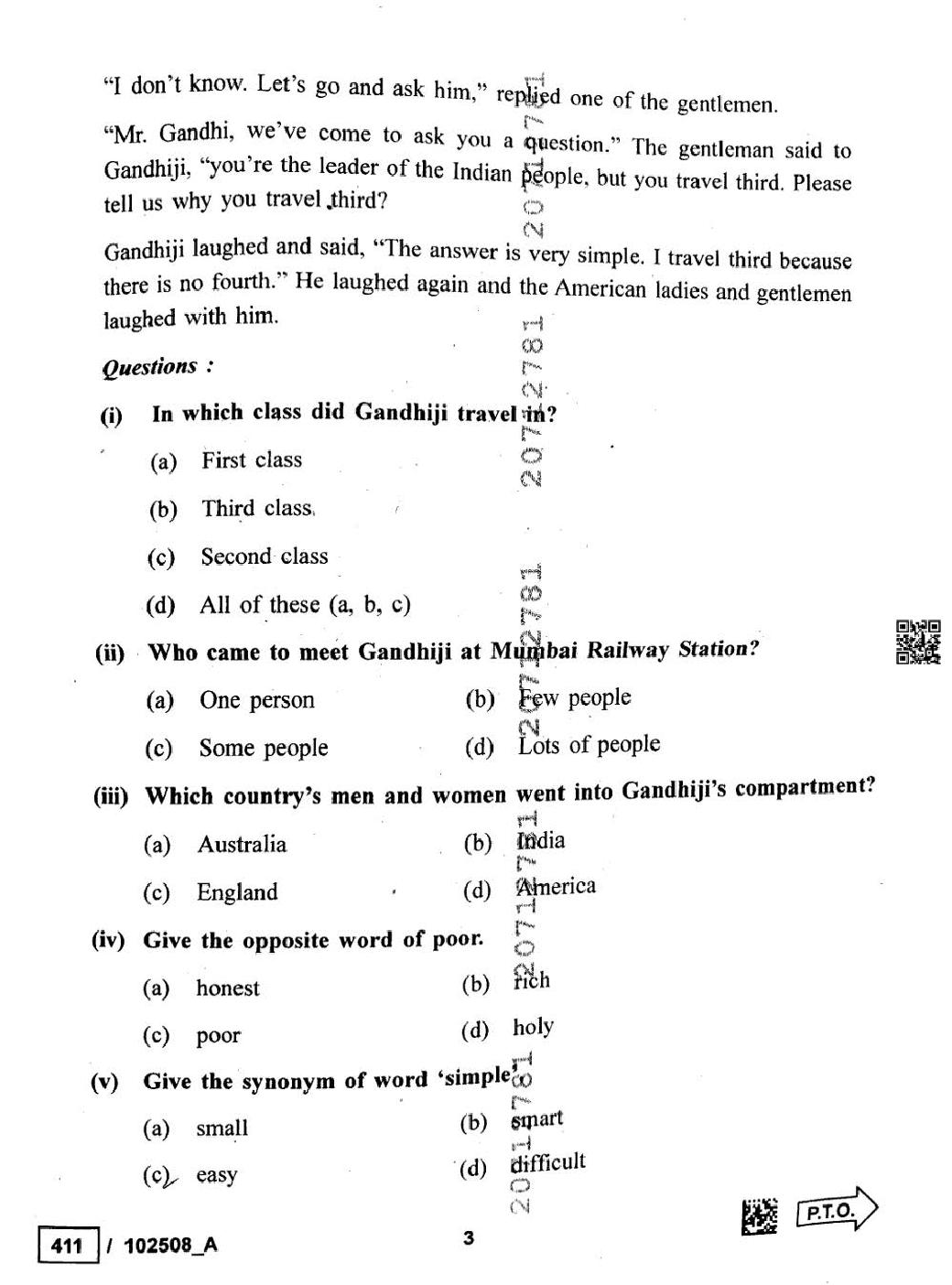 MP Board Class 10 English Question Paper