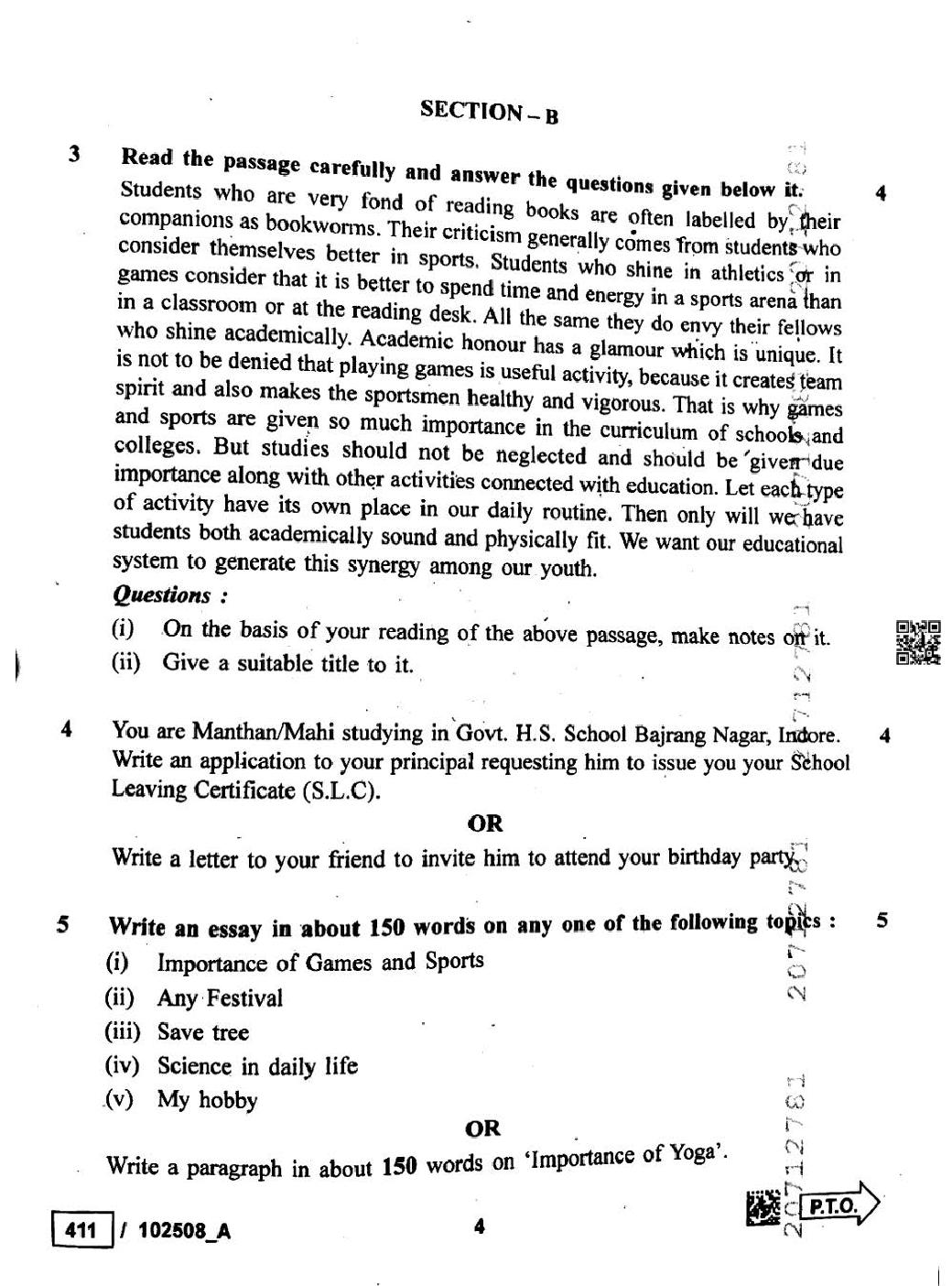 MP Board Question Papers