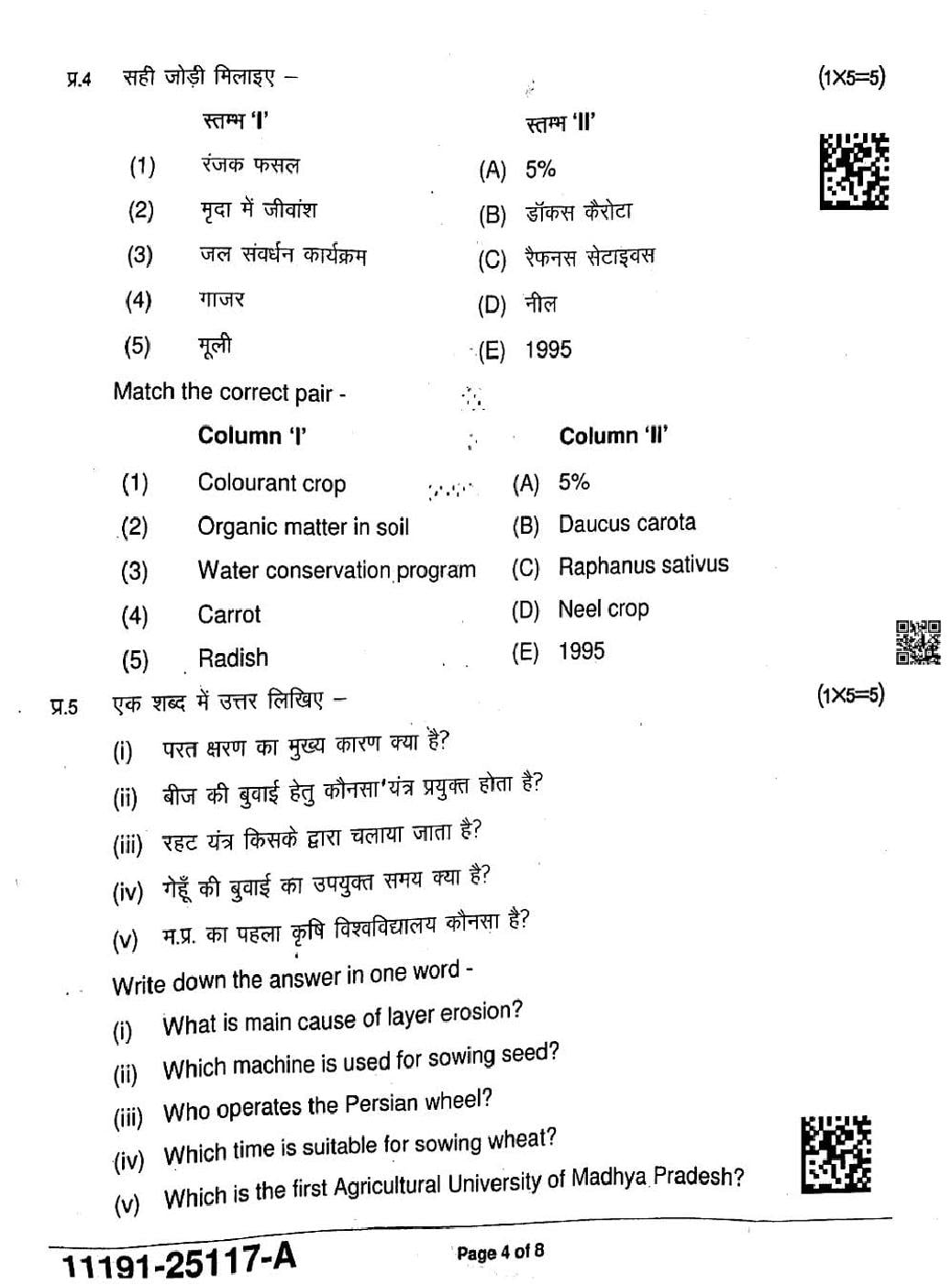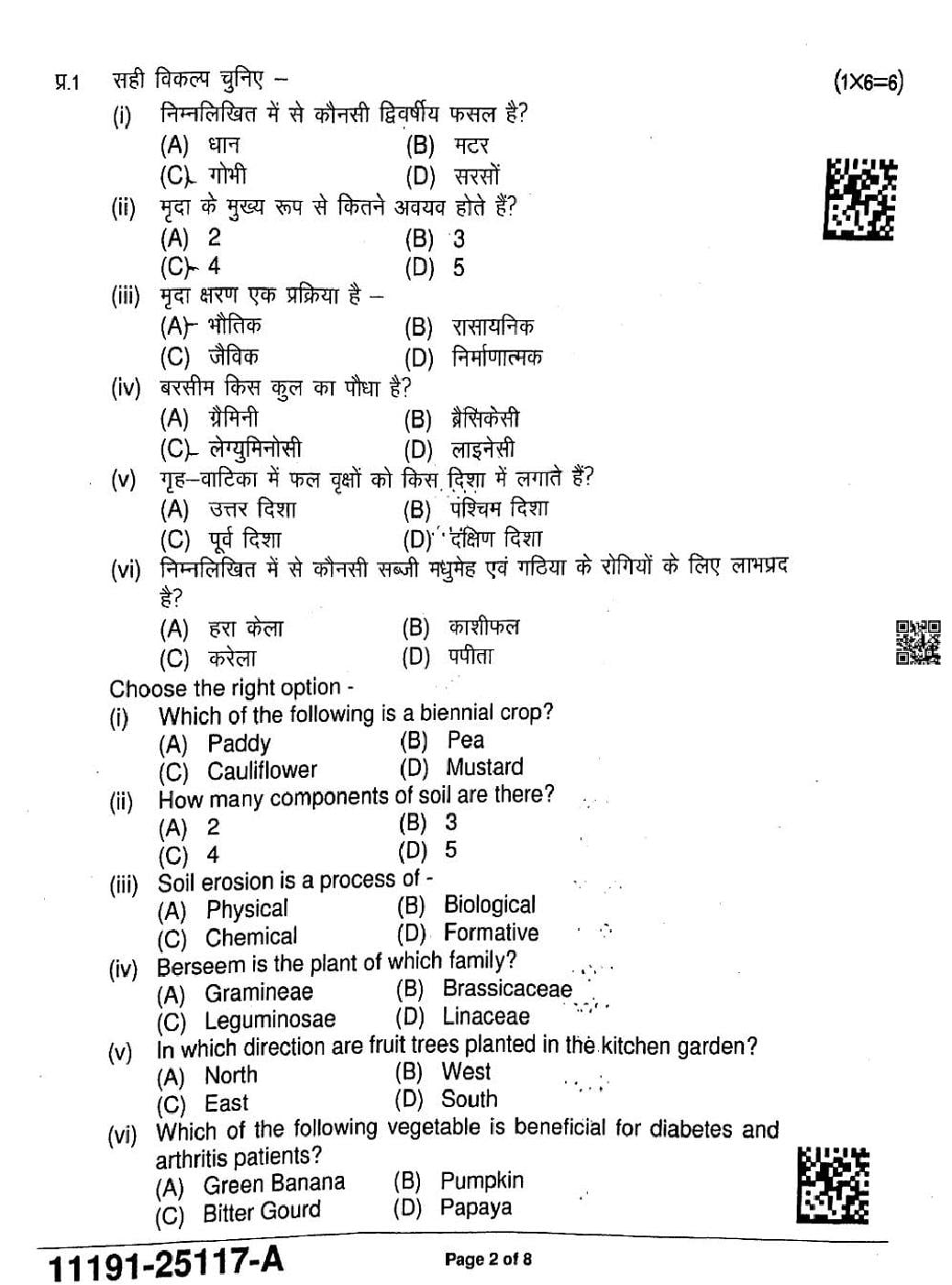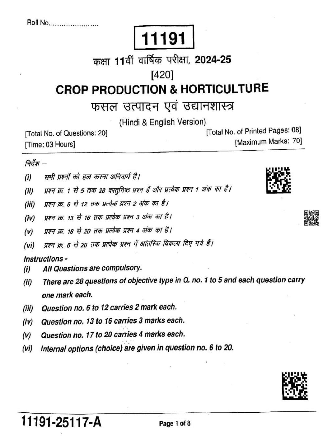 MP Board Class 11th Crop Production and Horticulture Question Paper 2025 PDF