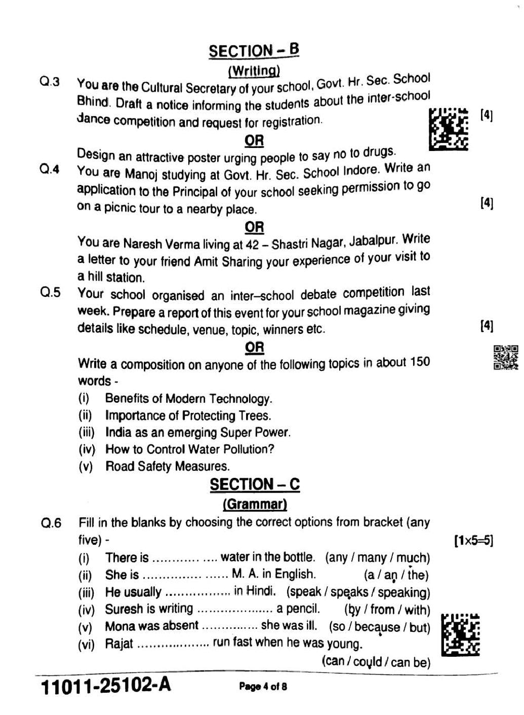 एमपी बोर्ड कक्षा 11वी के क्वेश्चन पेपर्स यहाँ से डाउनलोड करे। Download MP Board Old Papers for English subject from here.