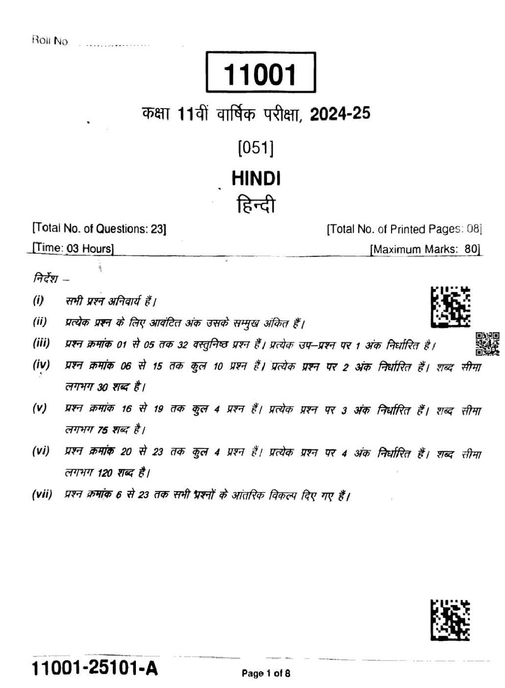 It is a good idea to download the class 11 question paper from aglasem for Hindi subject, using above link or view pdf below.