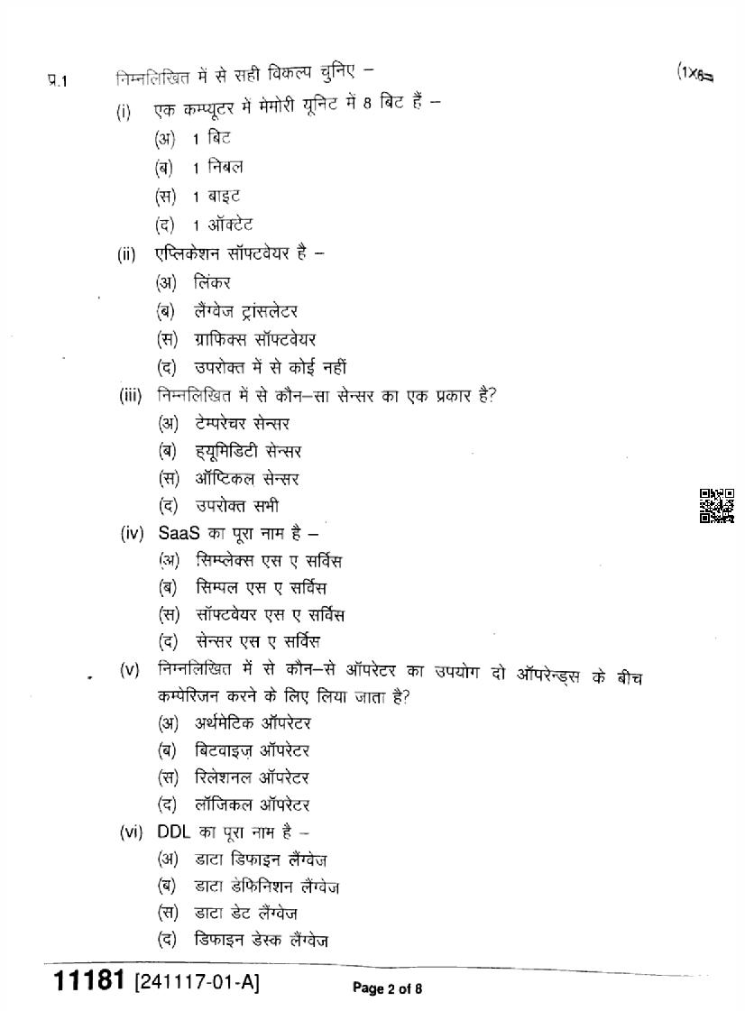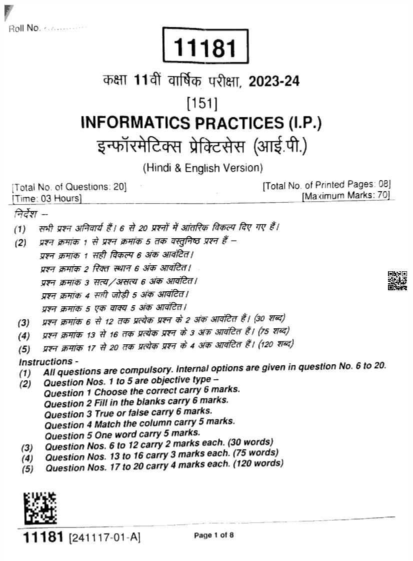 MP Board Class 11 Question Paper 2024 Informatics Practices View Download
