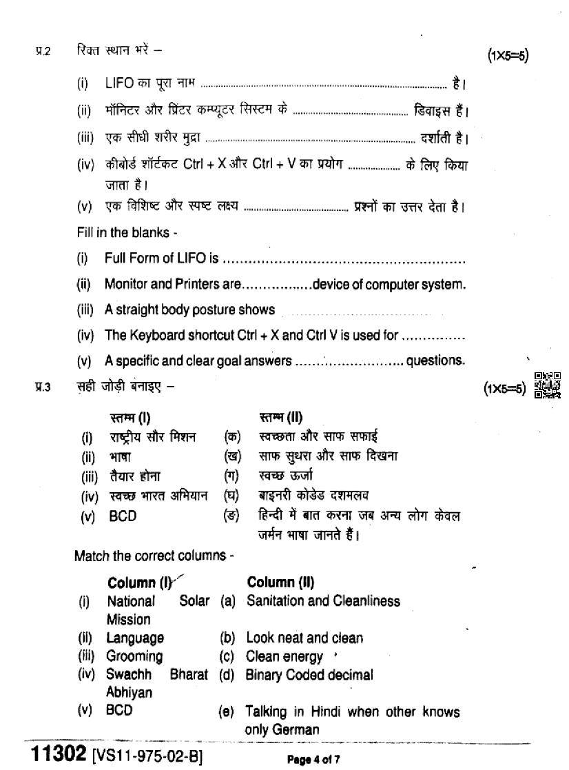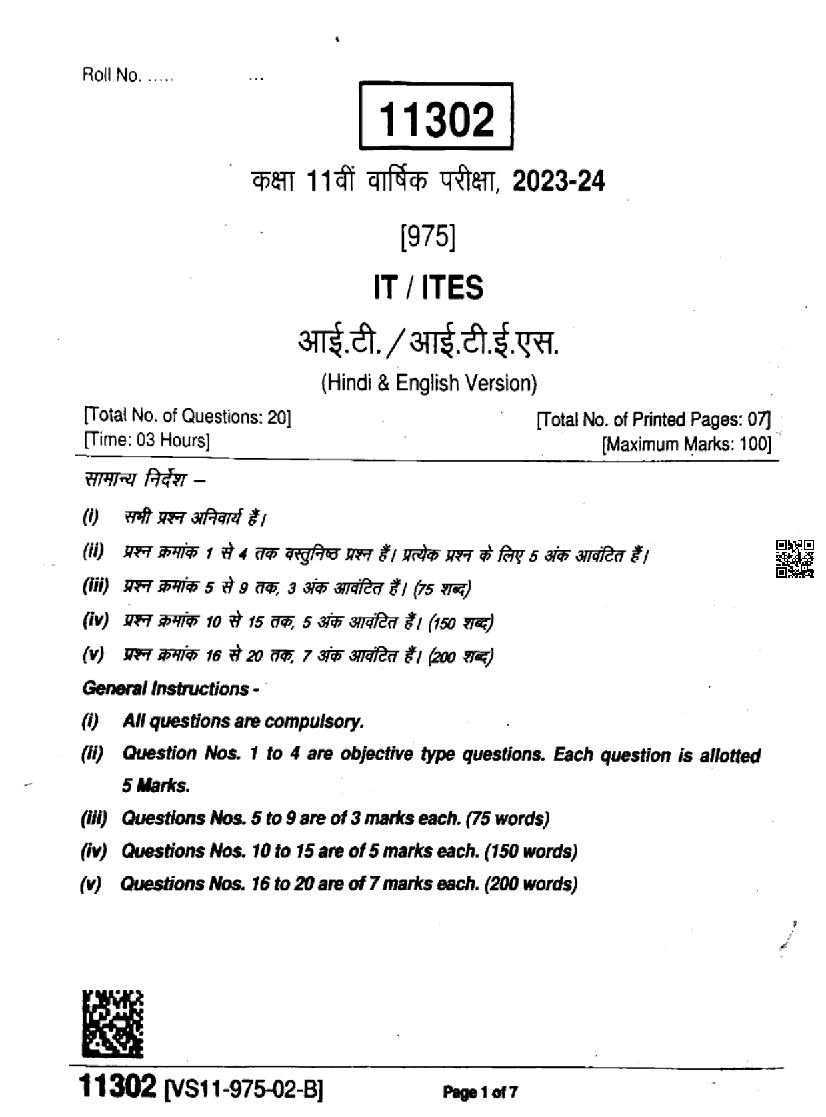 एमपी बोर्ड कक्षा 11वी के क्वेश्चन पेपर्स यहाँ से डाउनलोड करे। Download MP Board Old Papers for IT ITES subject from here.