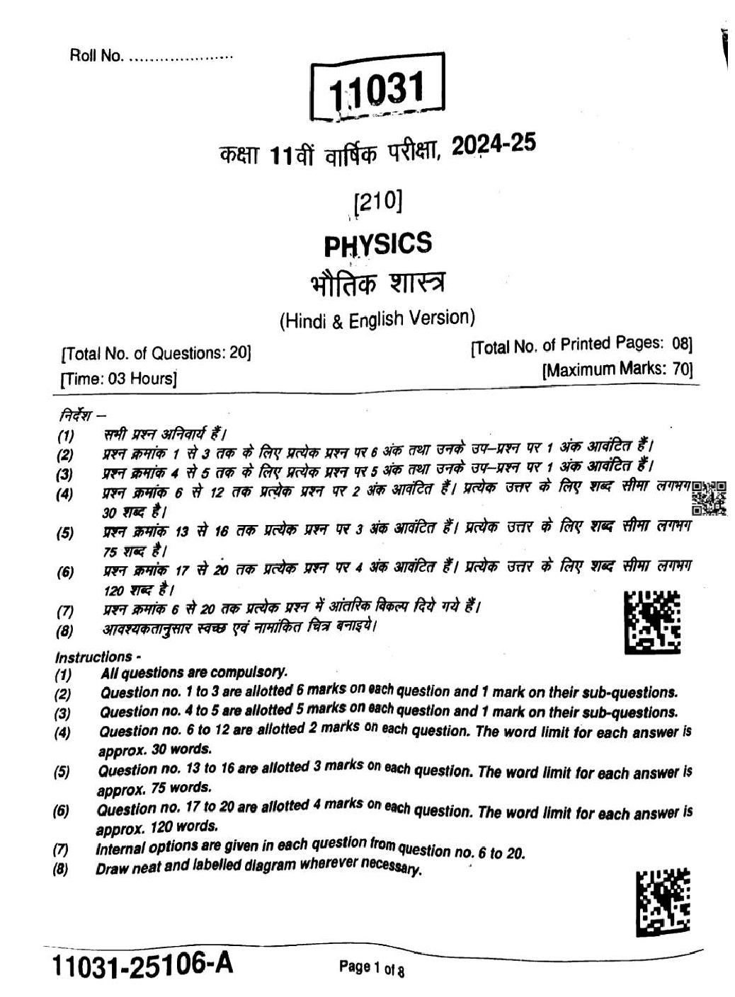 It is a good idea to download the class 11 question paper from aglasem for Physics subject, using above link or view pdf below.