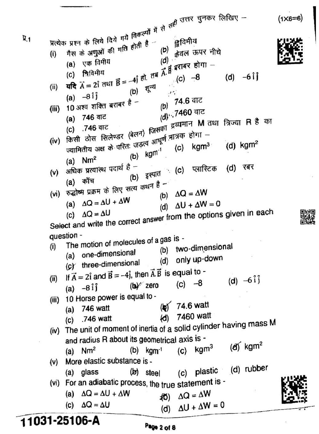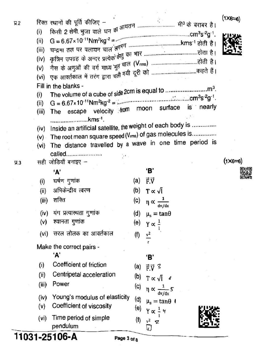 MP Board Class 11 Question Paper 2025 Physics View Download