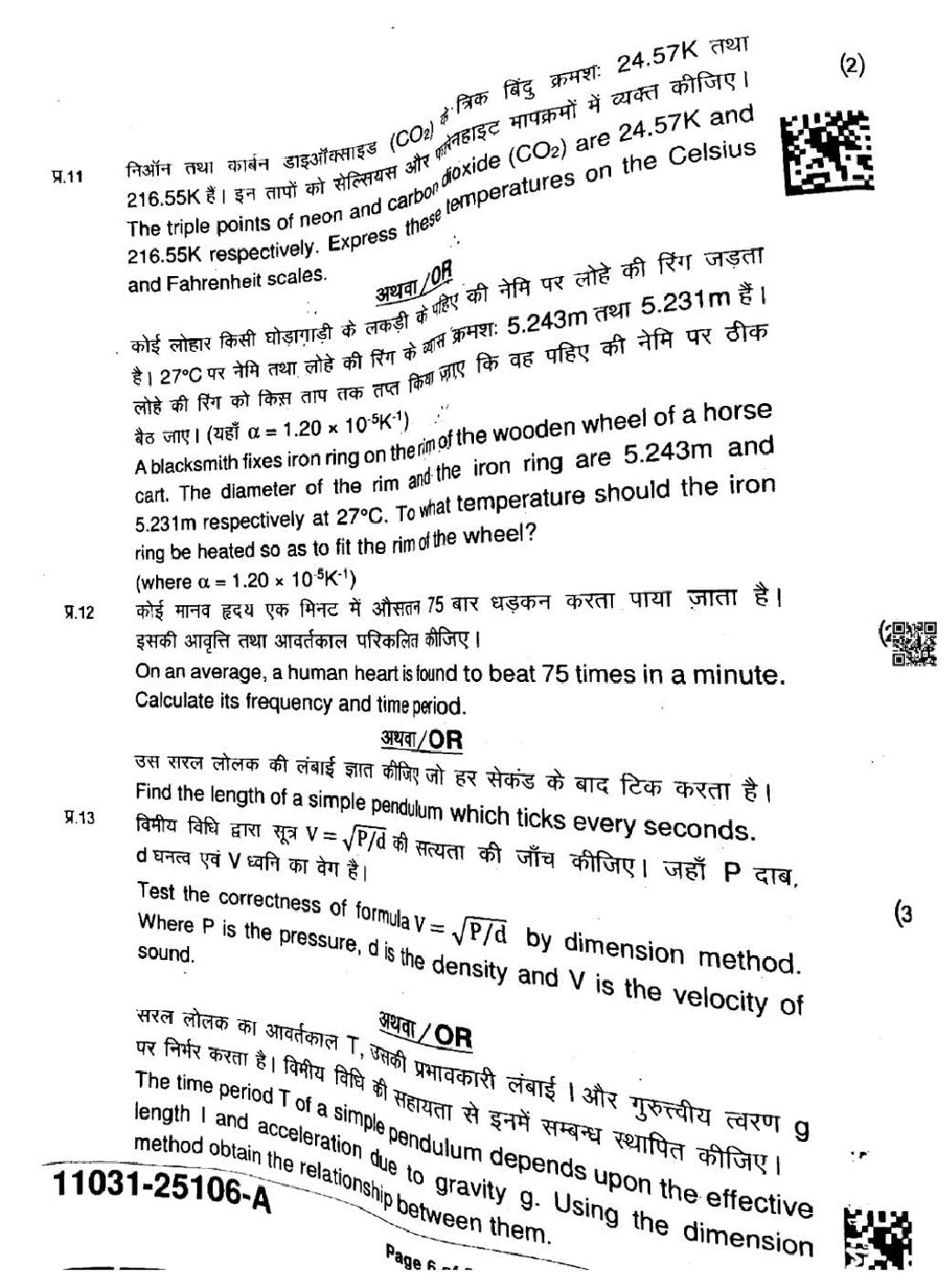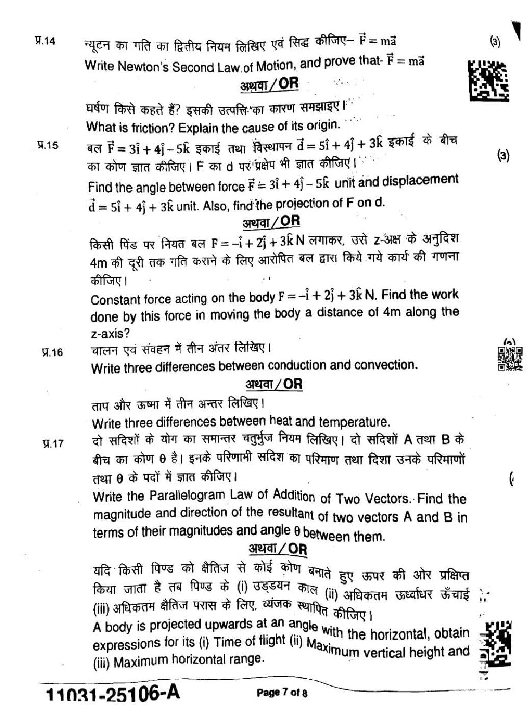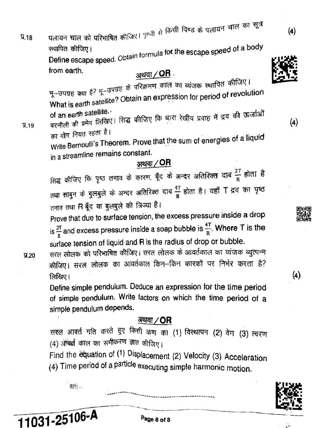 MP Board Class 11 Physics Question Paper