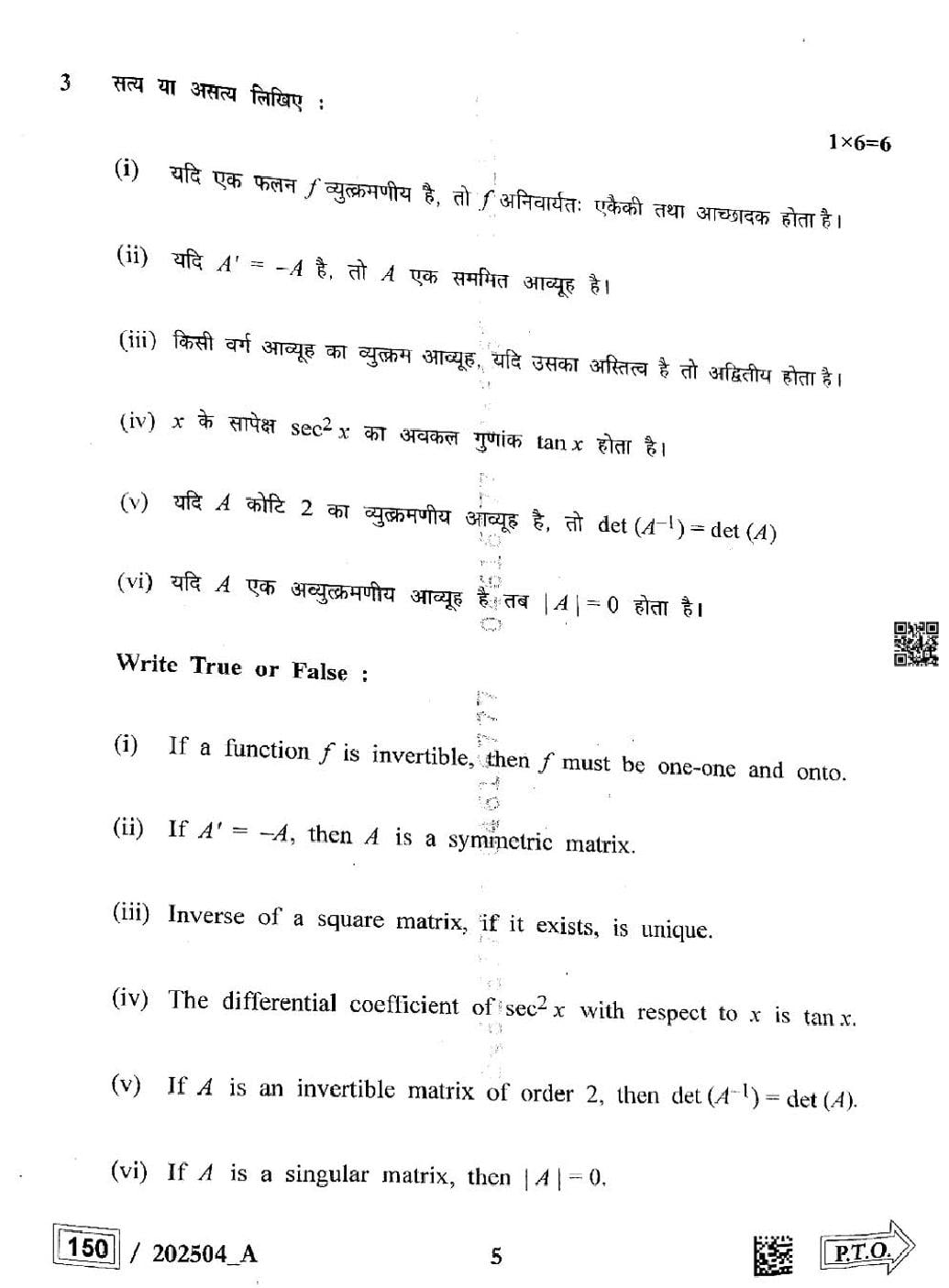 MP Board Class 12th Higher Mathematics Question Paper 2024 PDF – Click Here to Download Question Paper