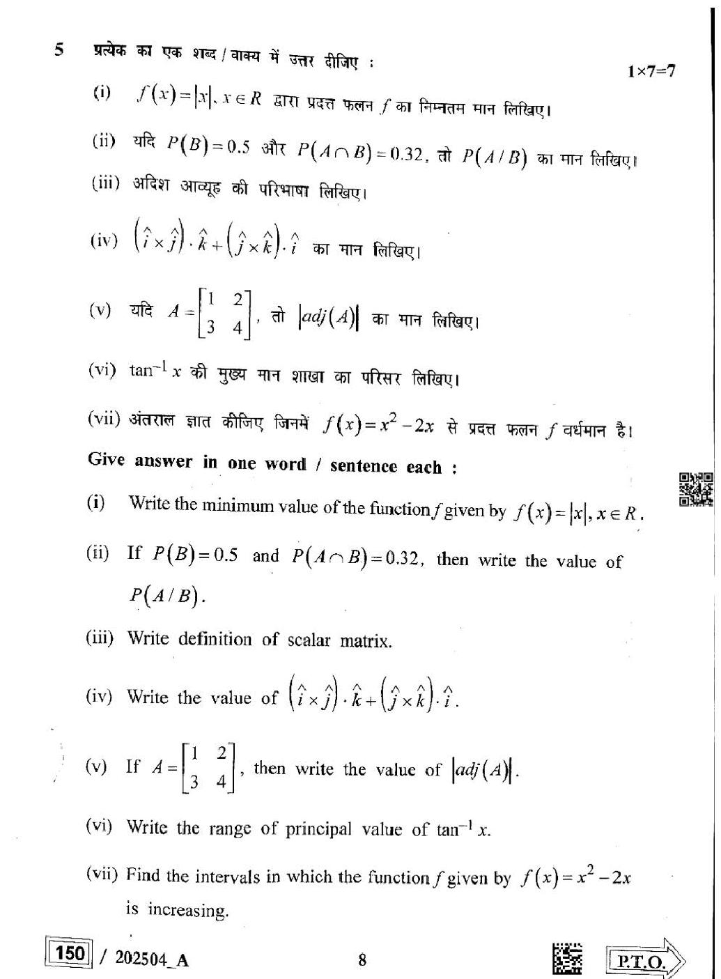 MP Board Class 12 Question Paper 2025 Higher Mathematics View Download