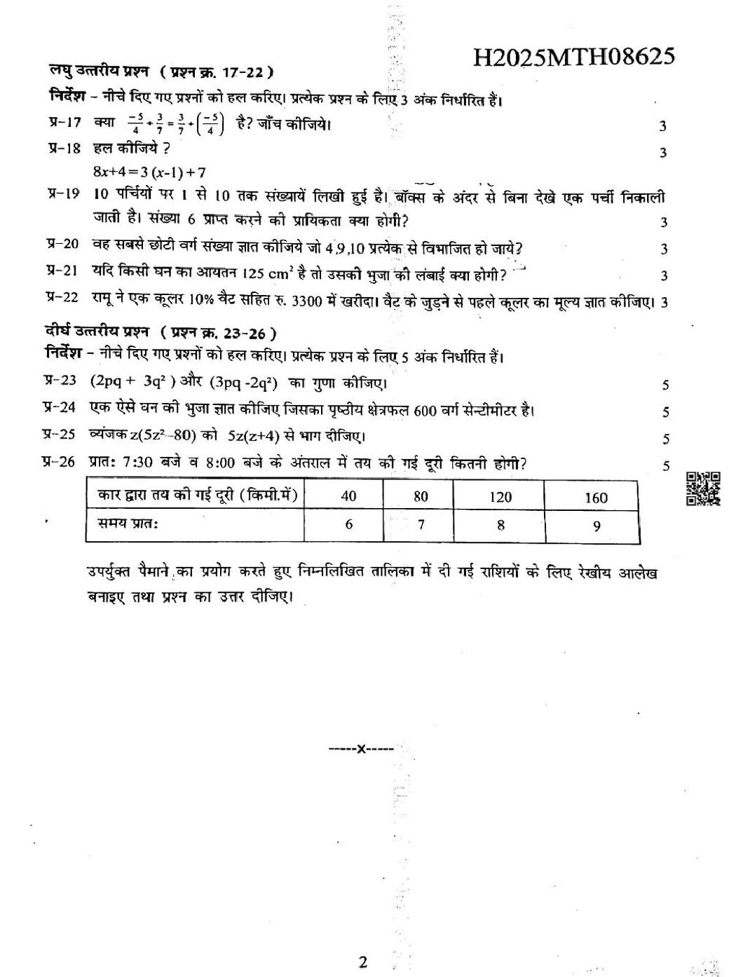 MP Board Class 8 Mathemaics Question Paper
