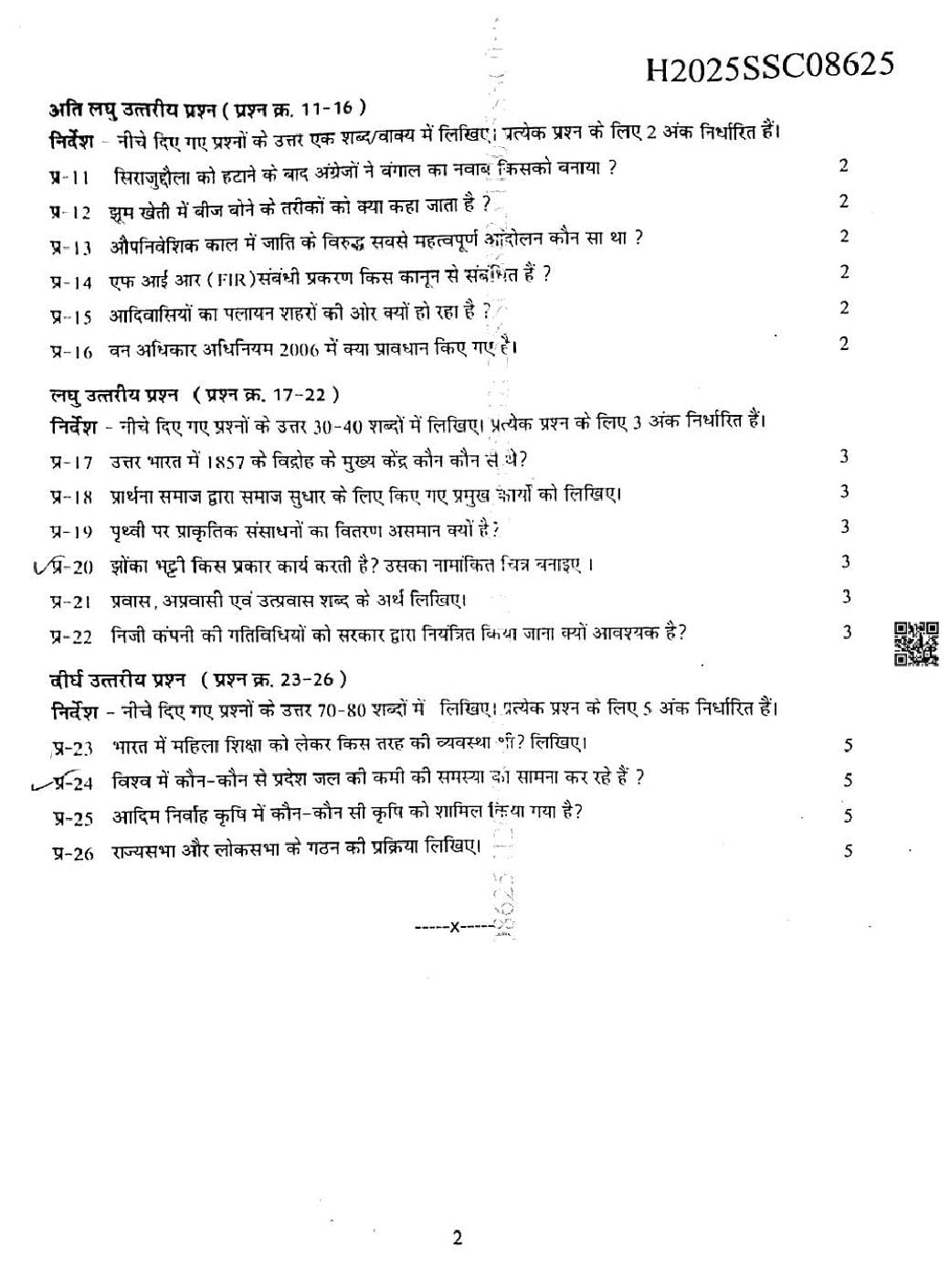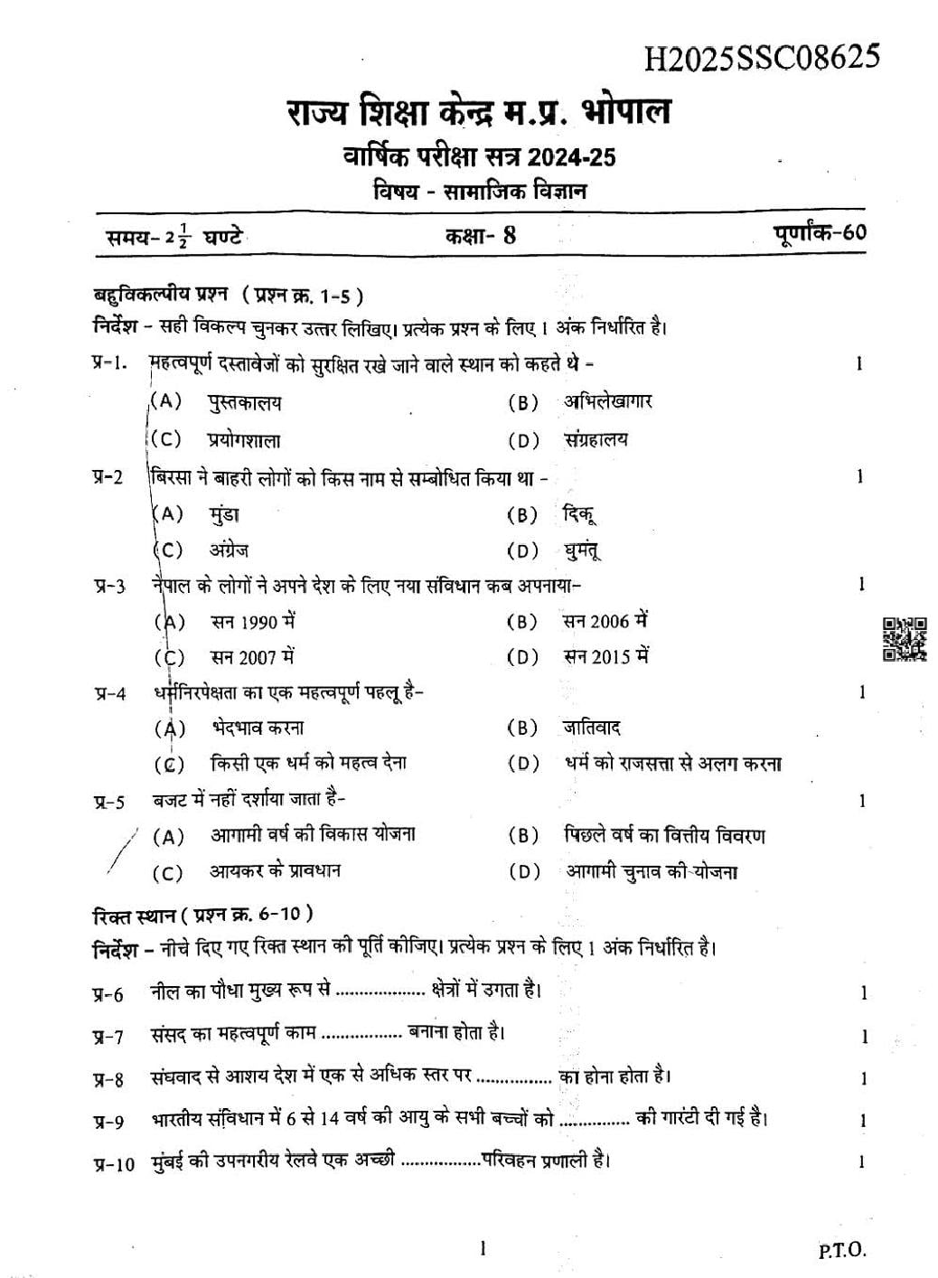 MP Board Class 8th Social Science Question Paper 2025 PDF