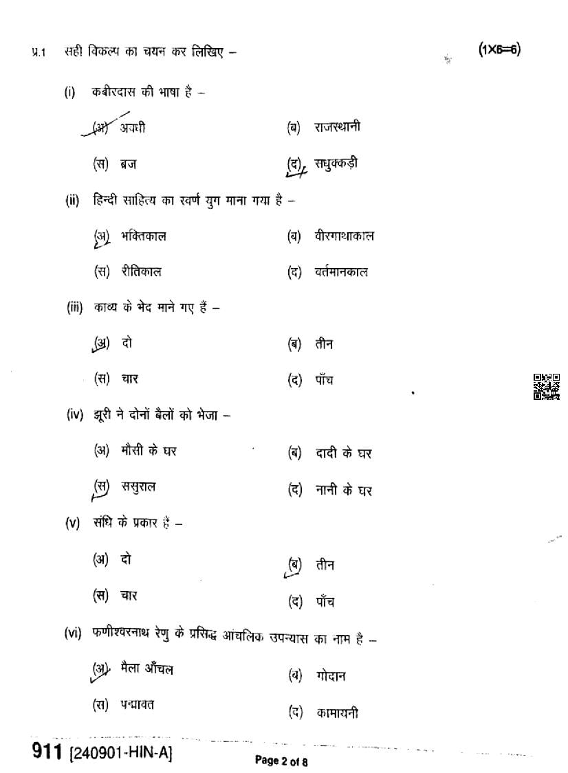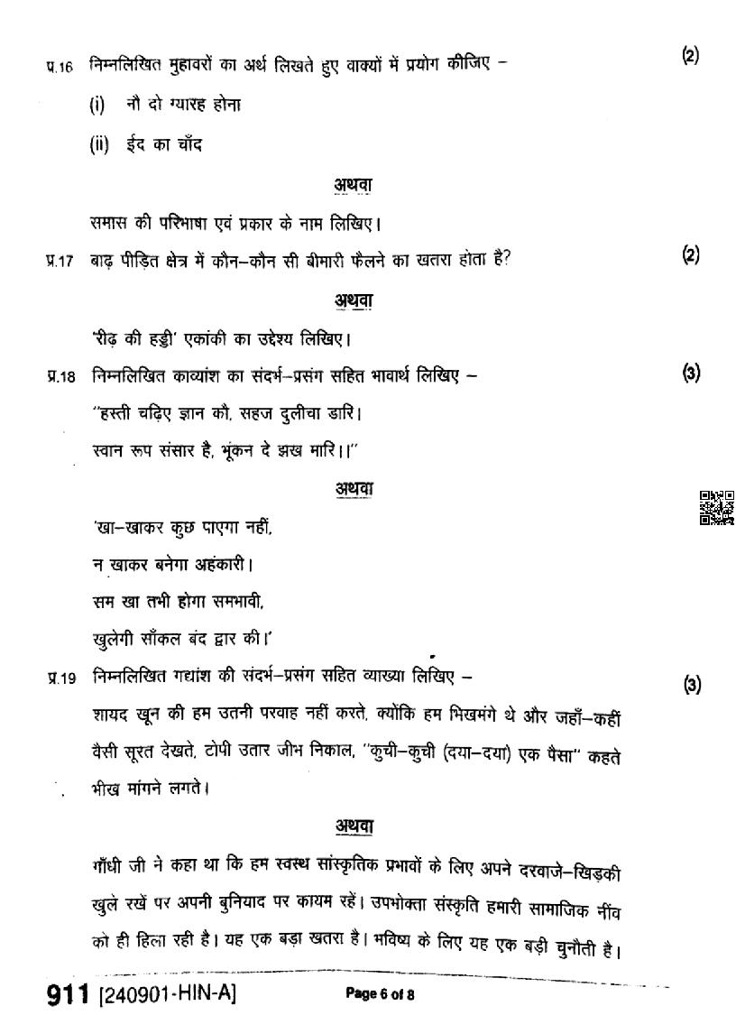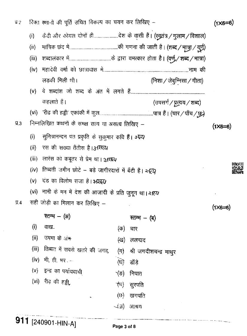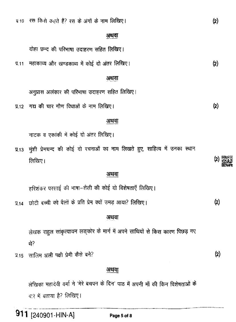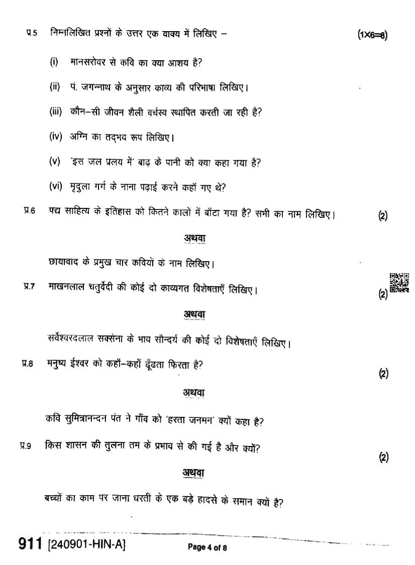 MP Board Class 9 Question Paper 2024 Hindi View Download