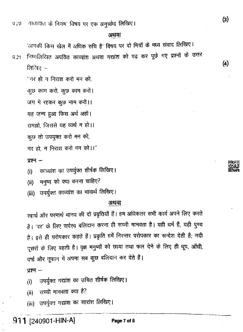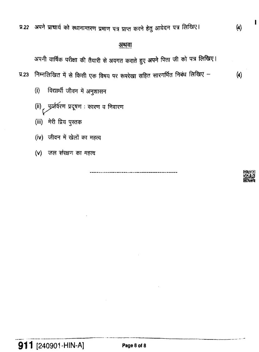 MP Board Class 9th Hindi Question Paper 2024 PDF