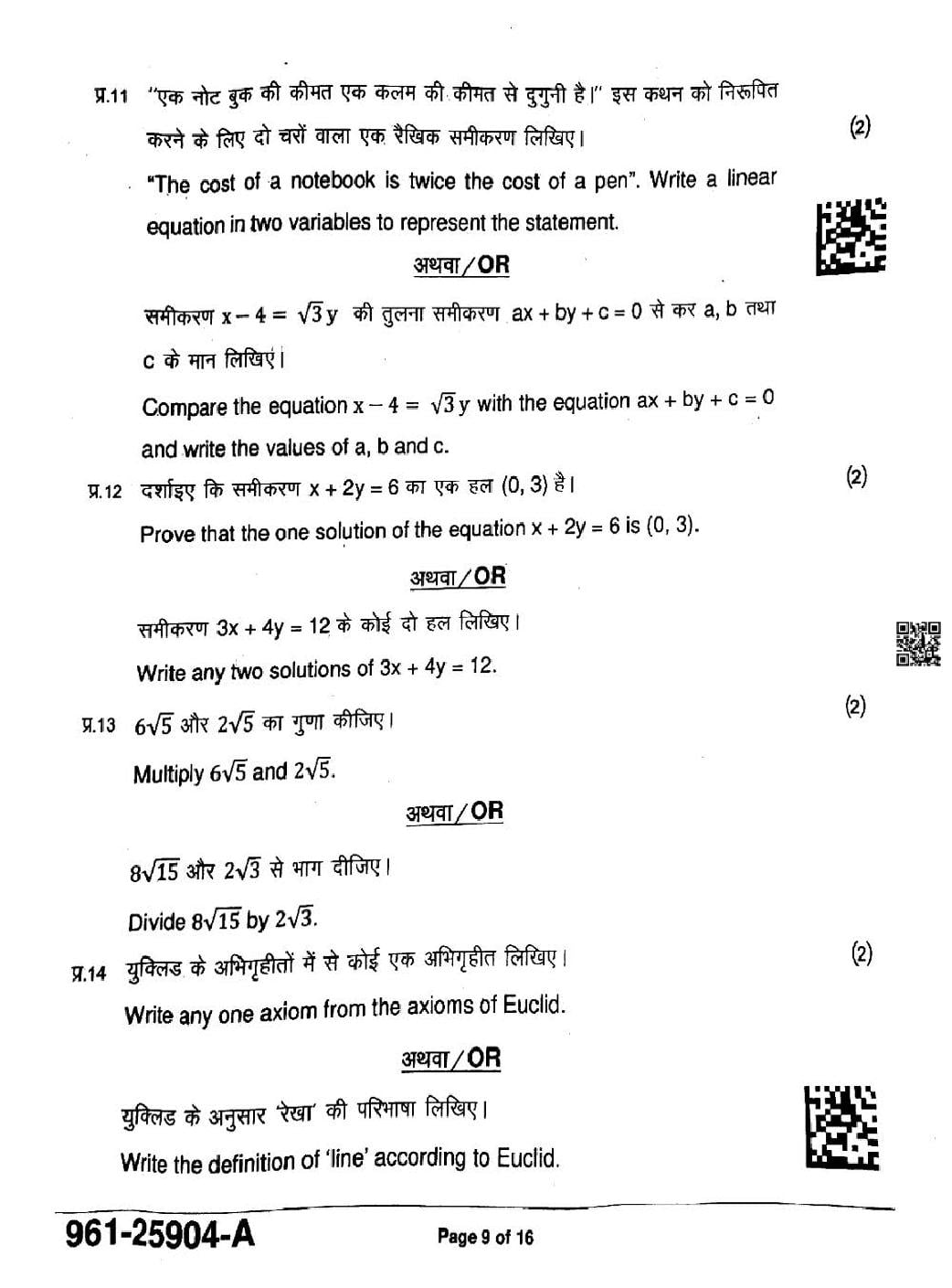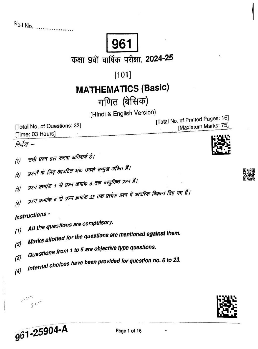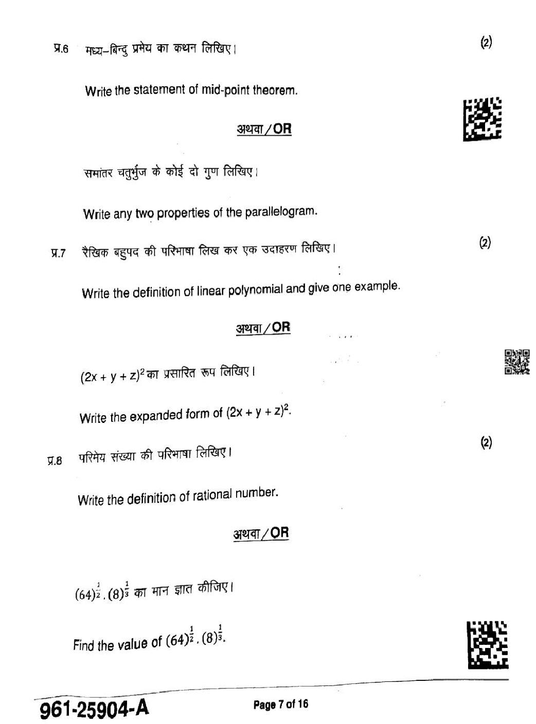 MP Board Class 9 Question Paper 2025 Mathematics Basic View Download