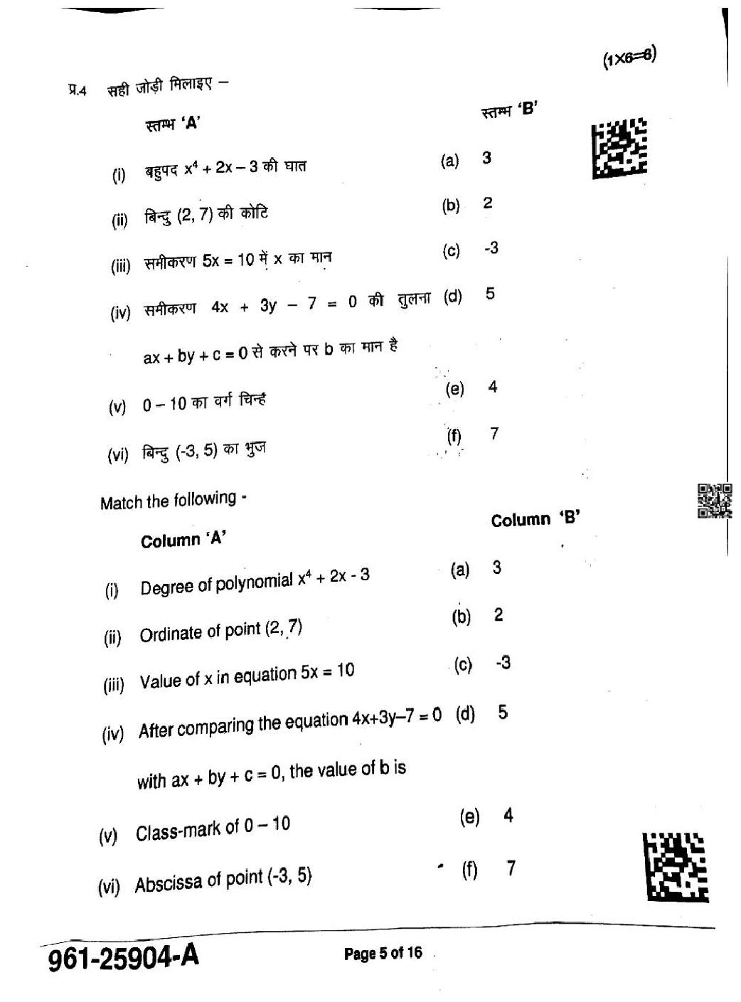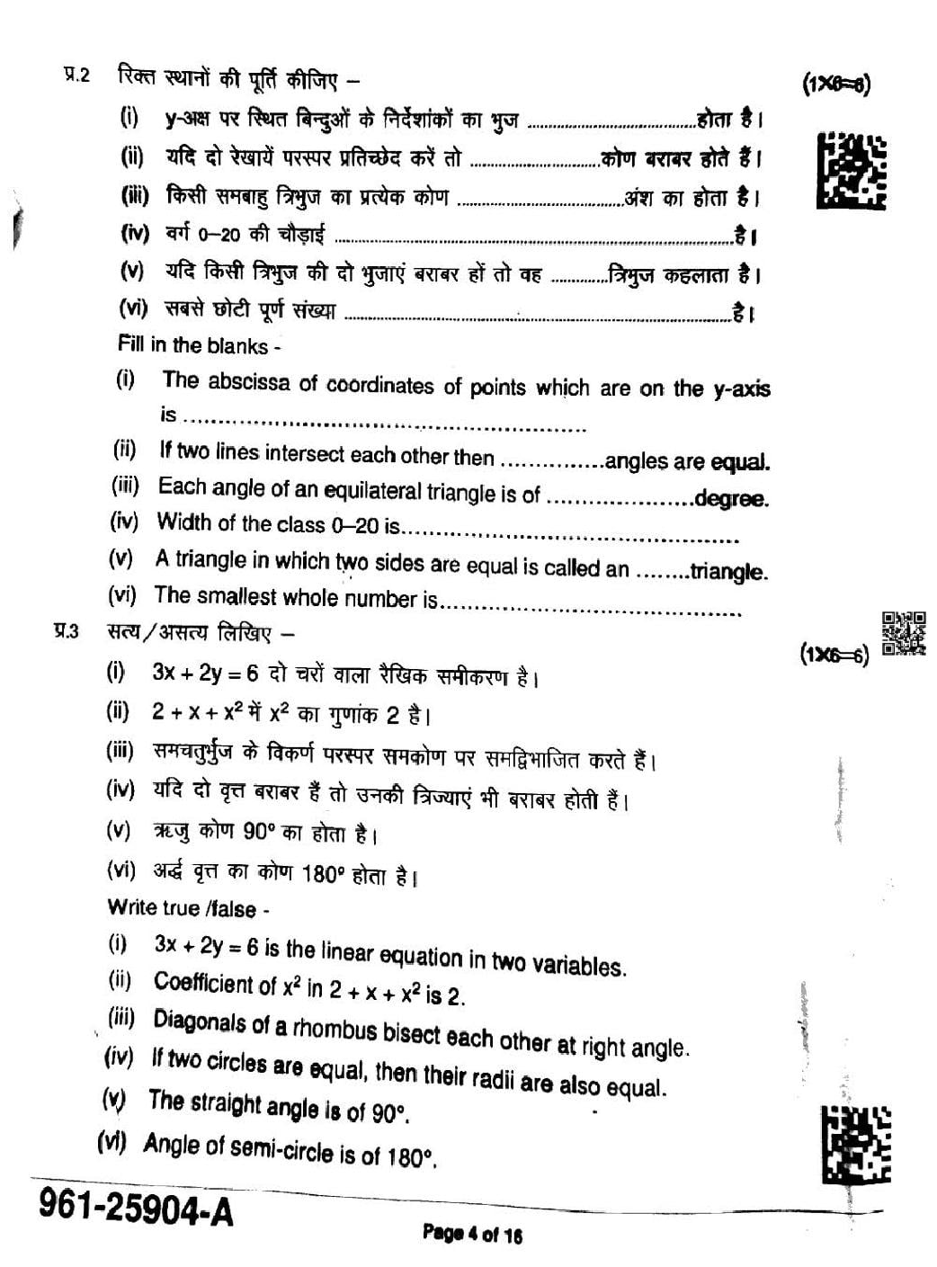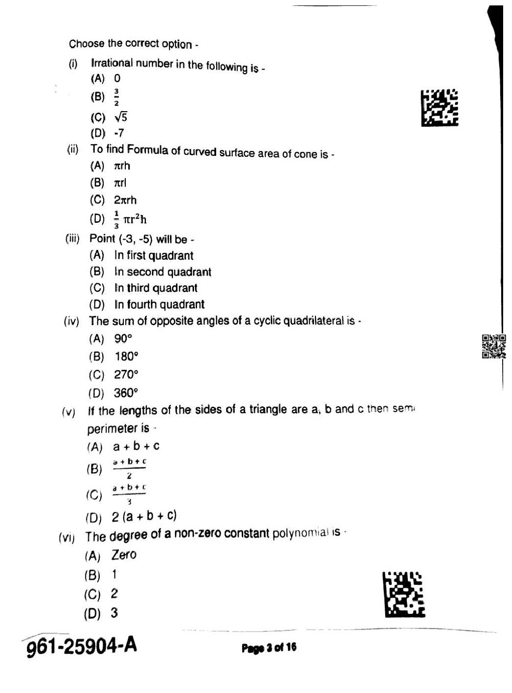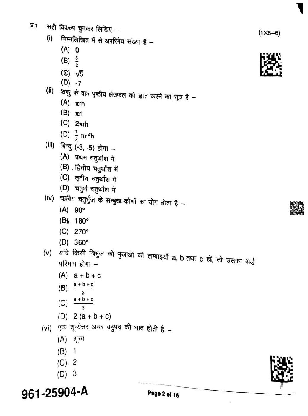 MP Board Class 9 Question Paper 2025 Mathematics Basic View Download