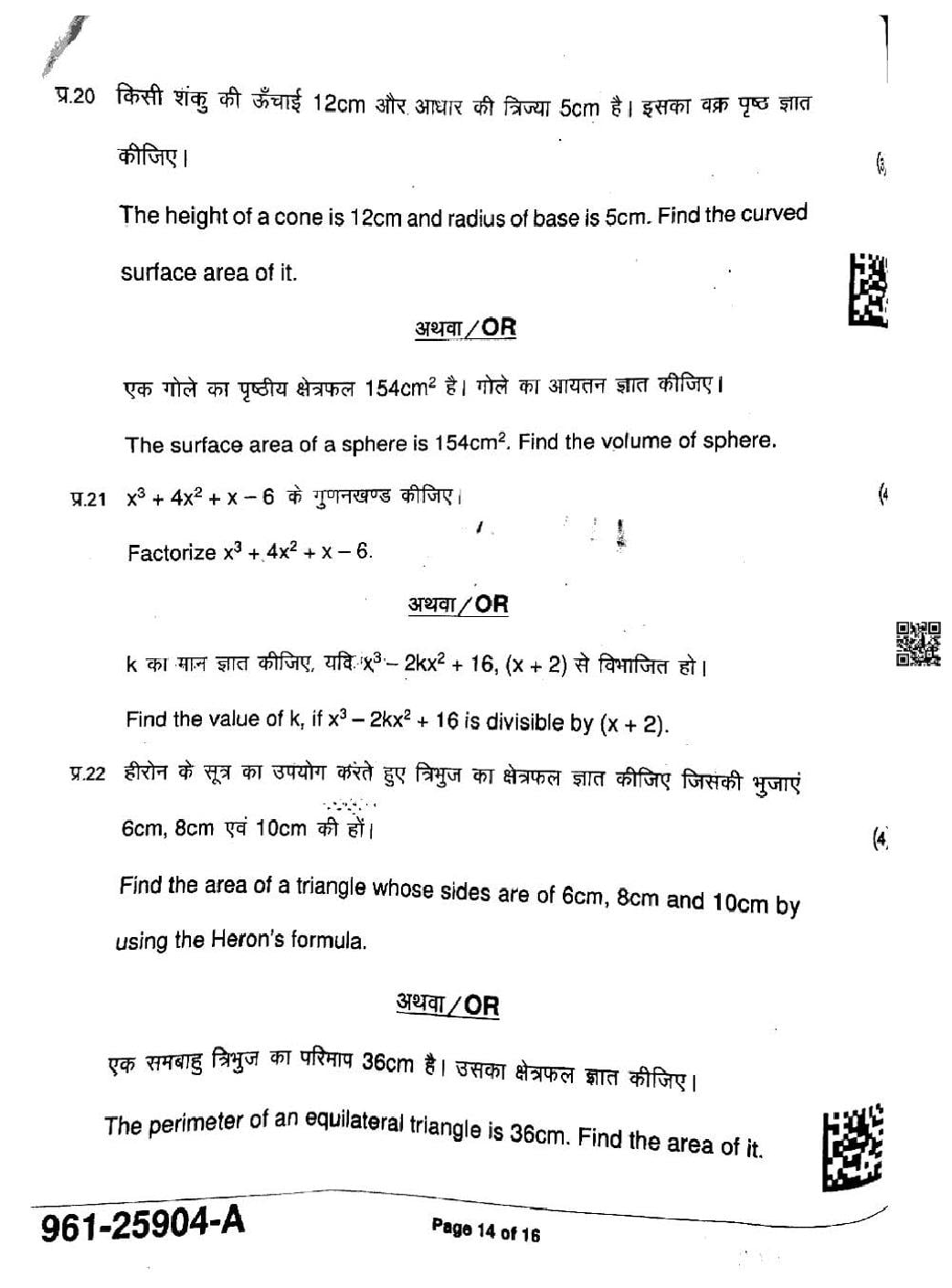 MP Board Class 9th Maths Question Paper 2020 PDF – Click Here to Download Question Paper