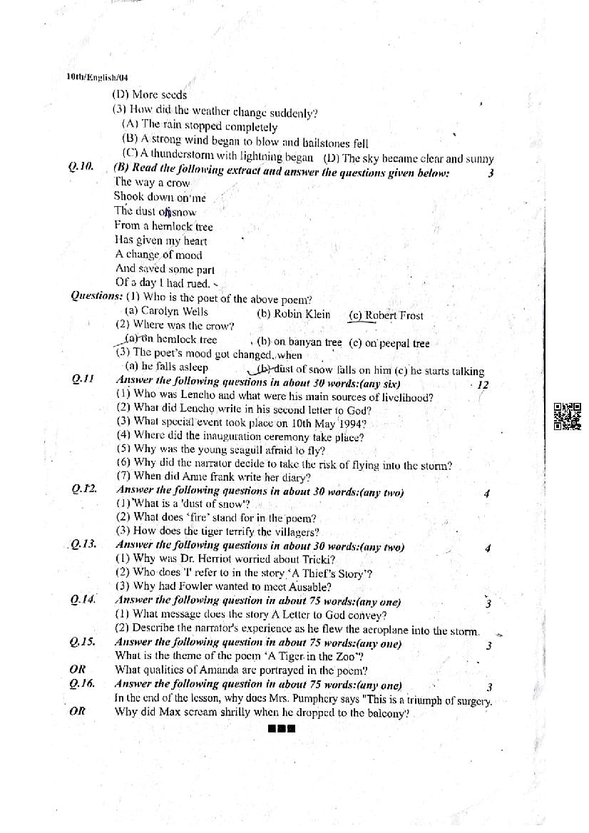 It is a good idea to download the class 10 English question paper from aglasem, using above link. However if you want to read all the questions in 10th standard trimasik pariksha for English, then you can also view the complete English question paper here itself. The entire contents of the trimasik pariksha question paper for class 10 English are as follows.