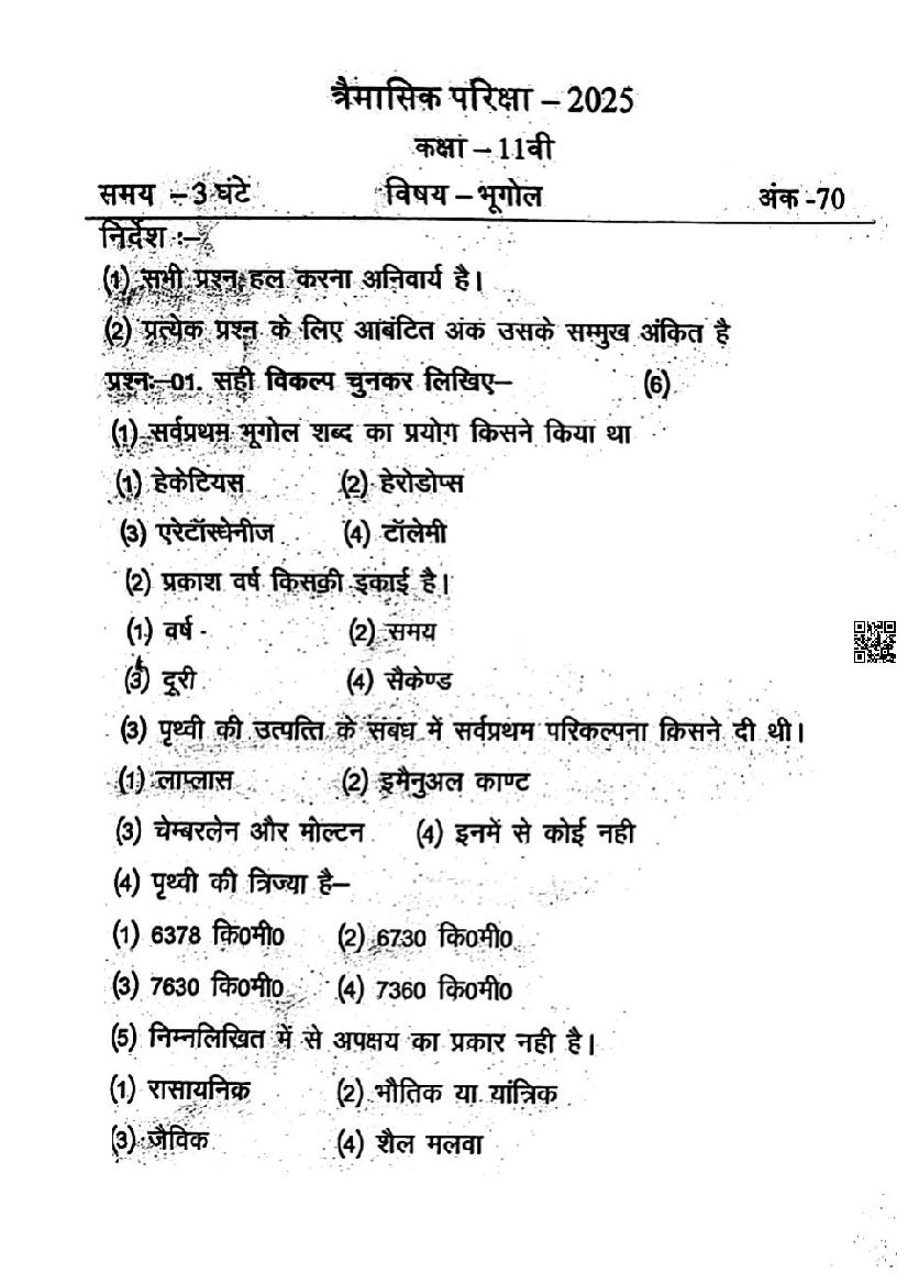 After solving the trimasik pariksha paper of Geography, you can download the quarterly exam question papers for all subjects of class 11.