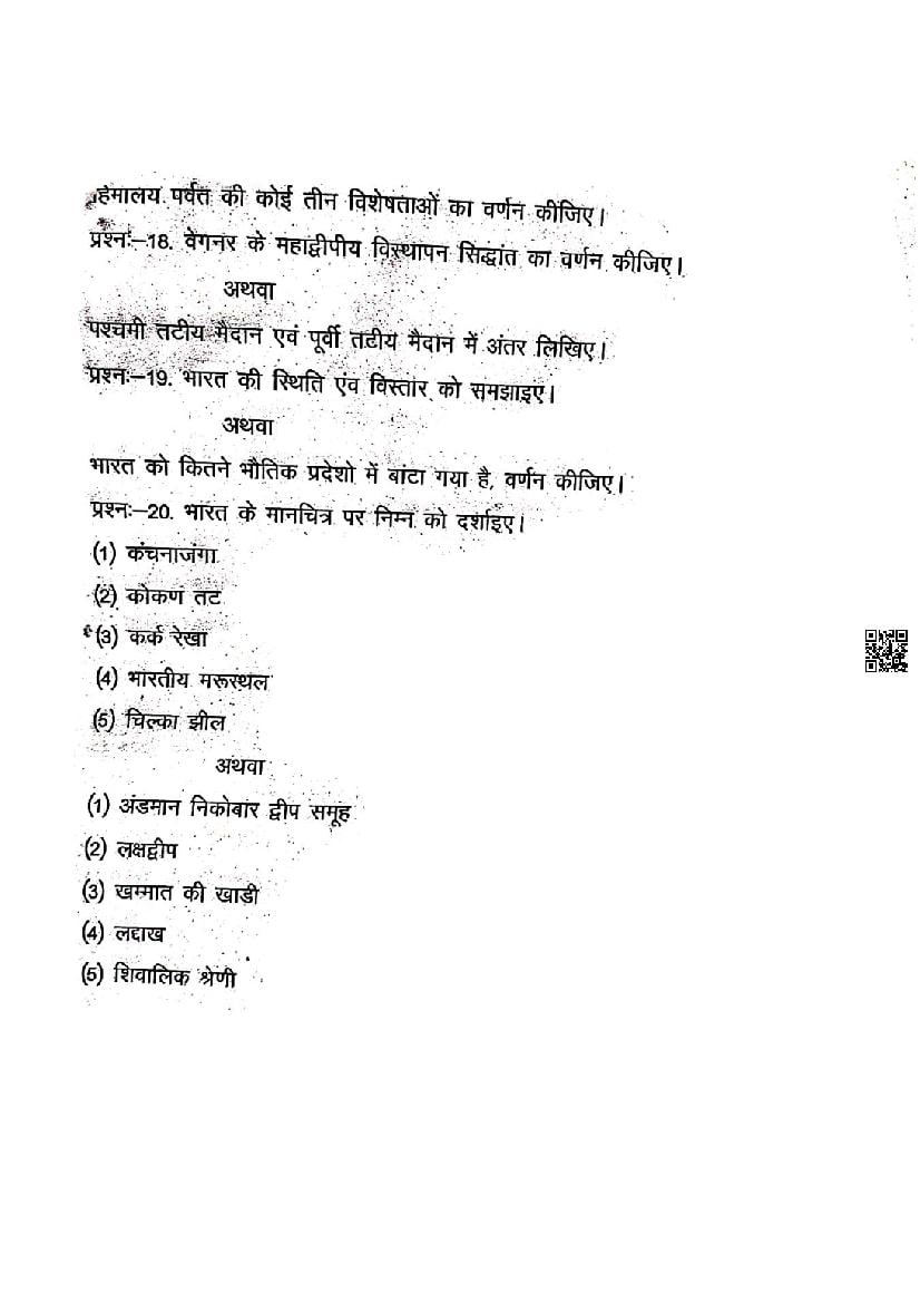 The MP Board Question Paper of class 11 Trimasik Exam for Geography subject is as follows.