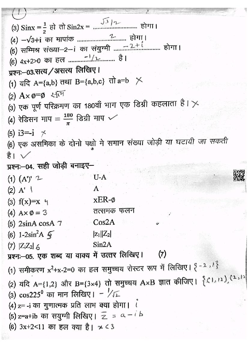 MP Board Class 11 Quarterly Question Paper 2025 Maths View Download