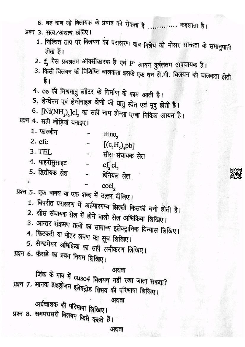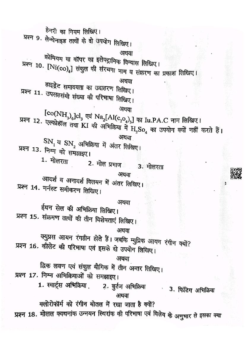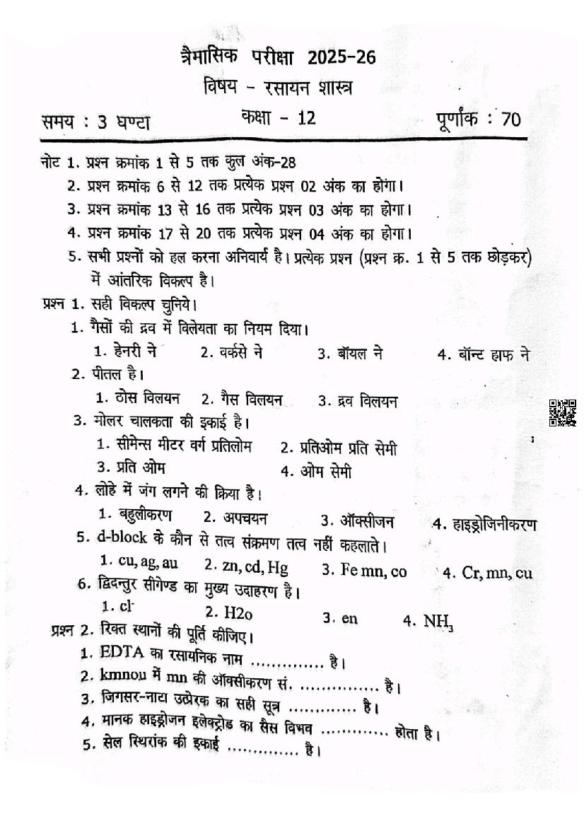 After solving the trimasik pariksha paper of Chemistry, you can download the quarterly exam question papers for all subjects of class 12.