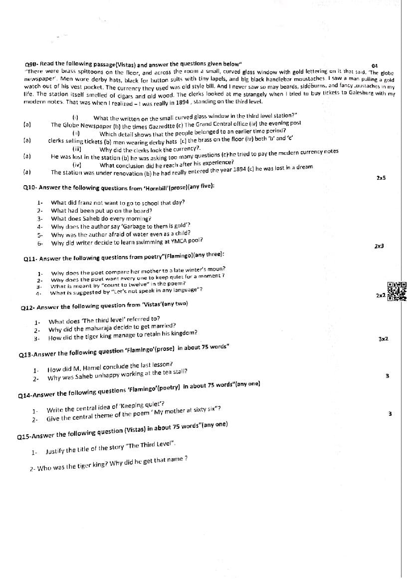 Class 12 English Trimasik Pariksha Question Paper – An Overview