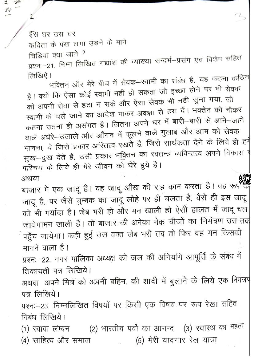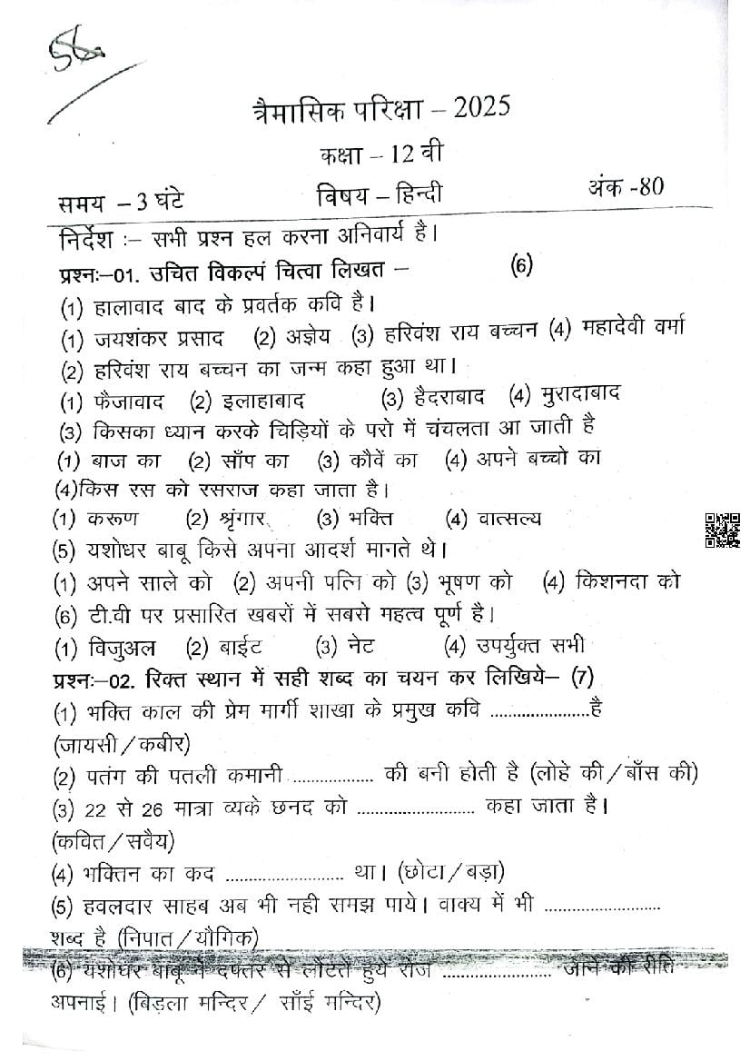 | Paper | Madhya Pradesh Class 12 Hindi Trimasik Pariksha Question Paper |