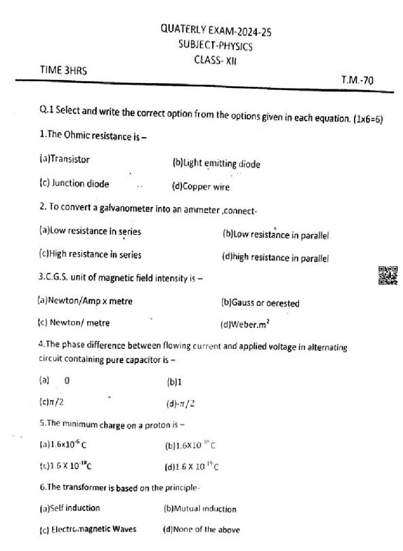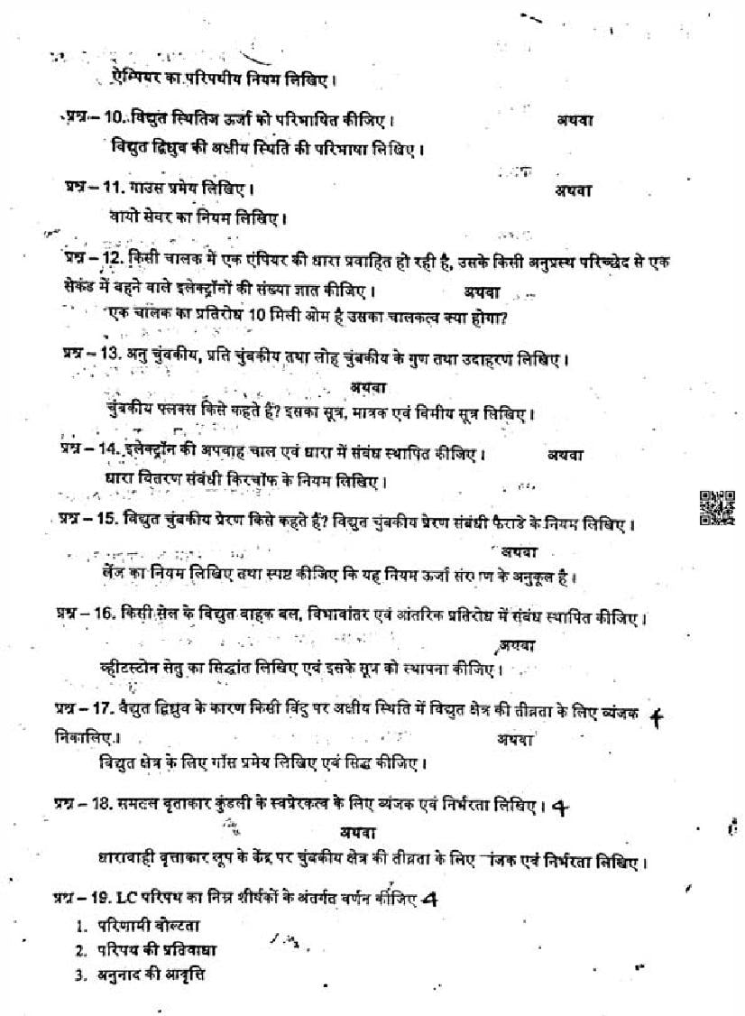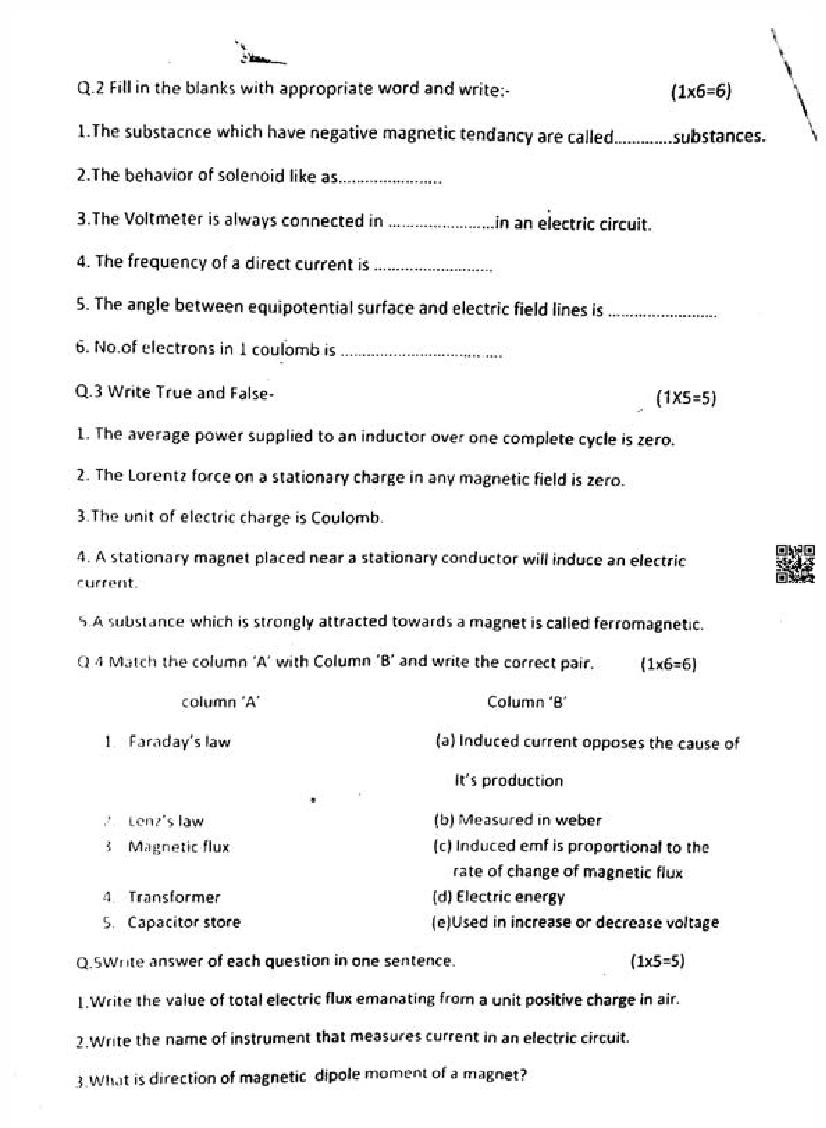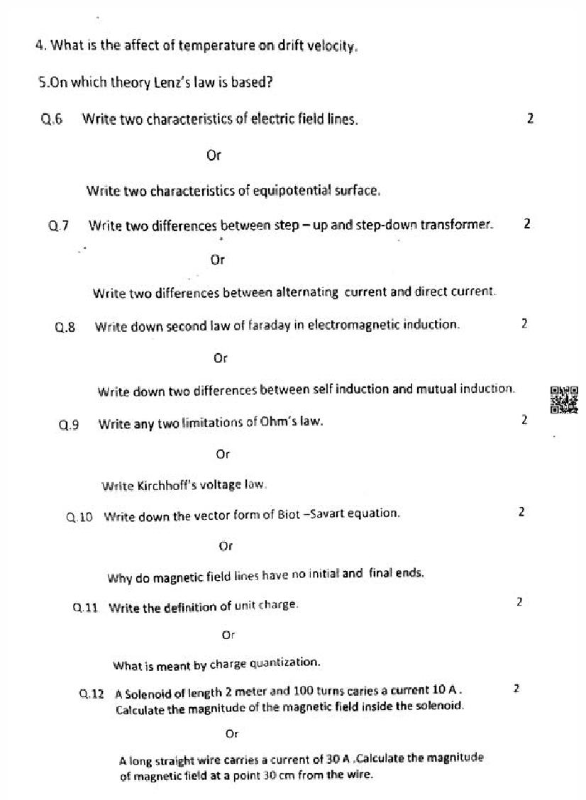 It is a good idea to download the class 12 Physics question paper from aglasem, using above link. However if you want to read all the questions in 12th standard trimasik pariksha for Physics, then you can also view the complete Physics question paper here itself. The entire contents of the trimasik pariksha question paper for class 12 Physics are as follows.
