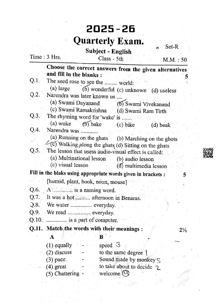 After solving the trimasik pariksha paper of English, you can download the quarterly exam question papers for all subjects of class 5.