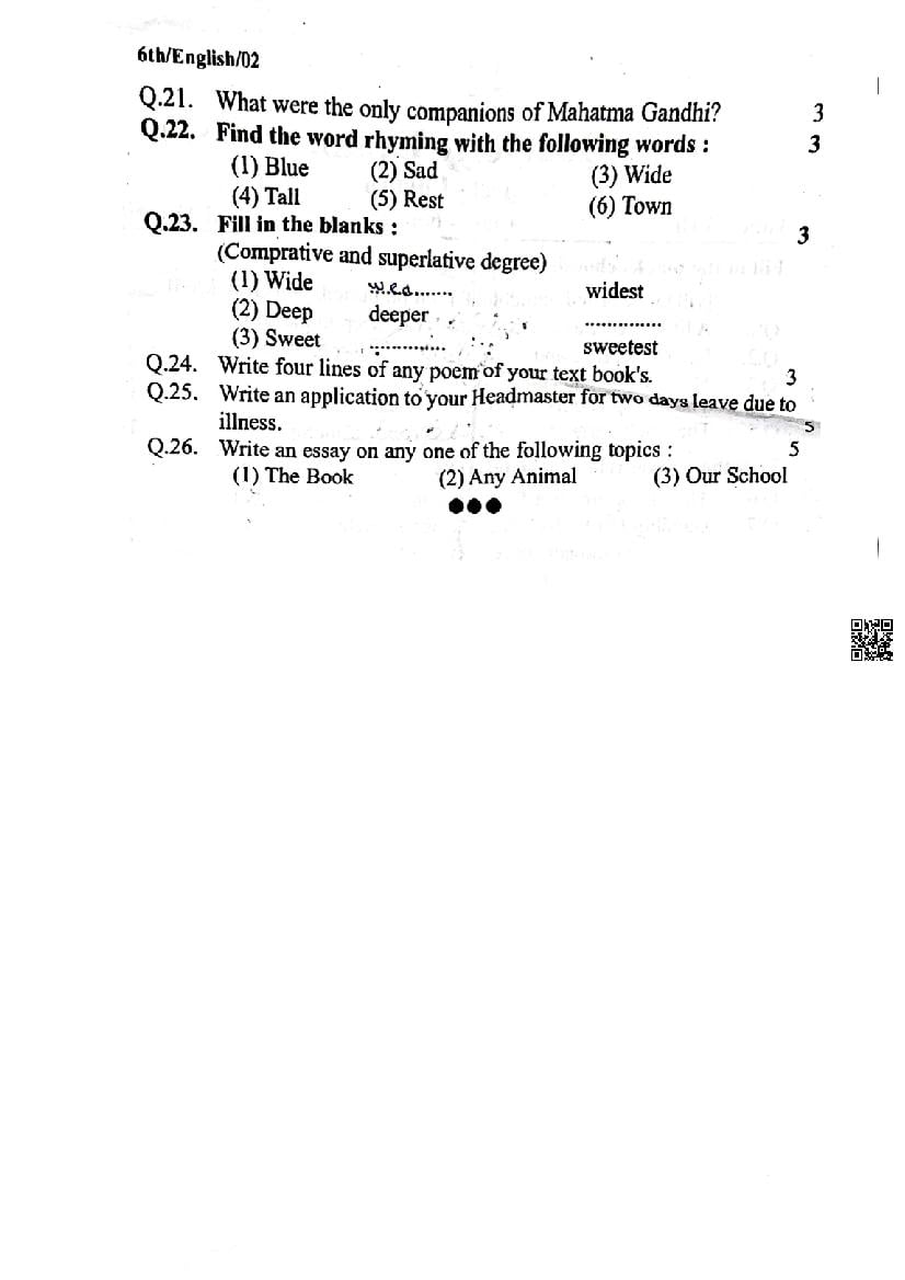 It is a good idea to download the class 6 English question paper from aglasem, using above link. However if you want to read all the questions in 6th standard trimasik pariksha for English, then you can also view the complete English question paper here itself. The entire contents of the trimasik pariksha question paper for class 6 English are as follows.