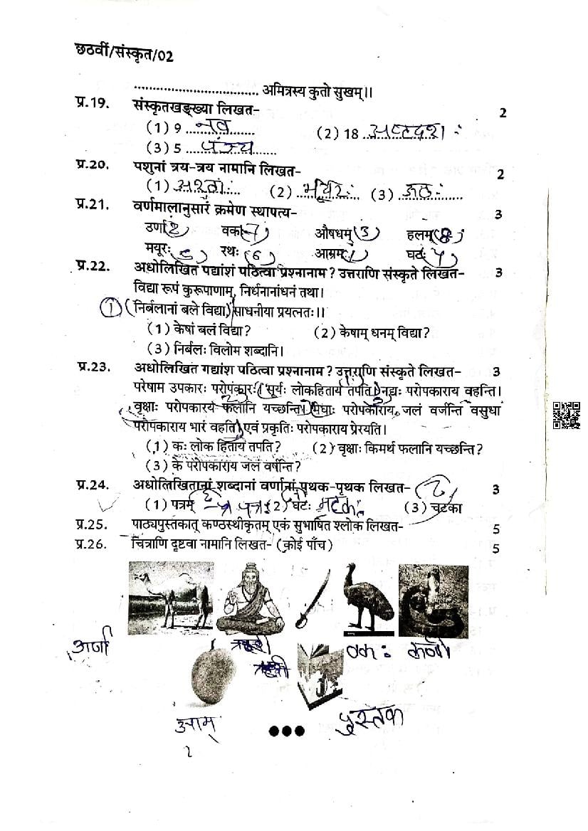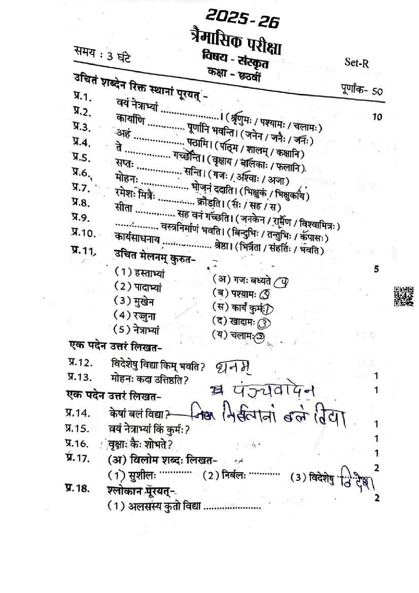 | Paper | Madhya Pradesh Class 6 Sanskrit Trimasik Pariksha Question Paper |