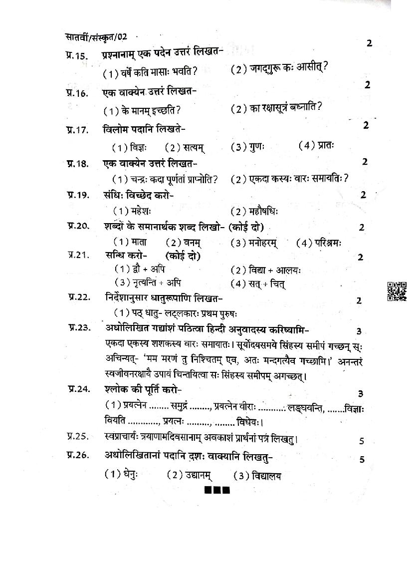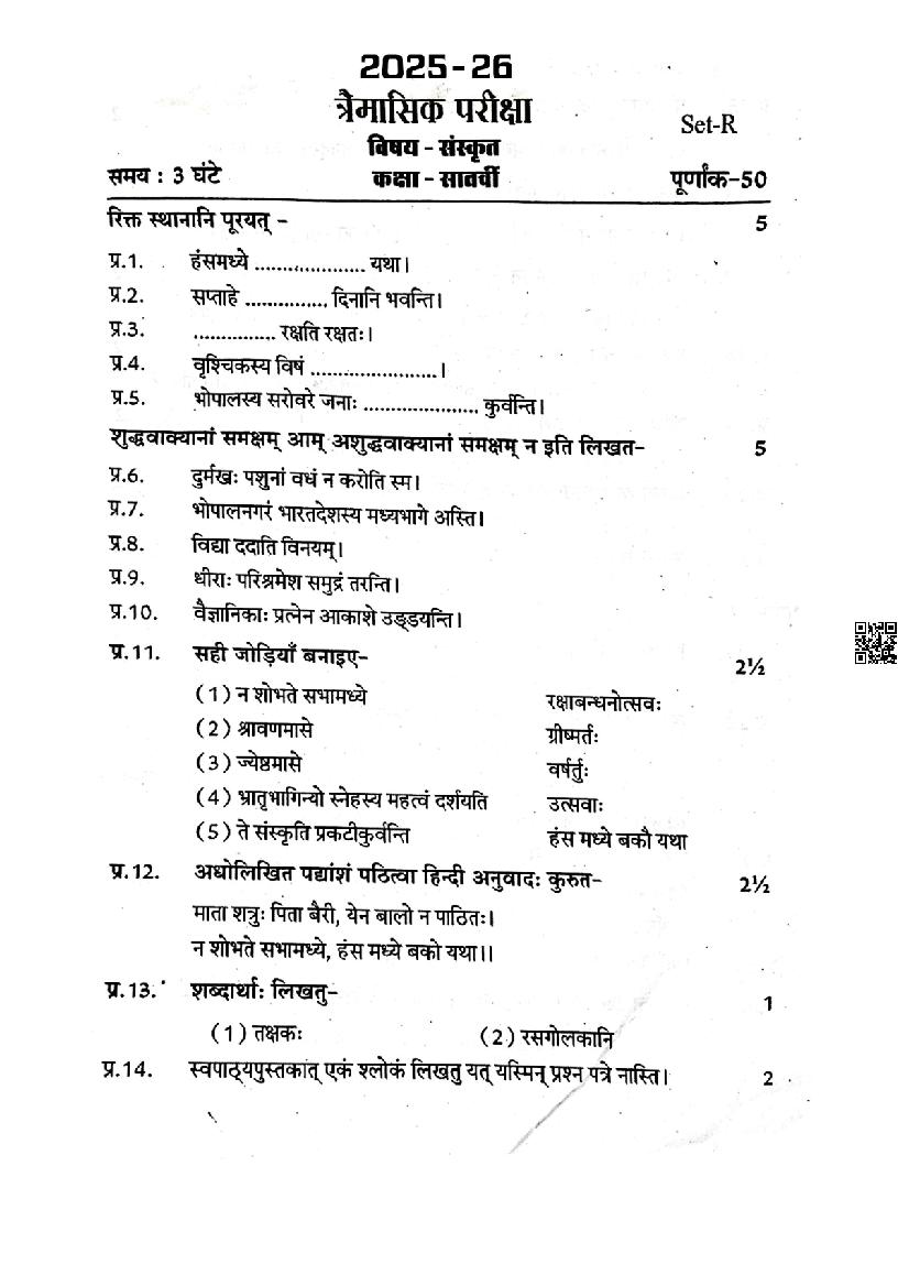 | Paper | Madhya Pradesh Class 7 Sanskrit Trimasik Pariksha Question Paper |