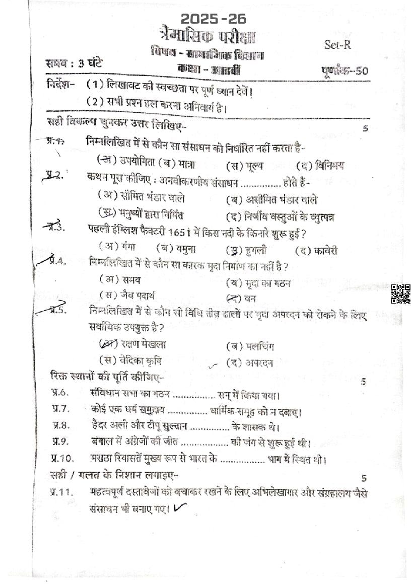 MP Board Class 8 Quarterly Question Paper 2025 Social Science View Download