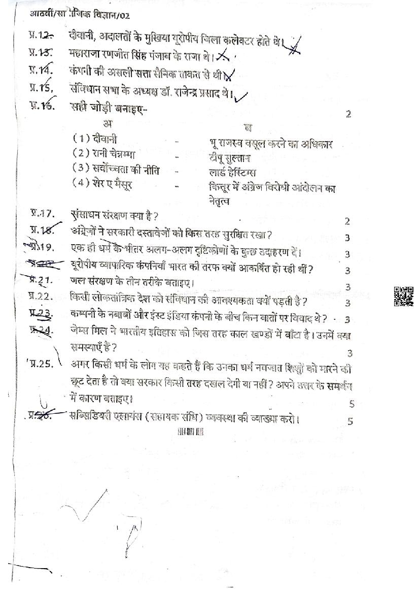 MP Board Class 8th Social Science Trimasik Paper 2026