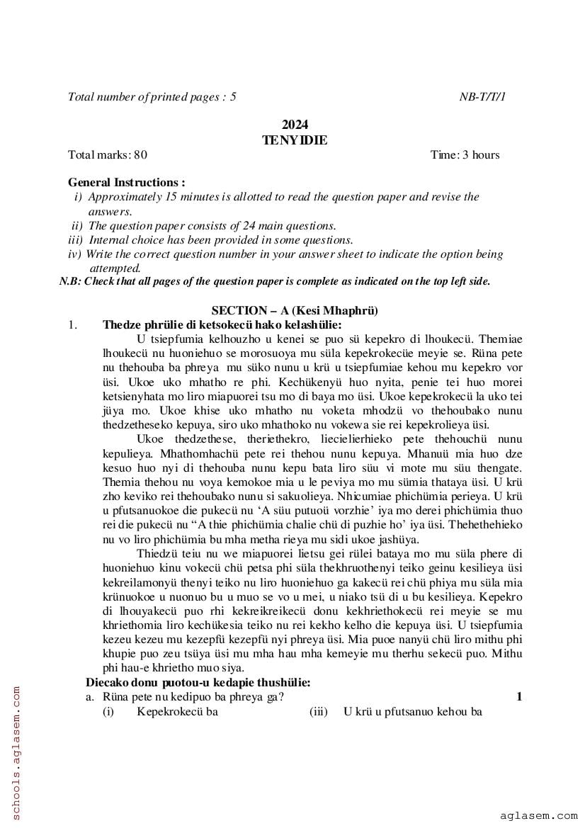 Download Nagaland Board 10th Class Question Paper 2024 – Download PDF for all Subjects