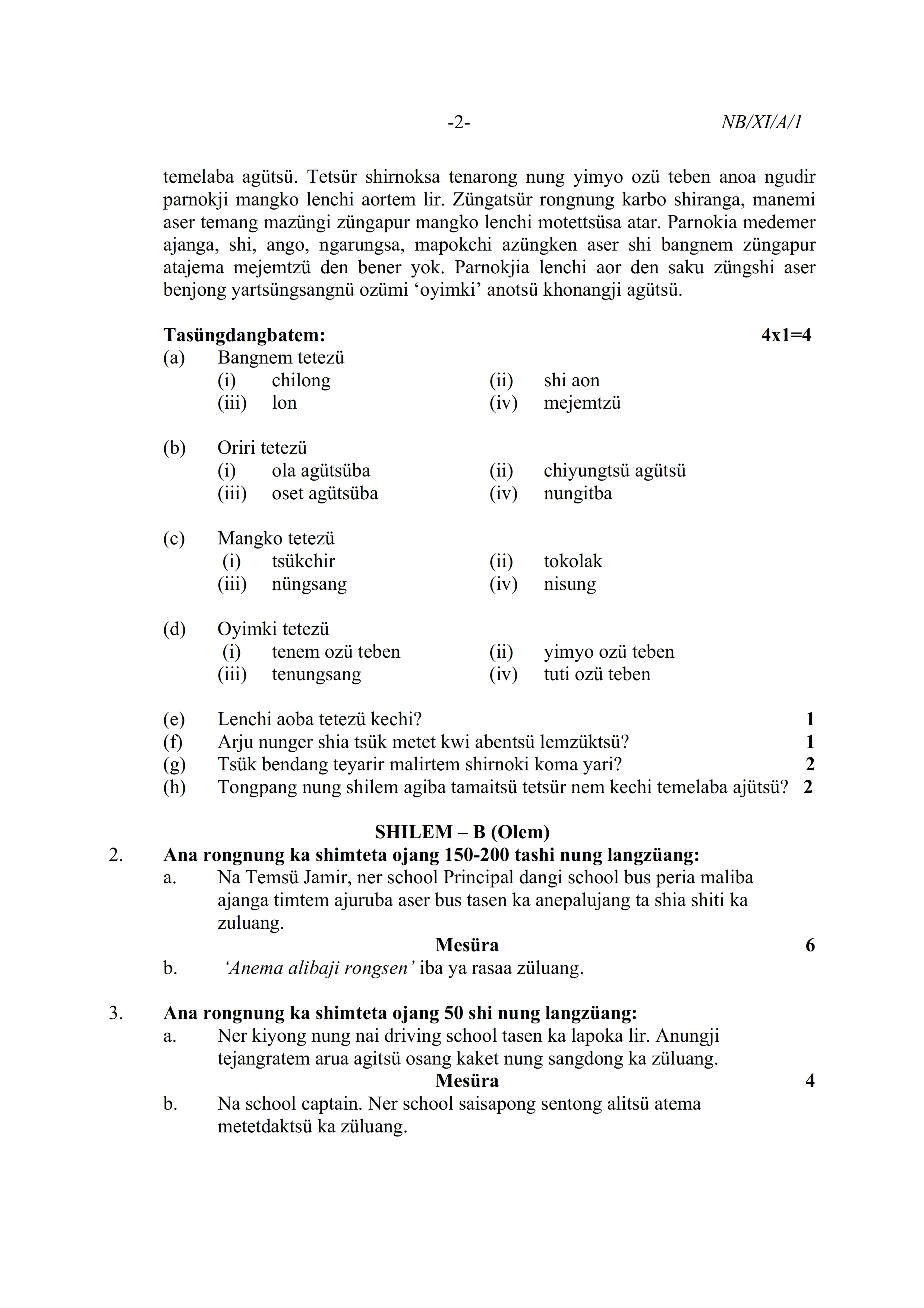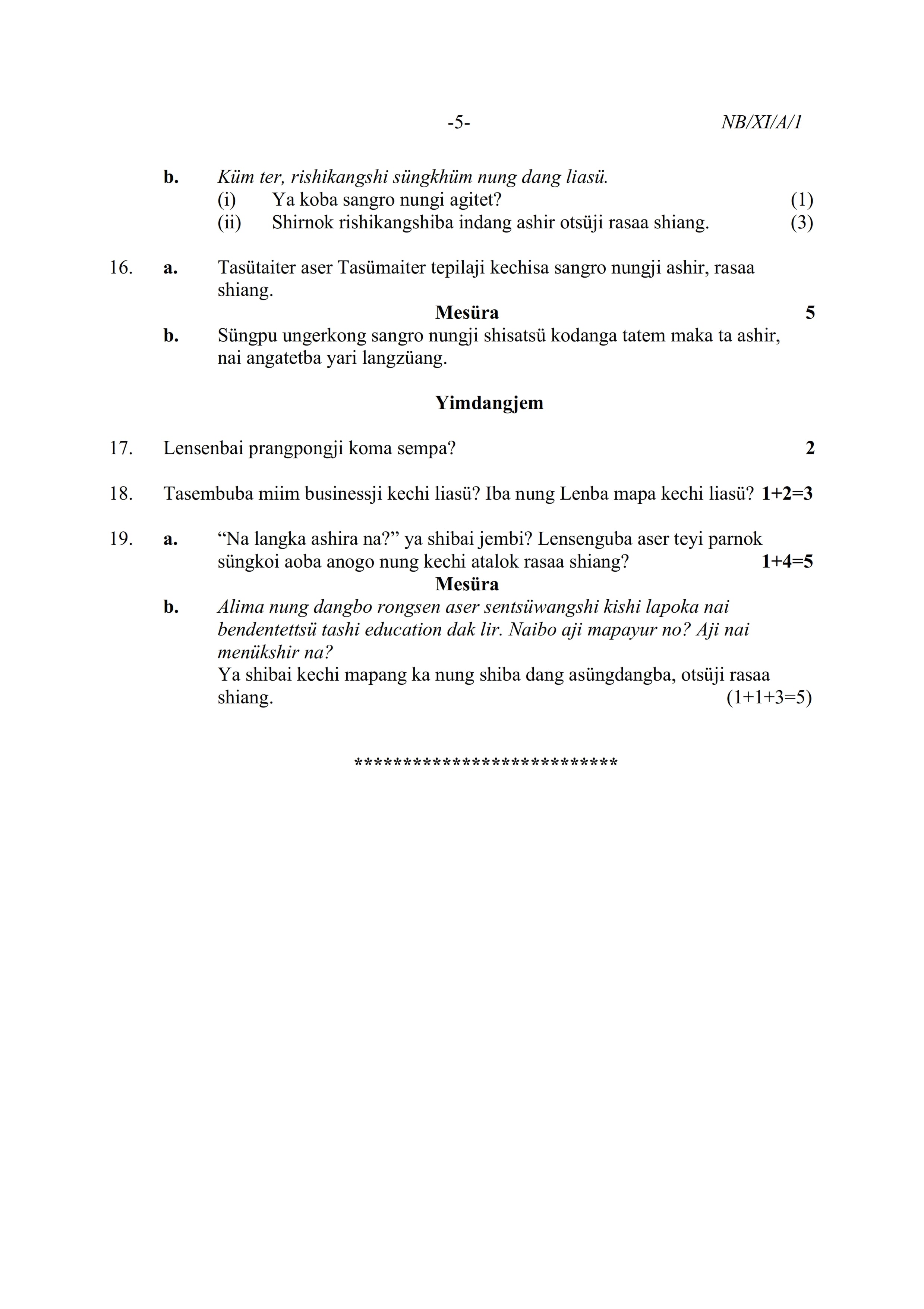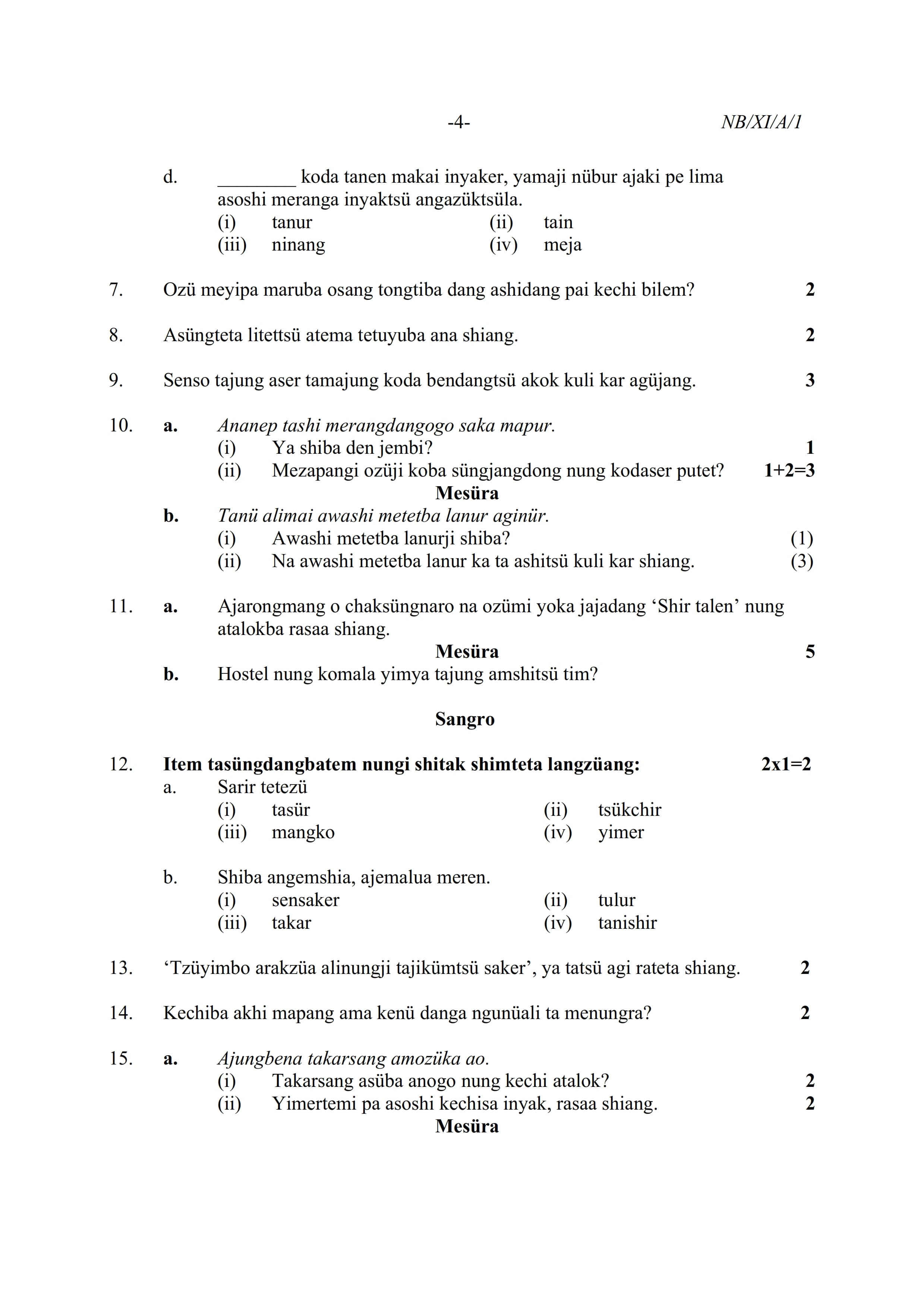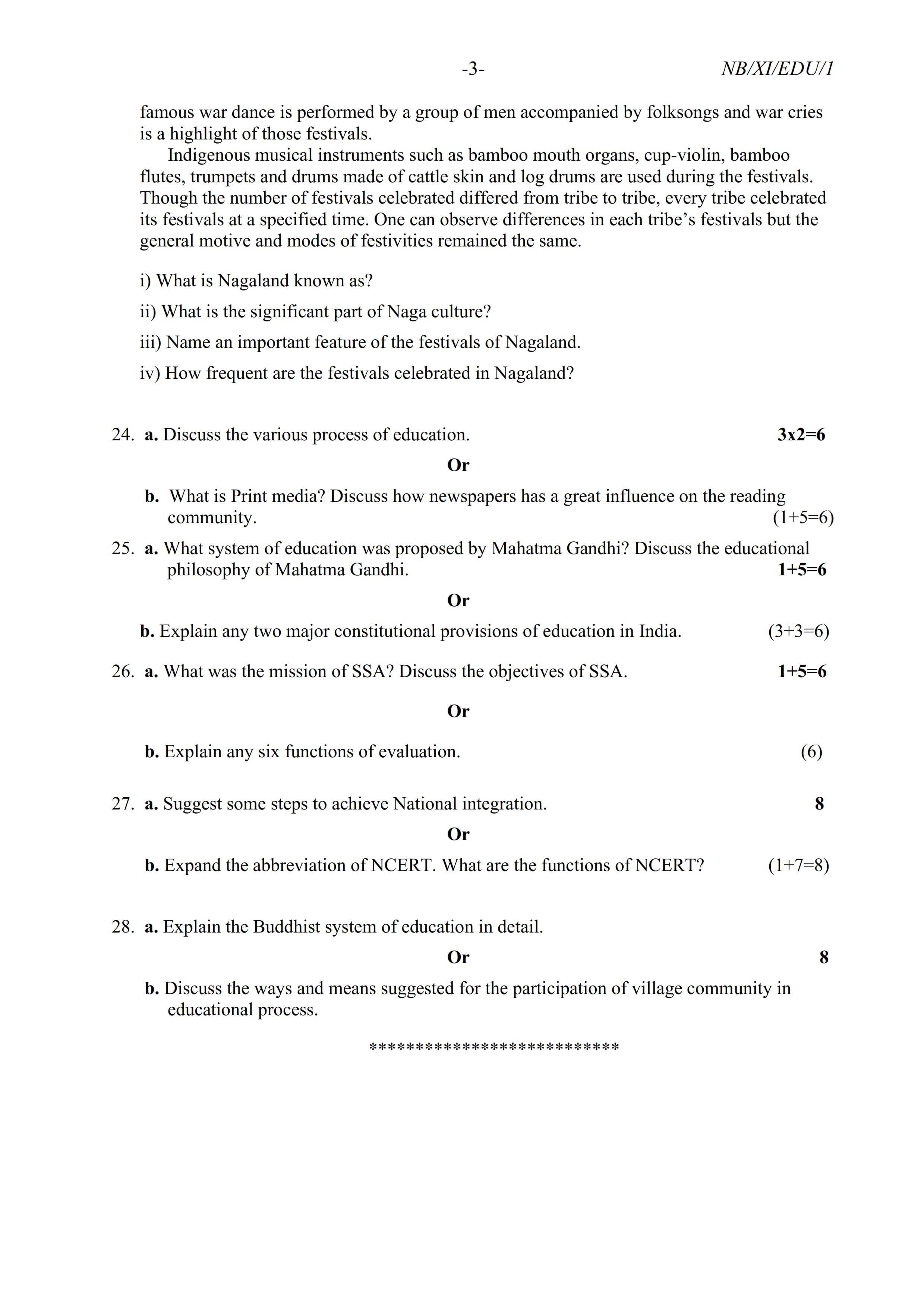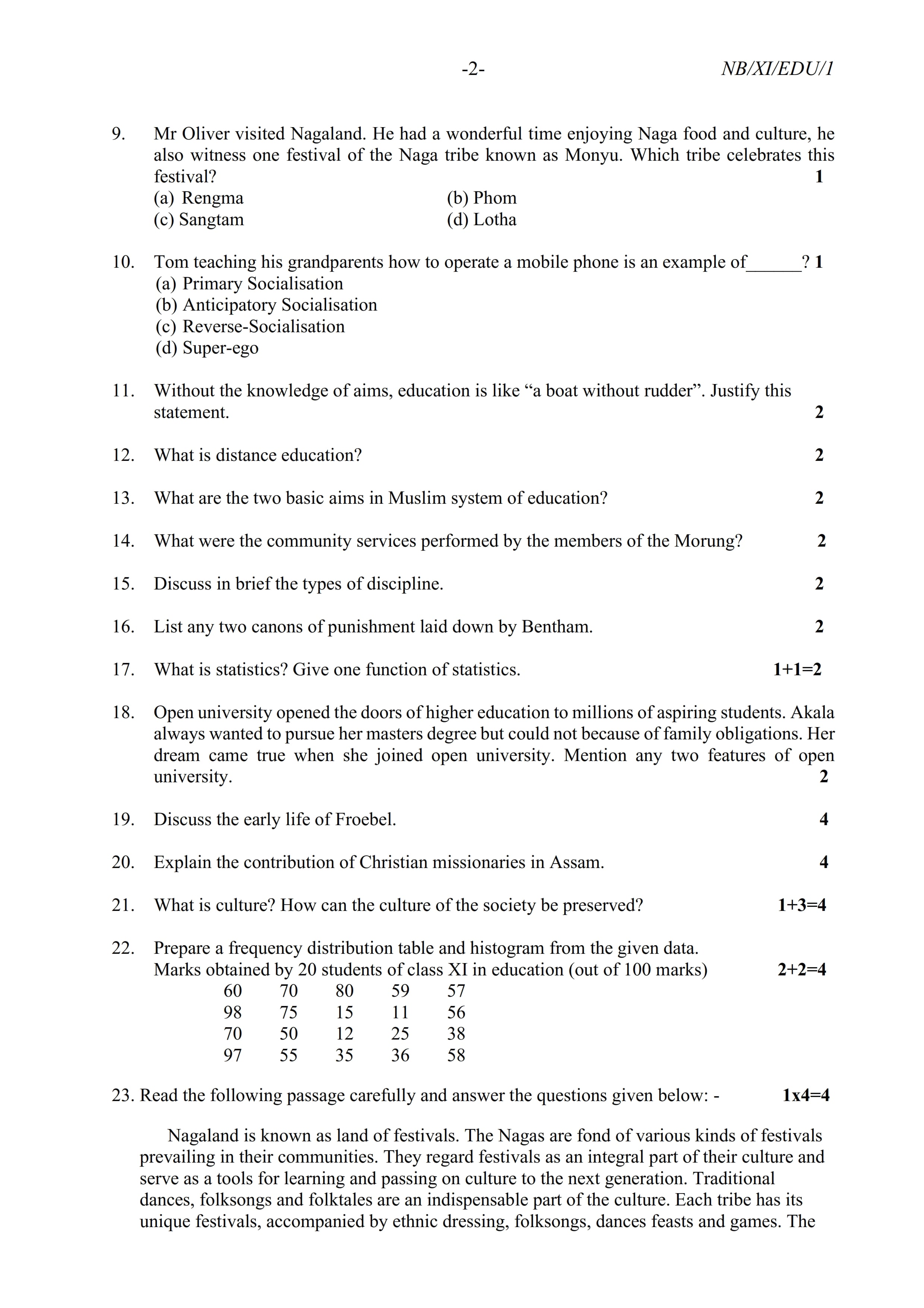 - NBSE Class 11 Question Paper