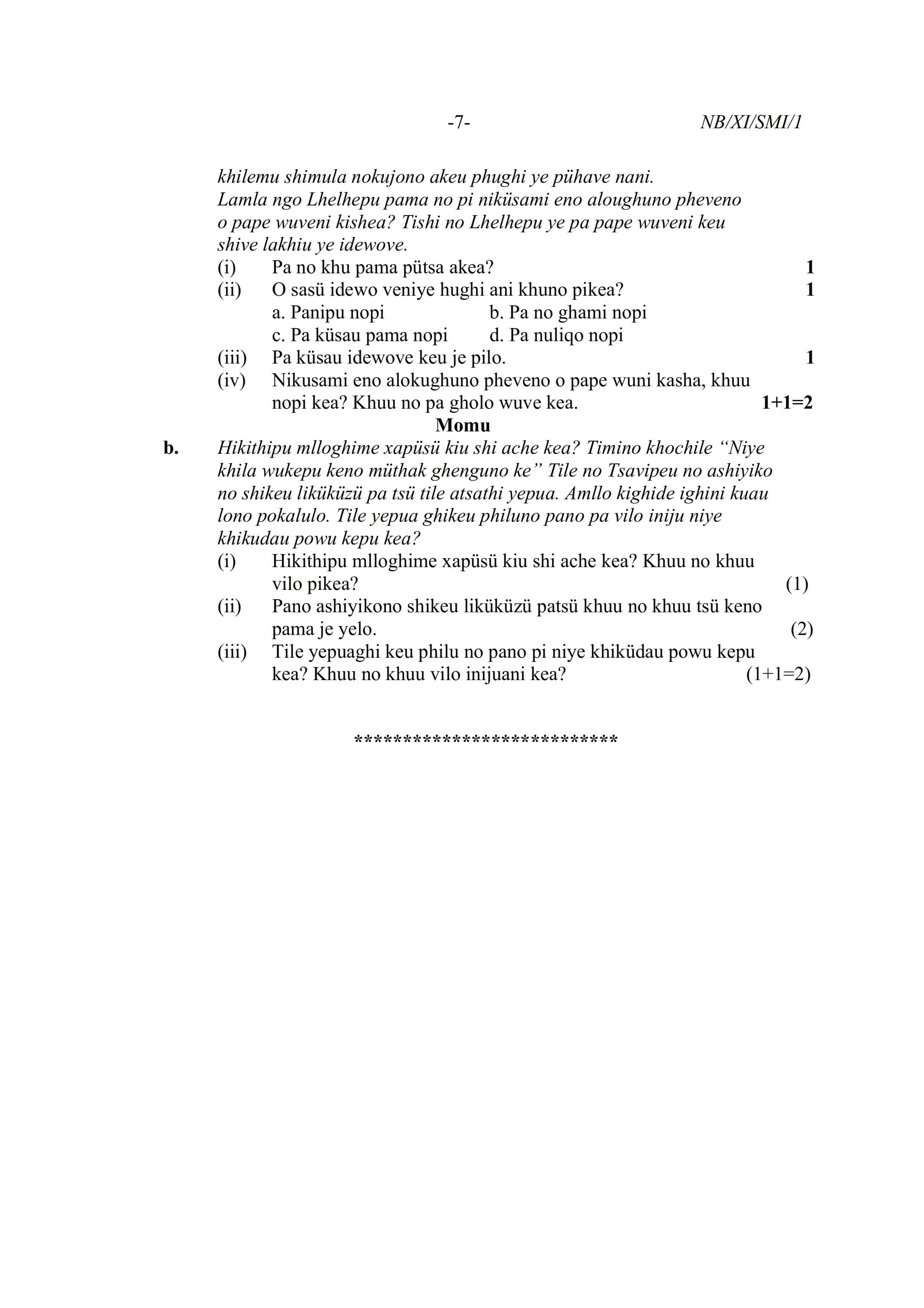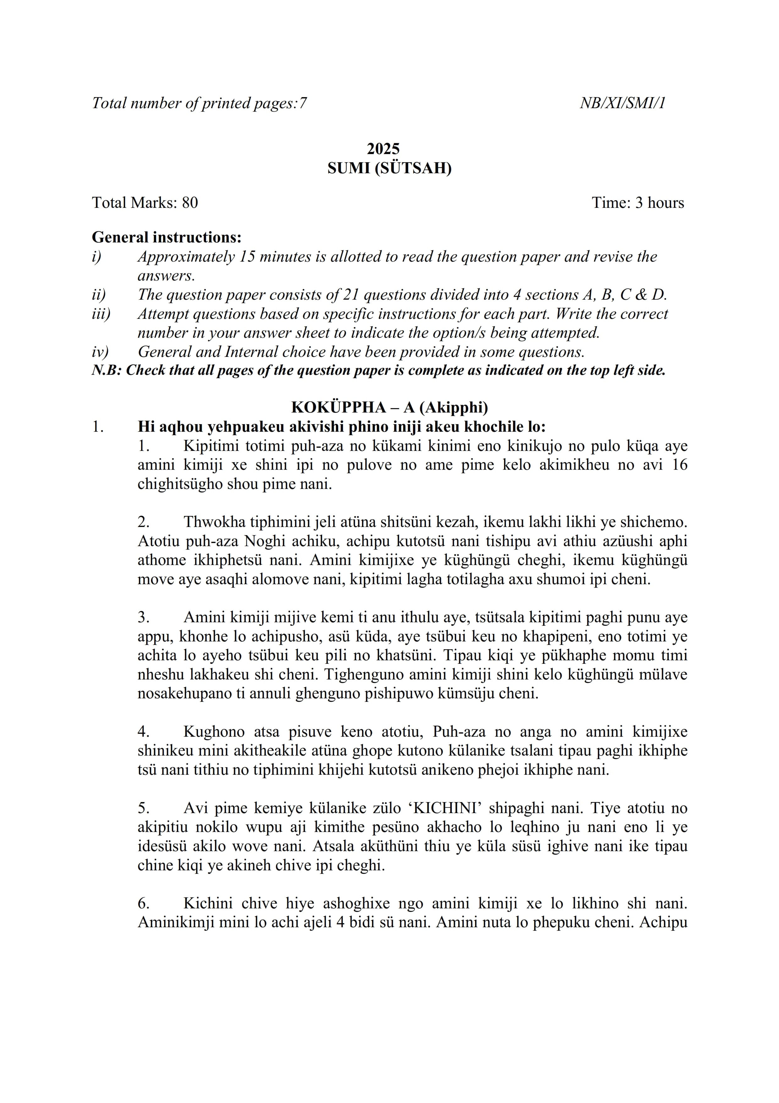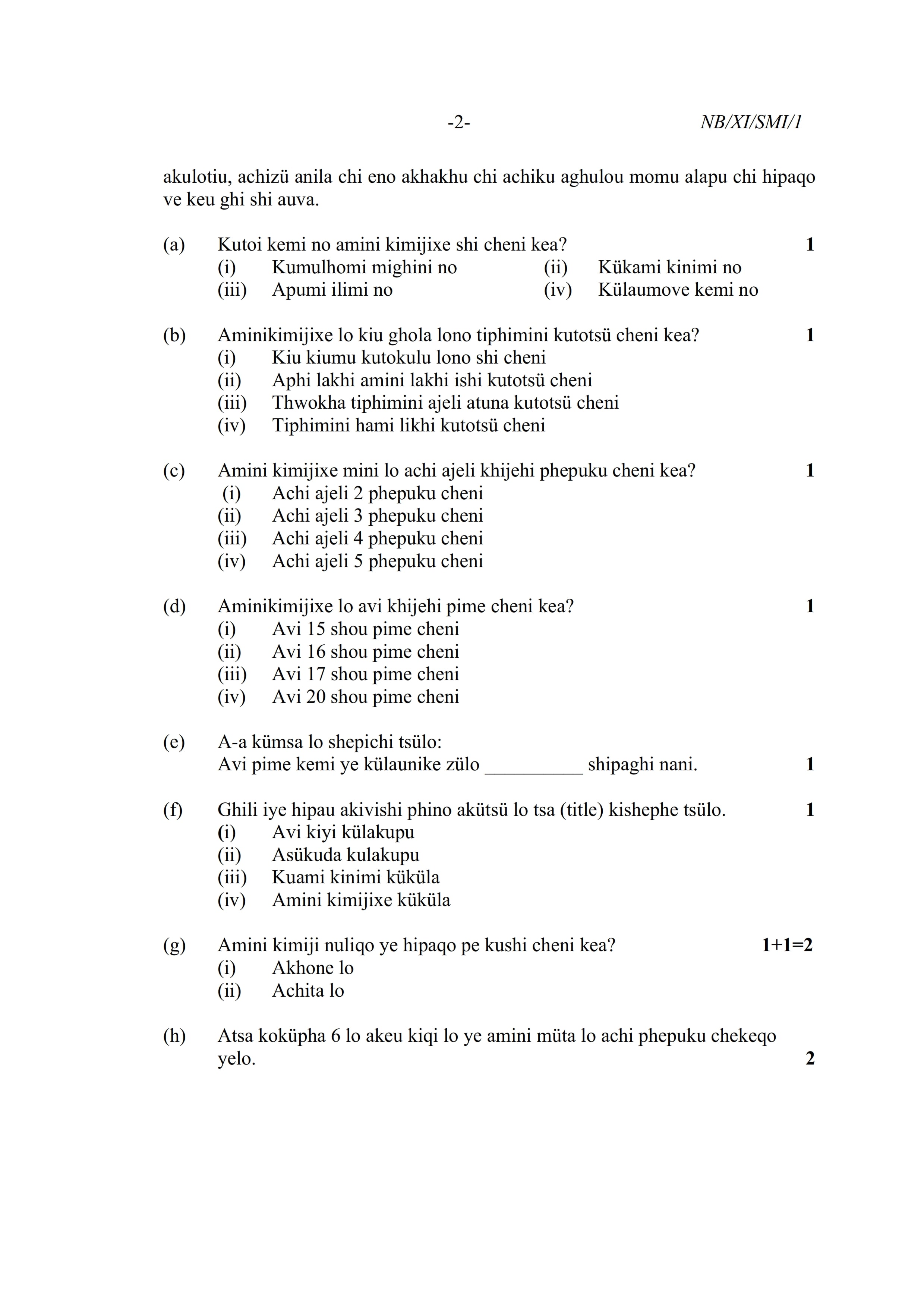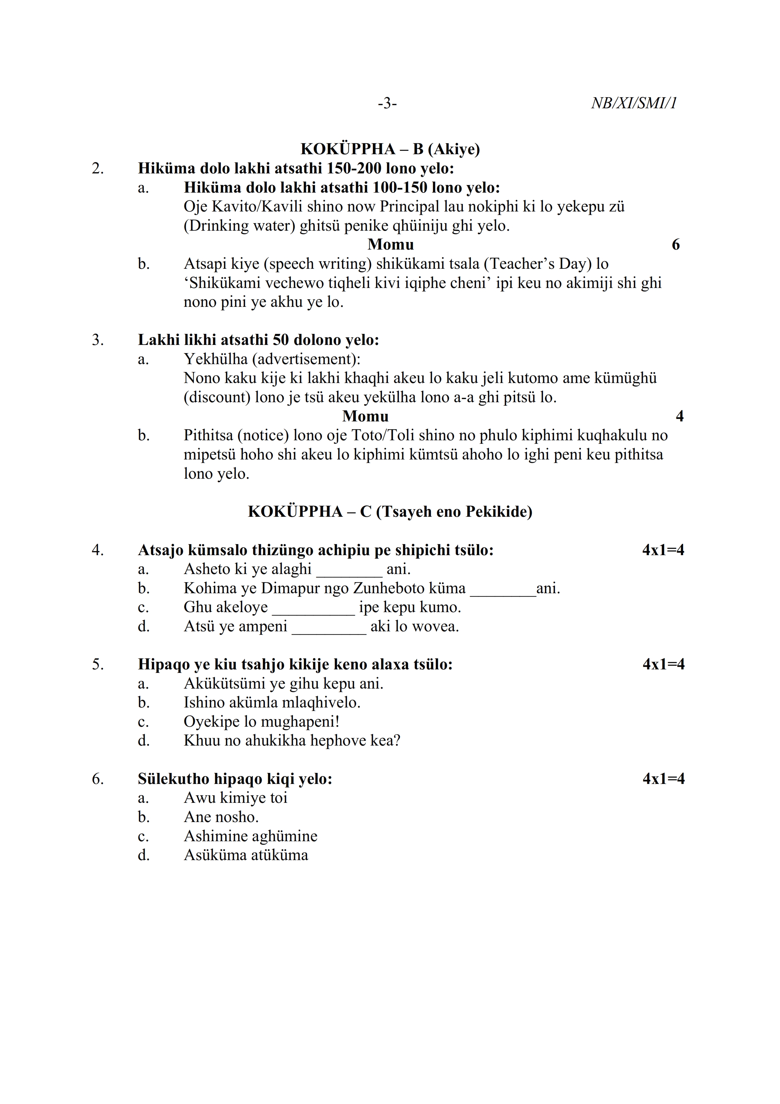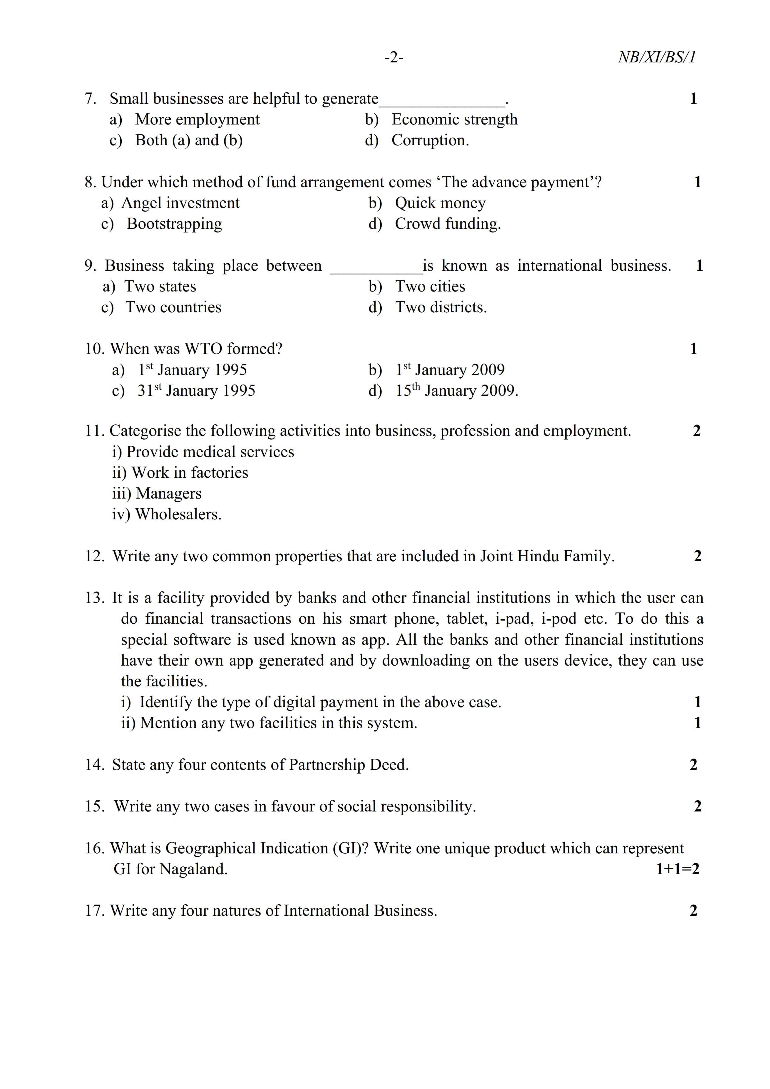 - NBSE Class 11 Question Paper