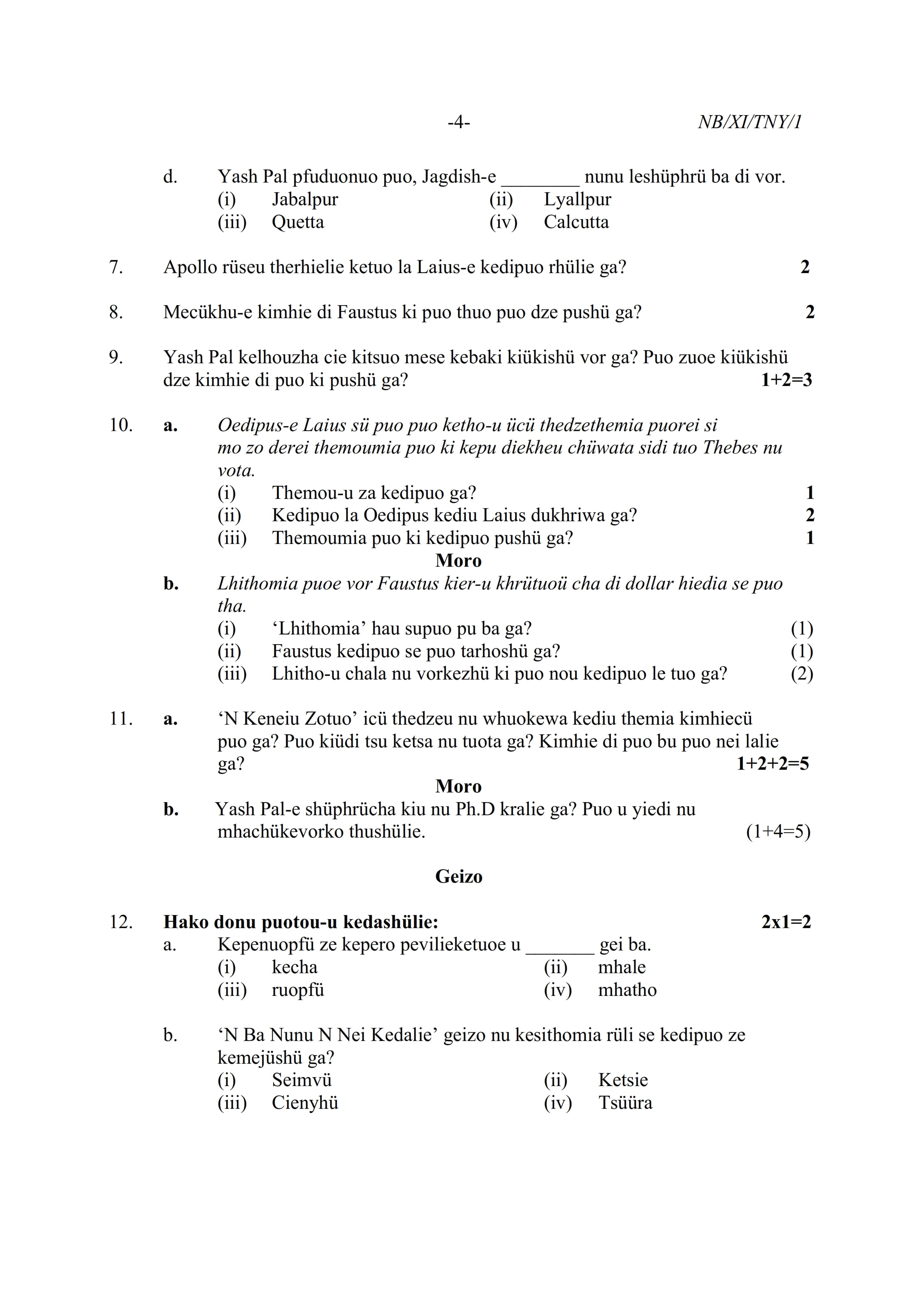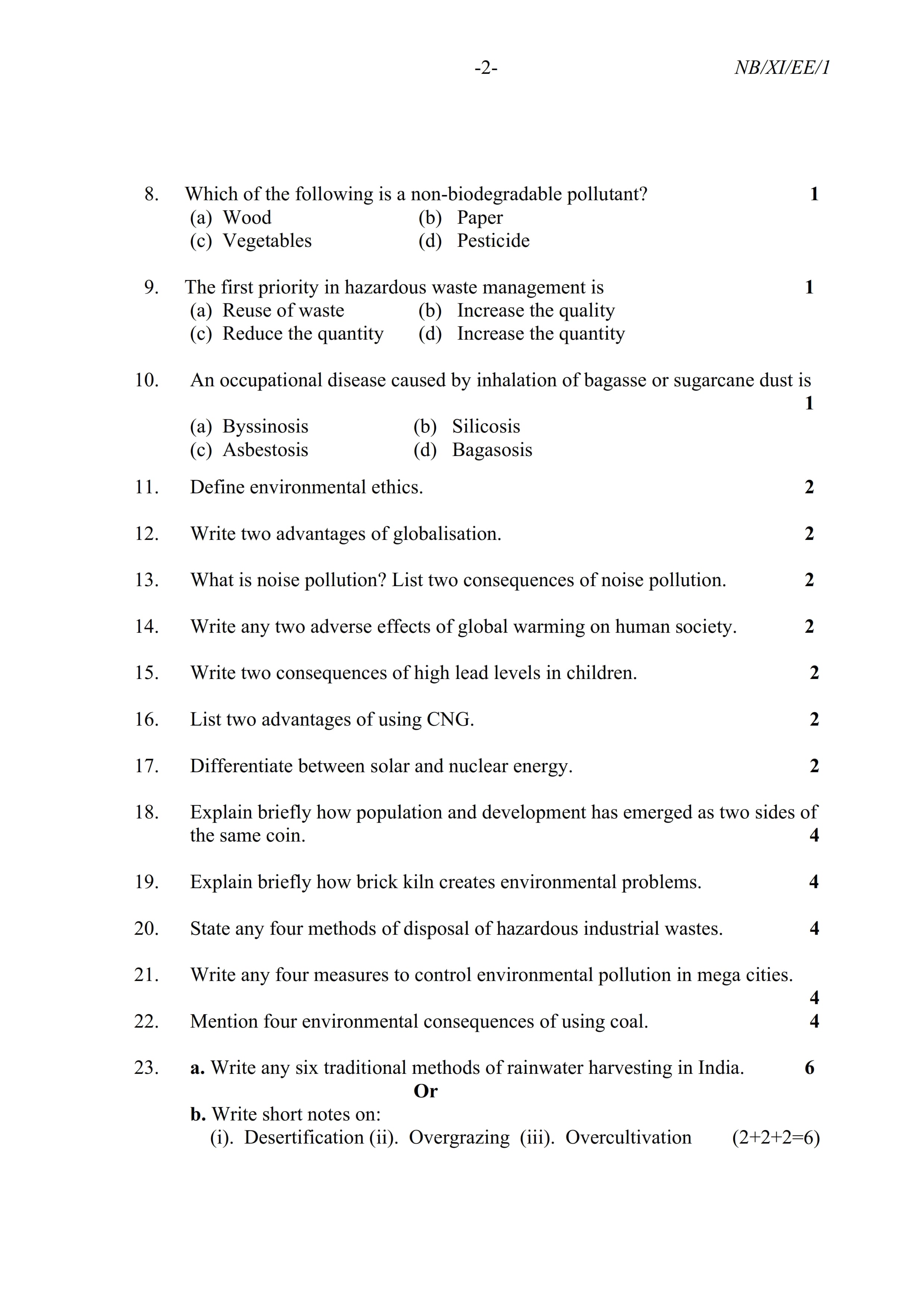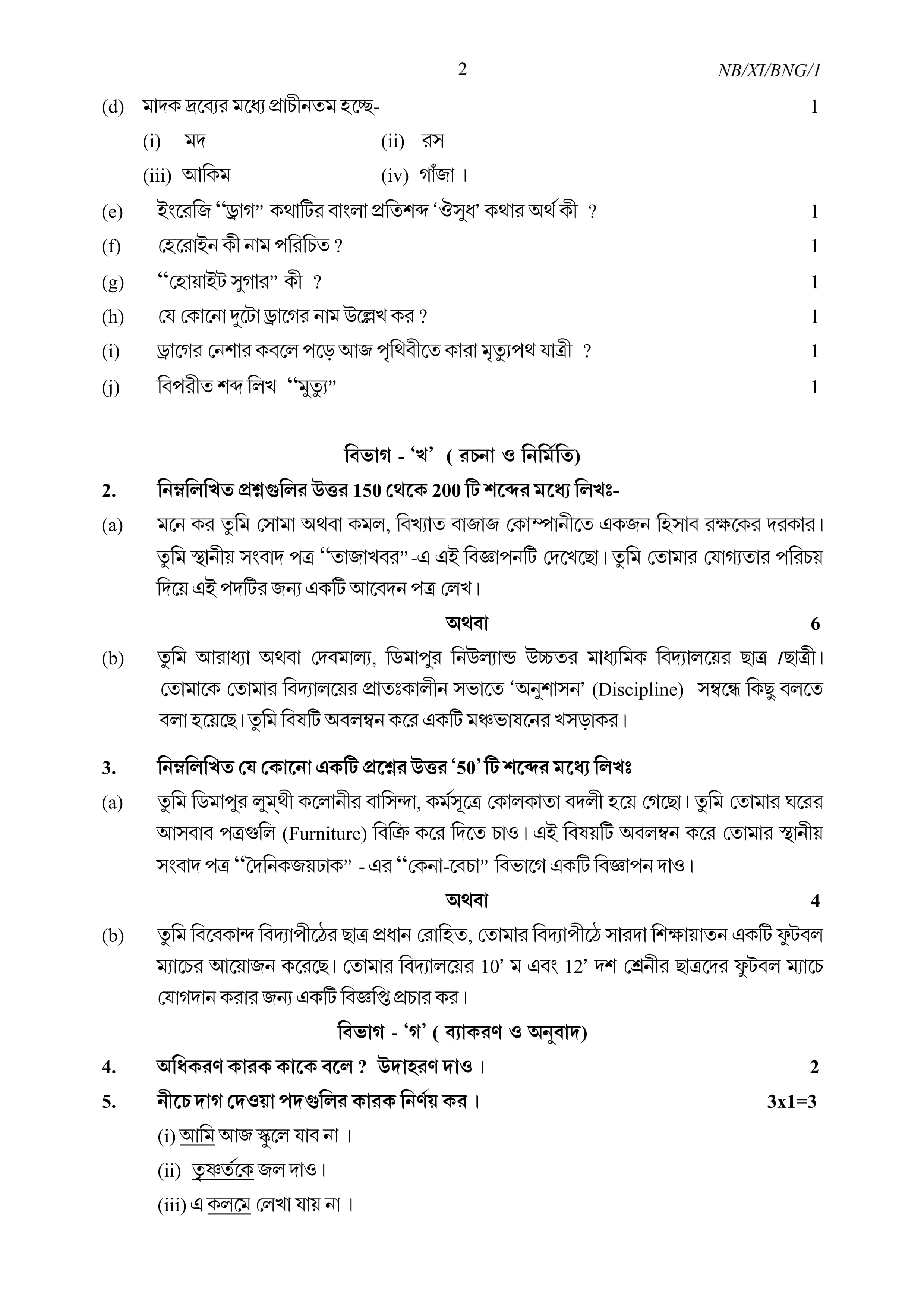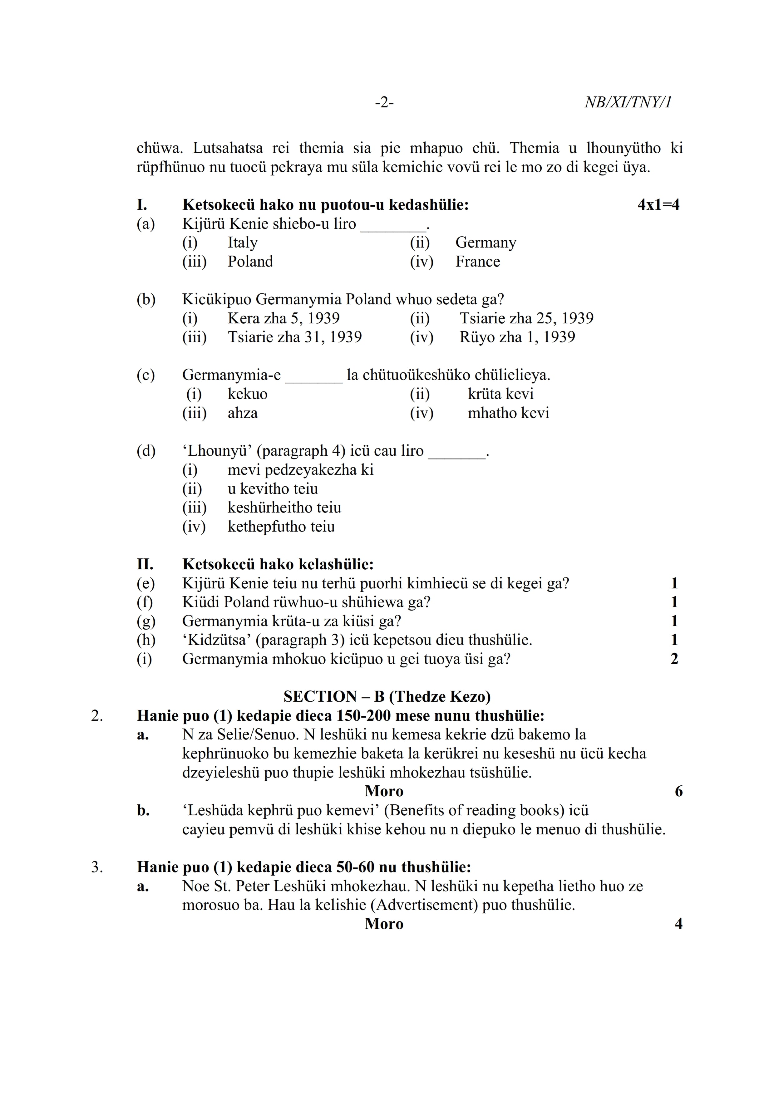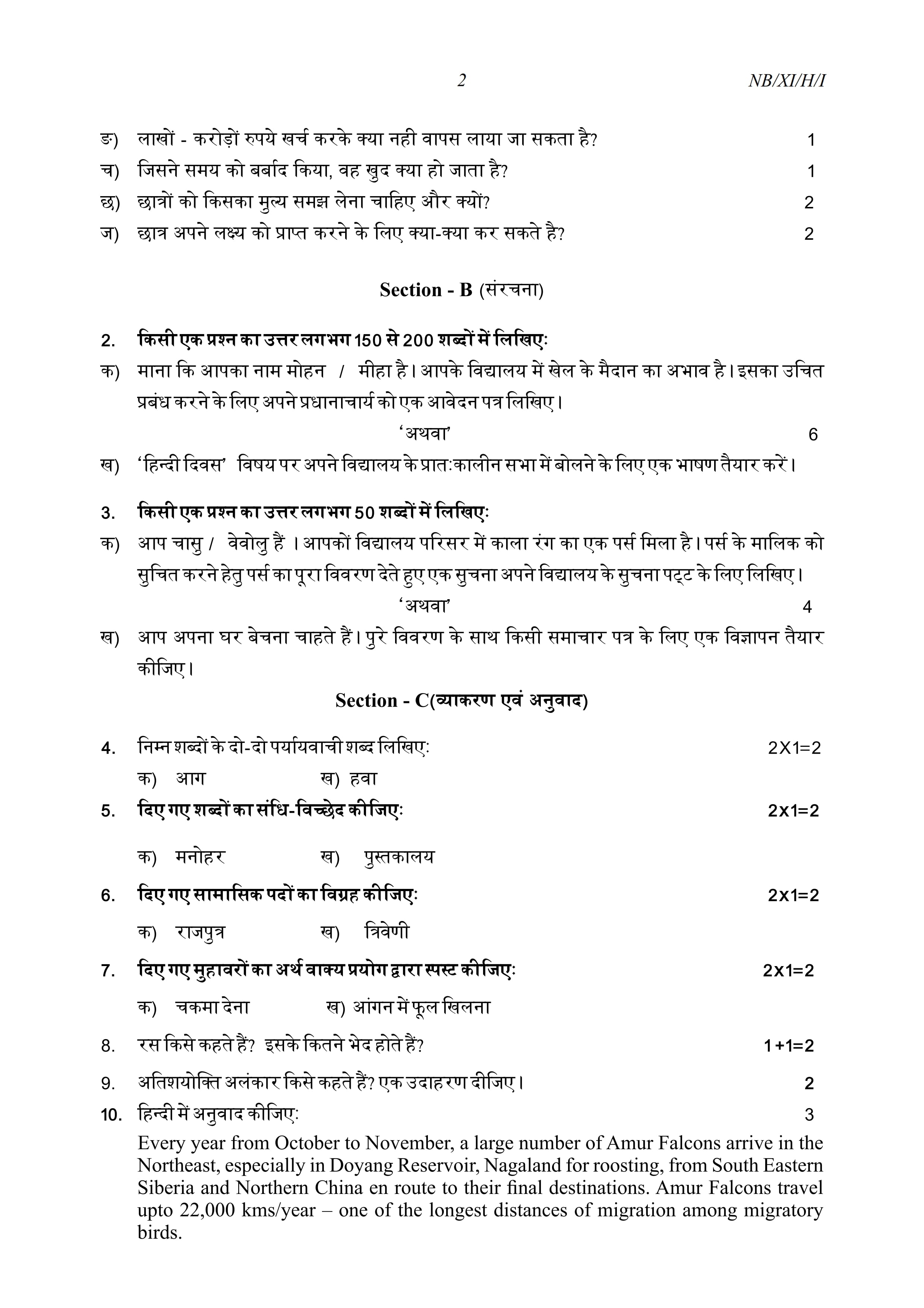 - NBSE Class 11 Question Paper