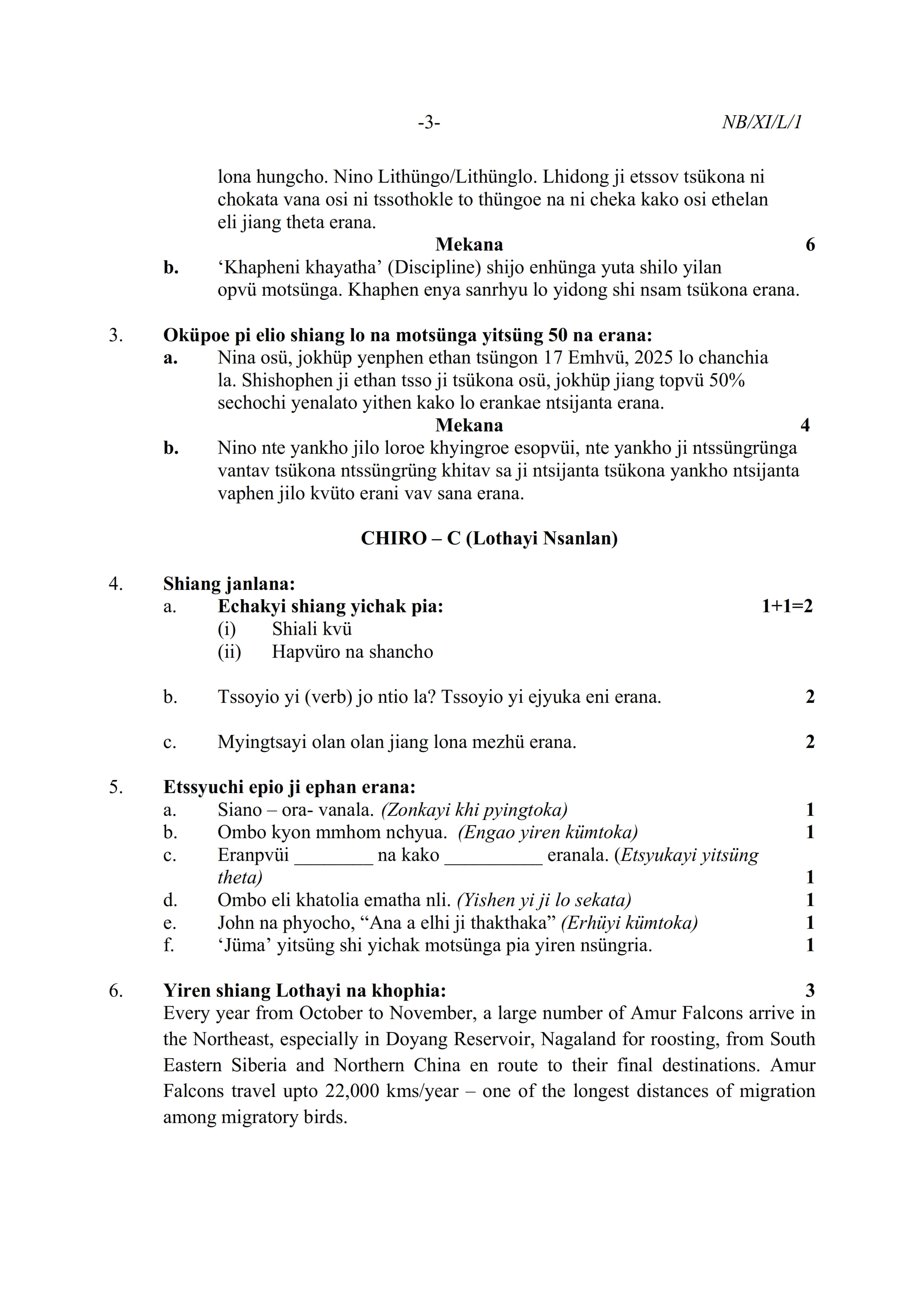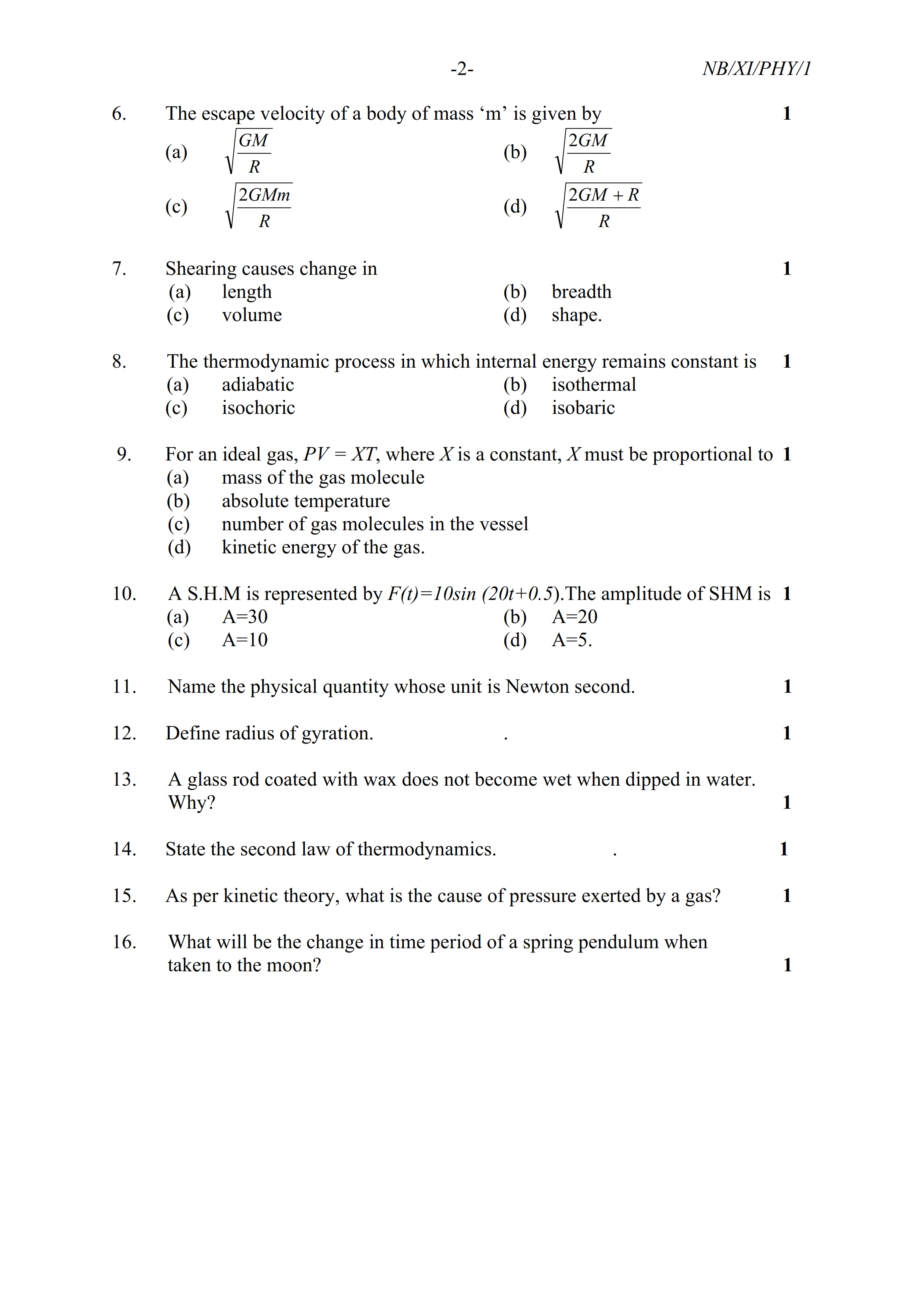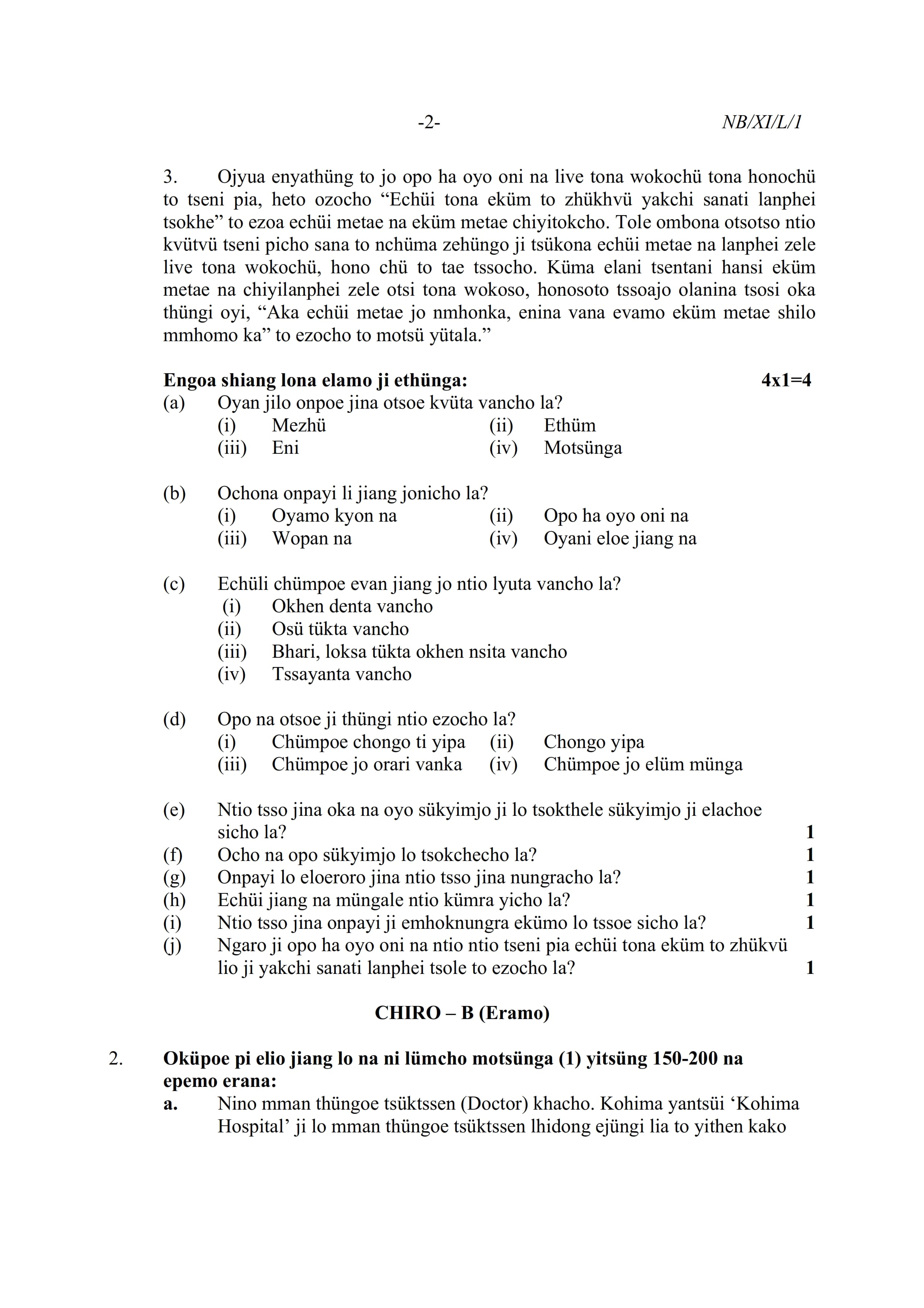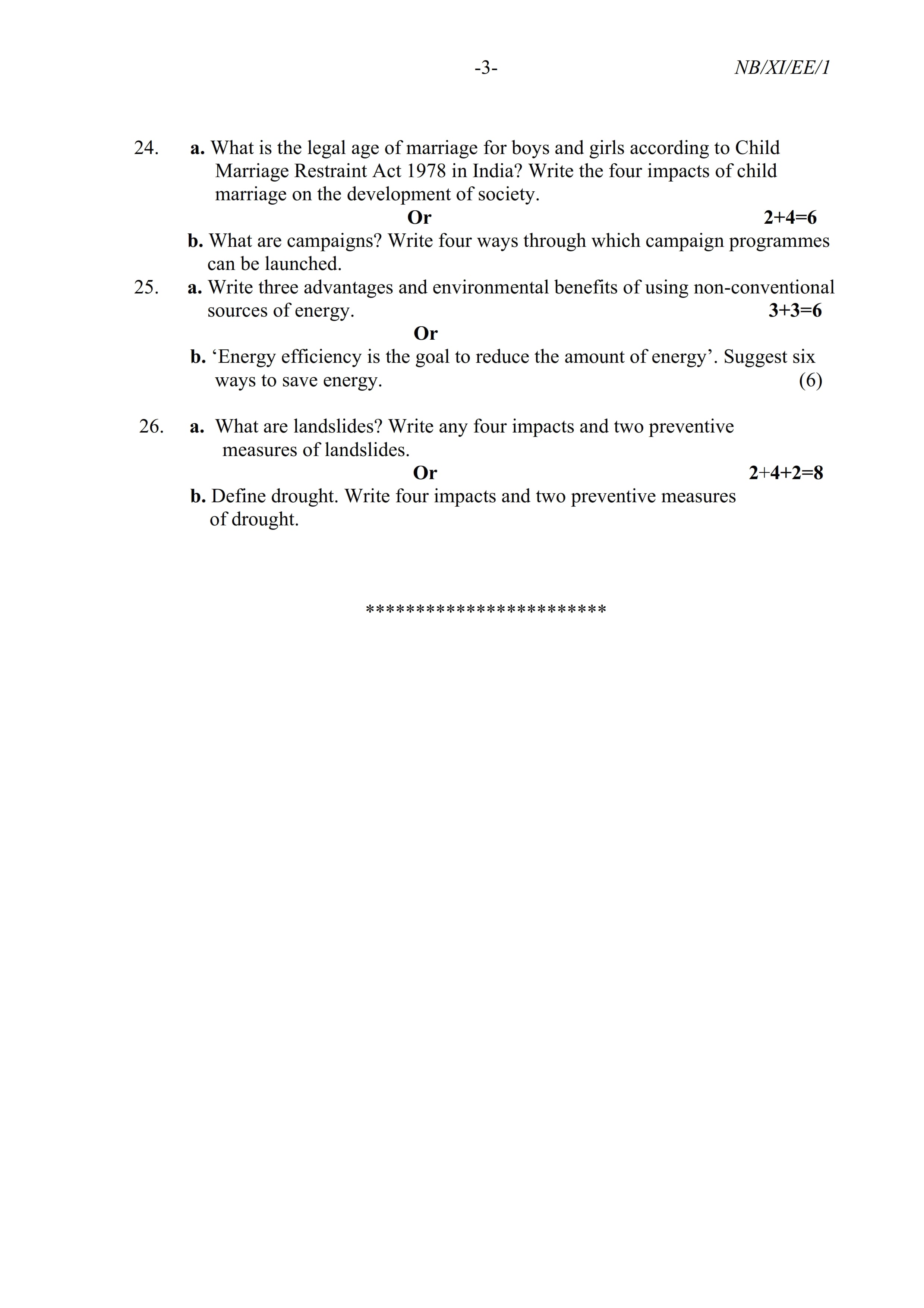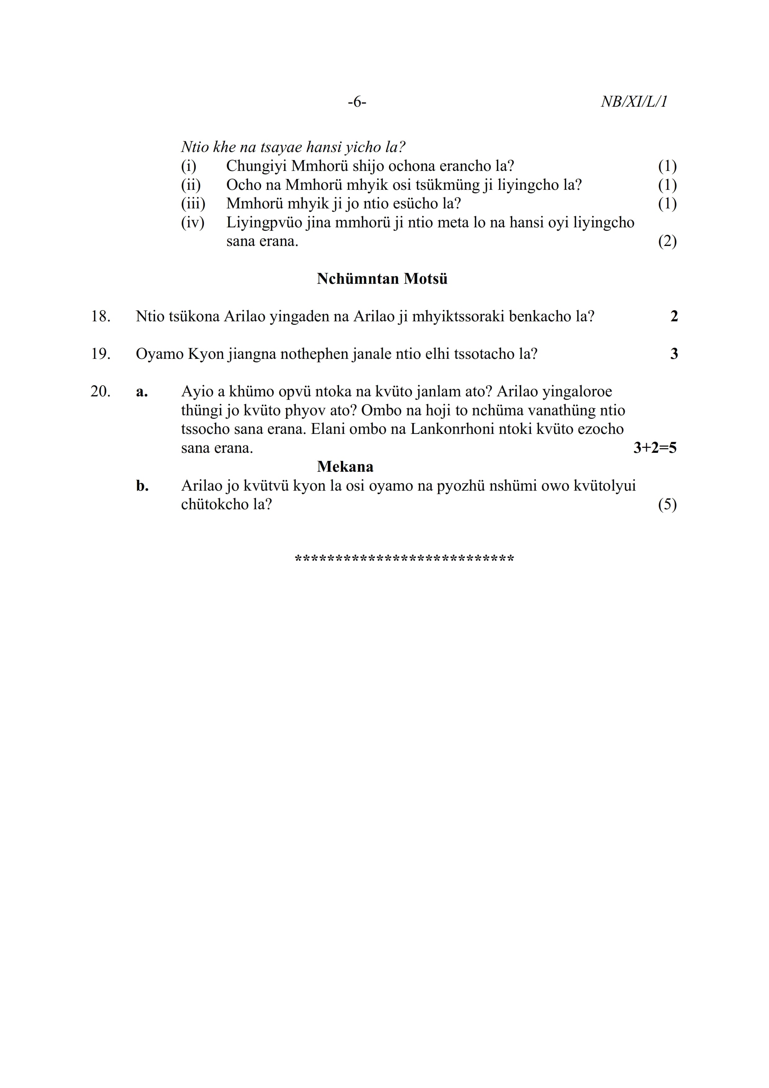 - NBSE Class 11 Question Paper