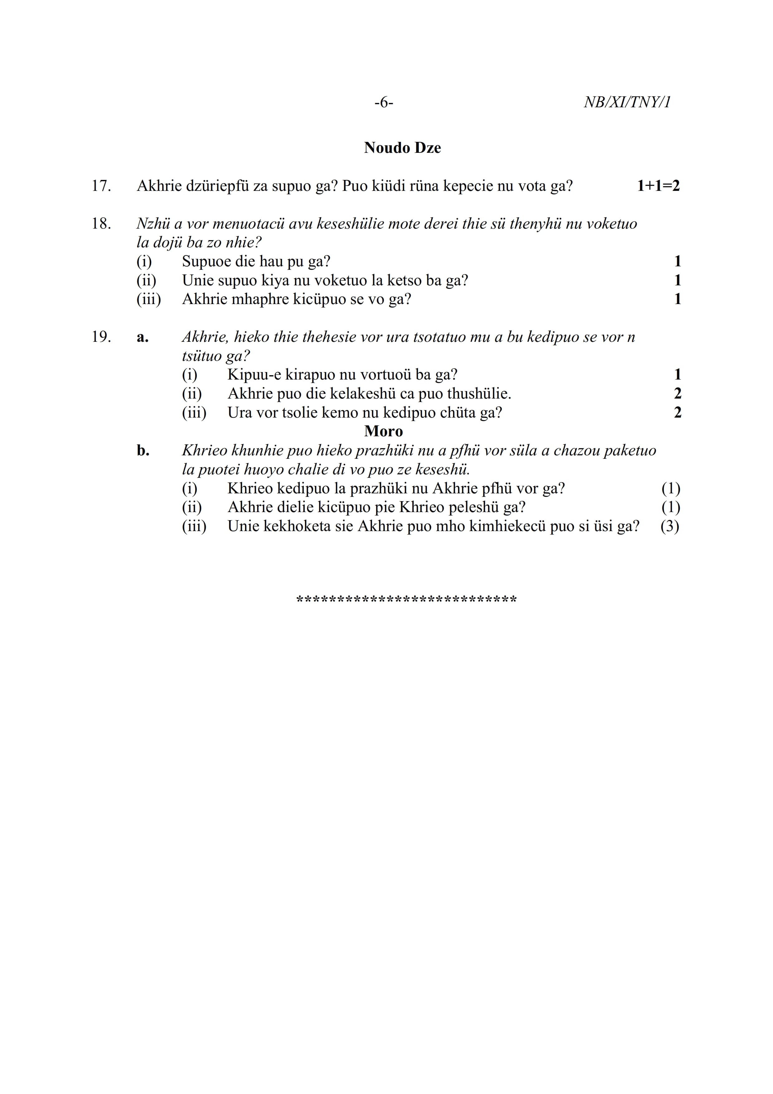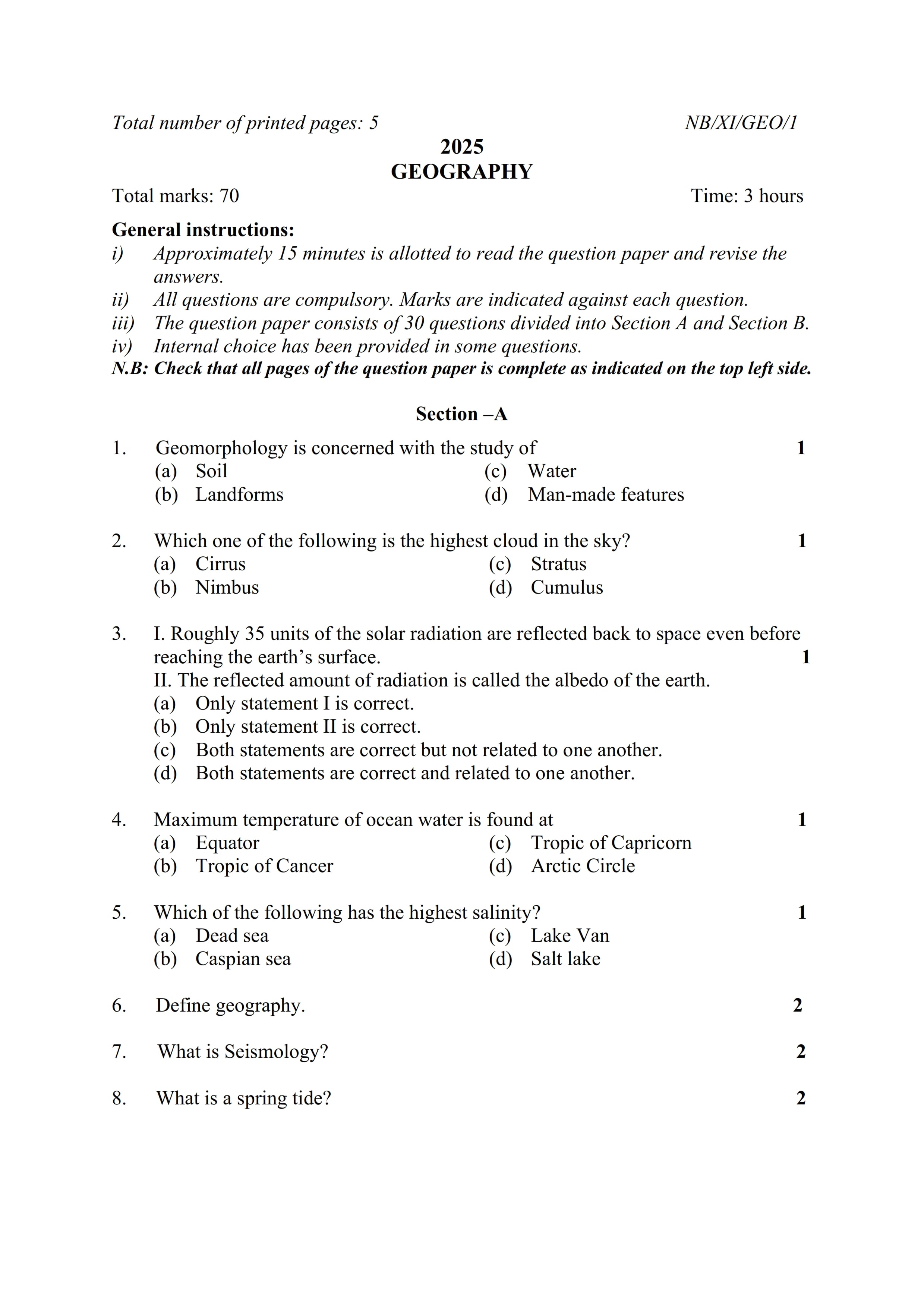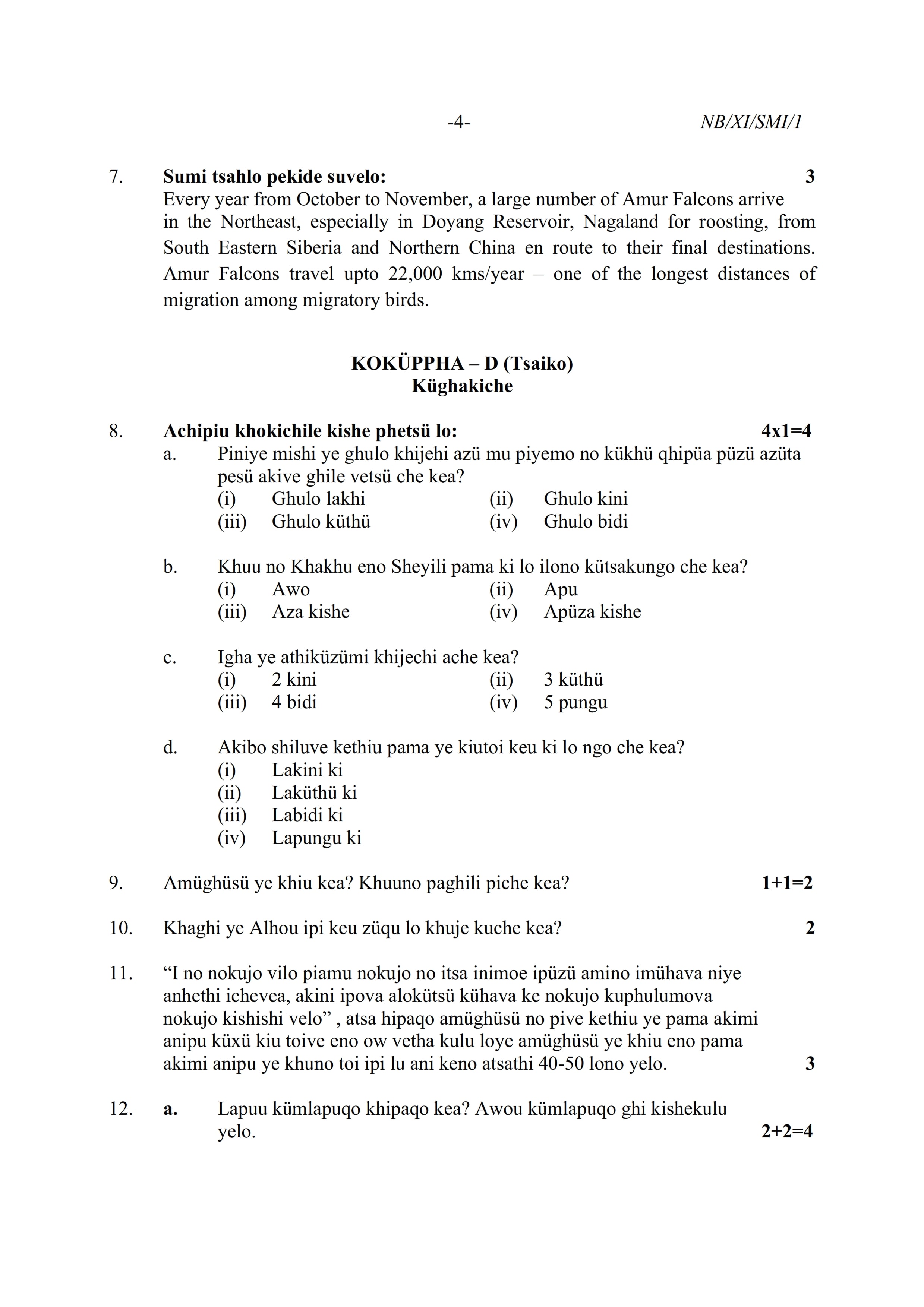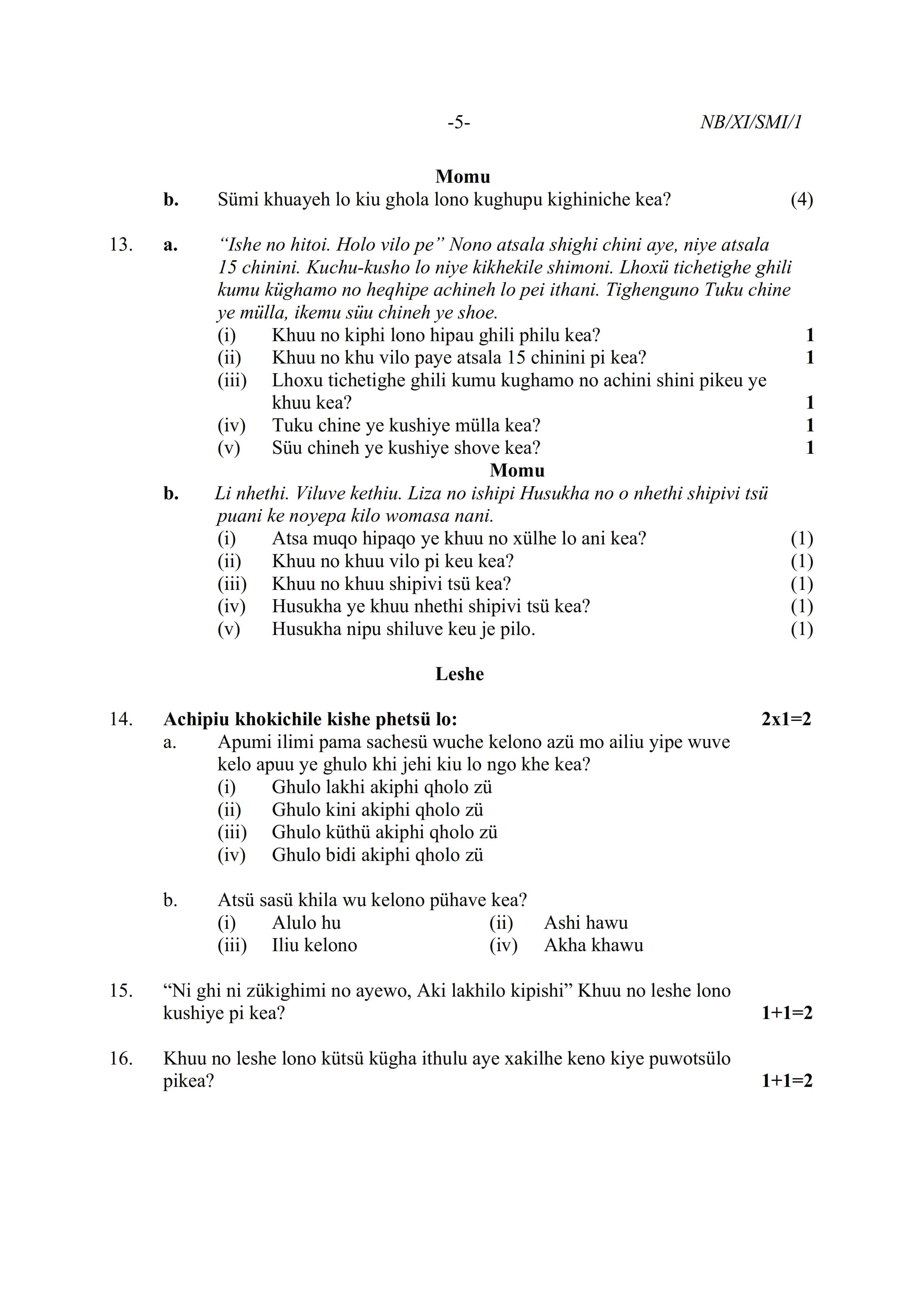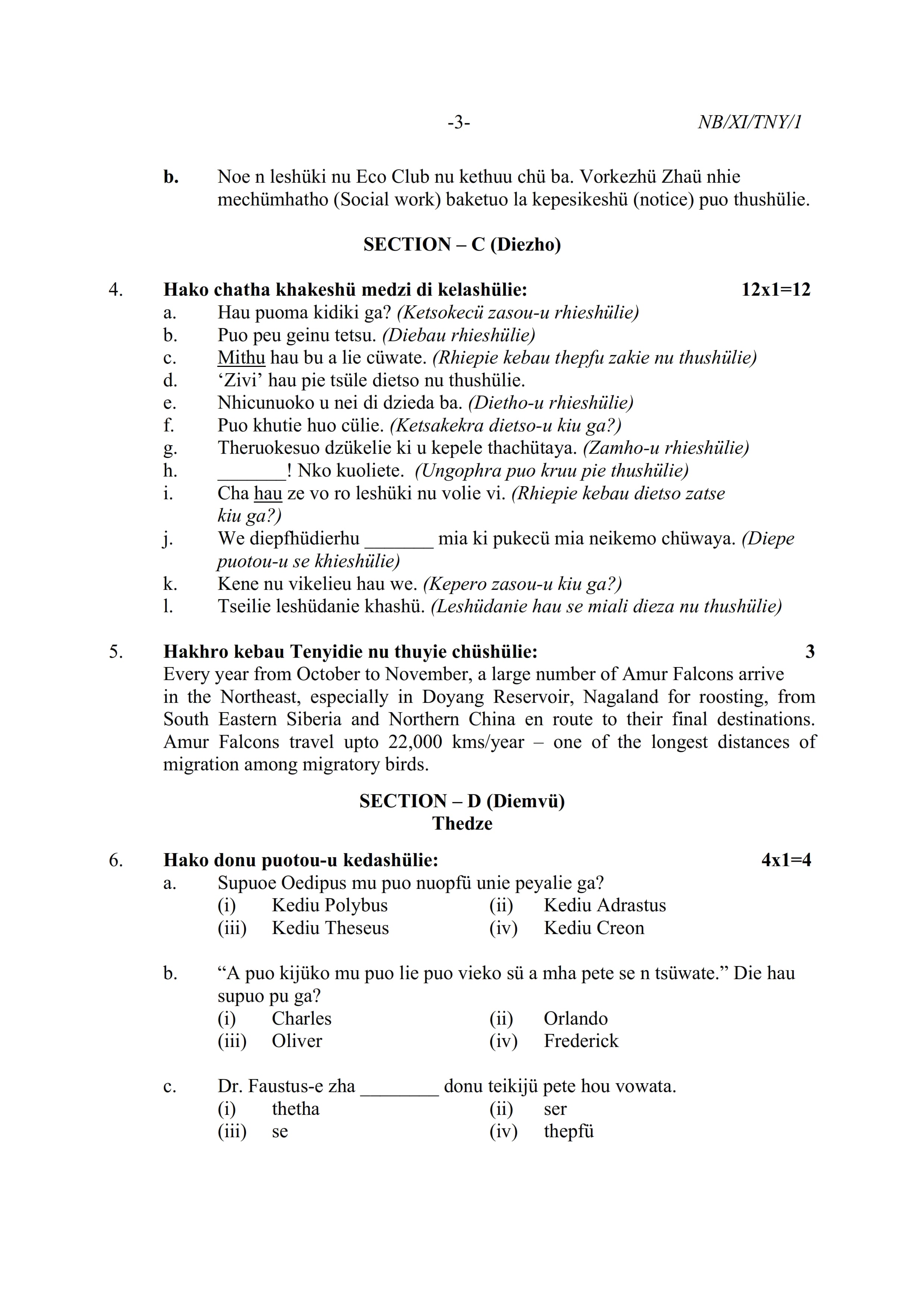 - NBSE Class 11 Question Paper