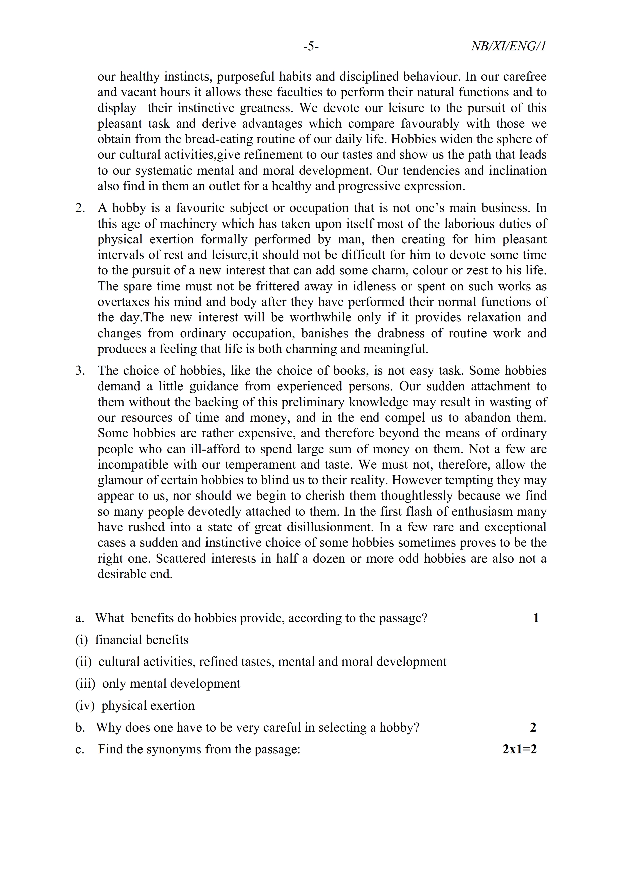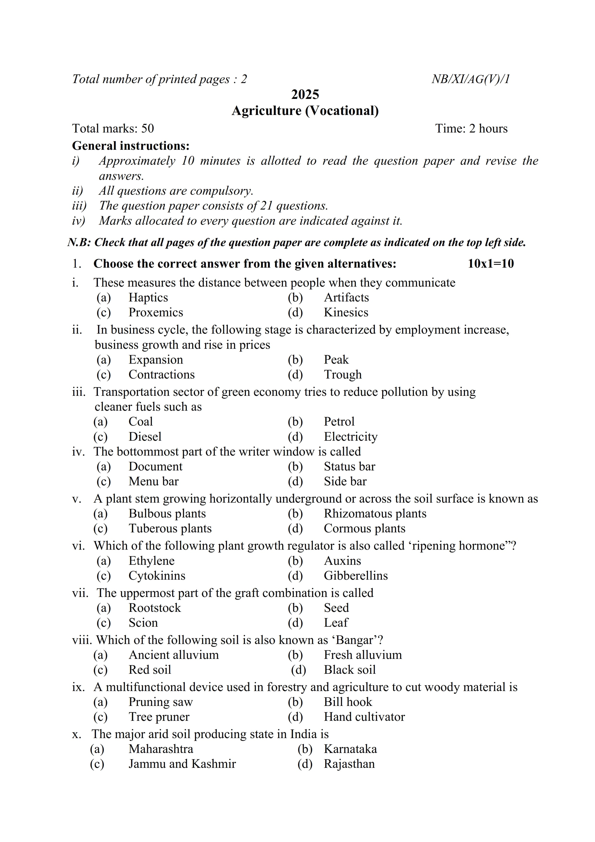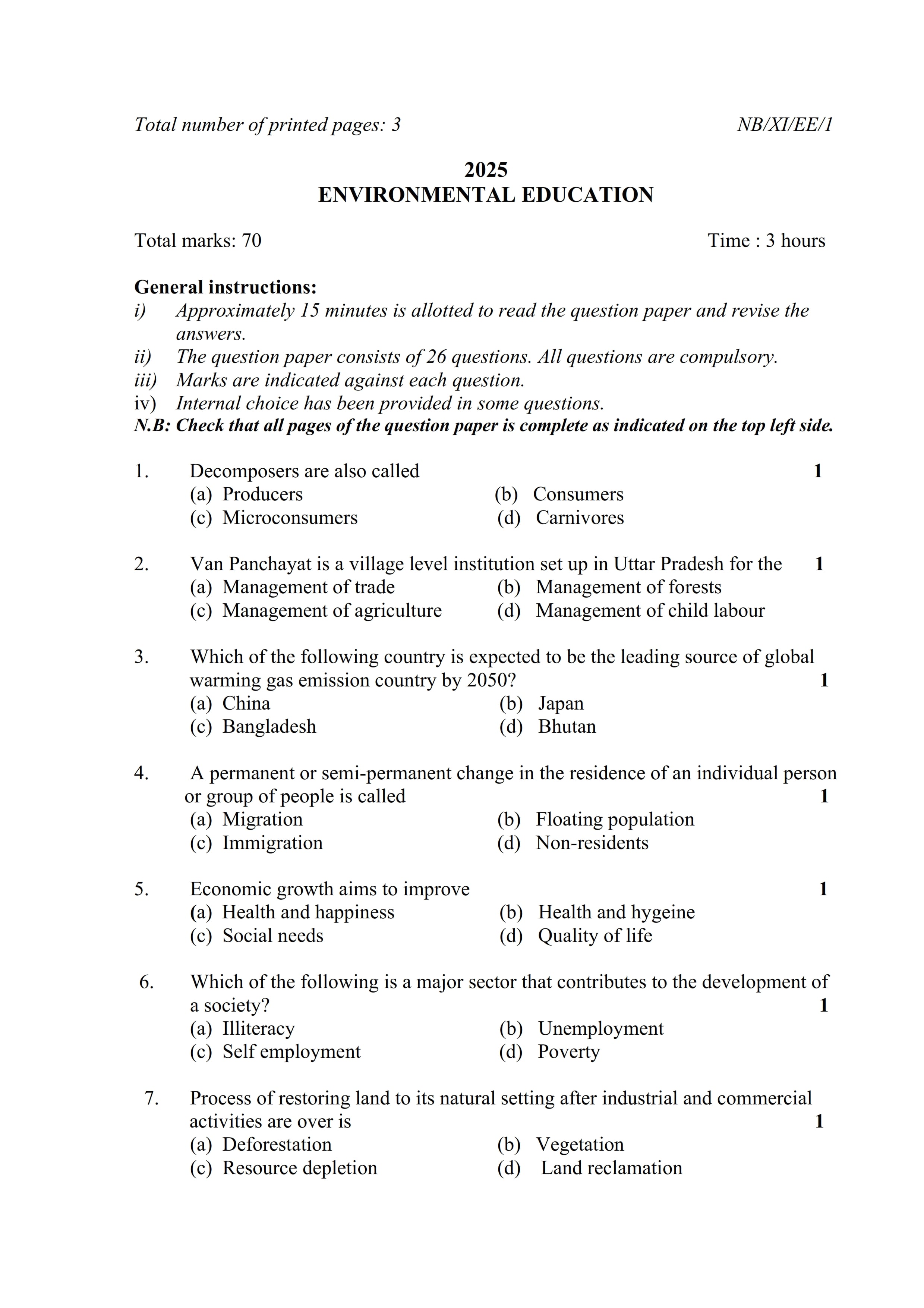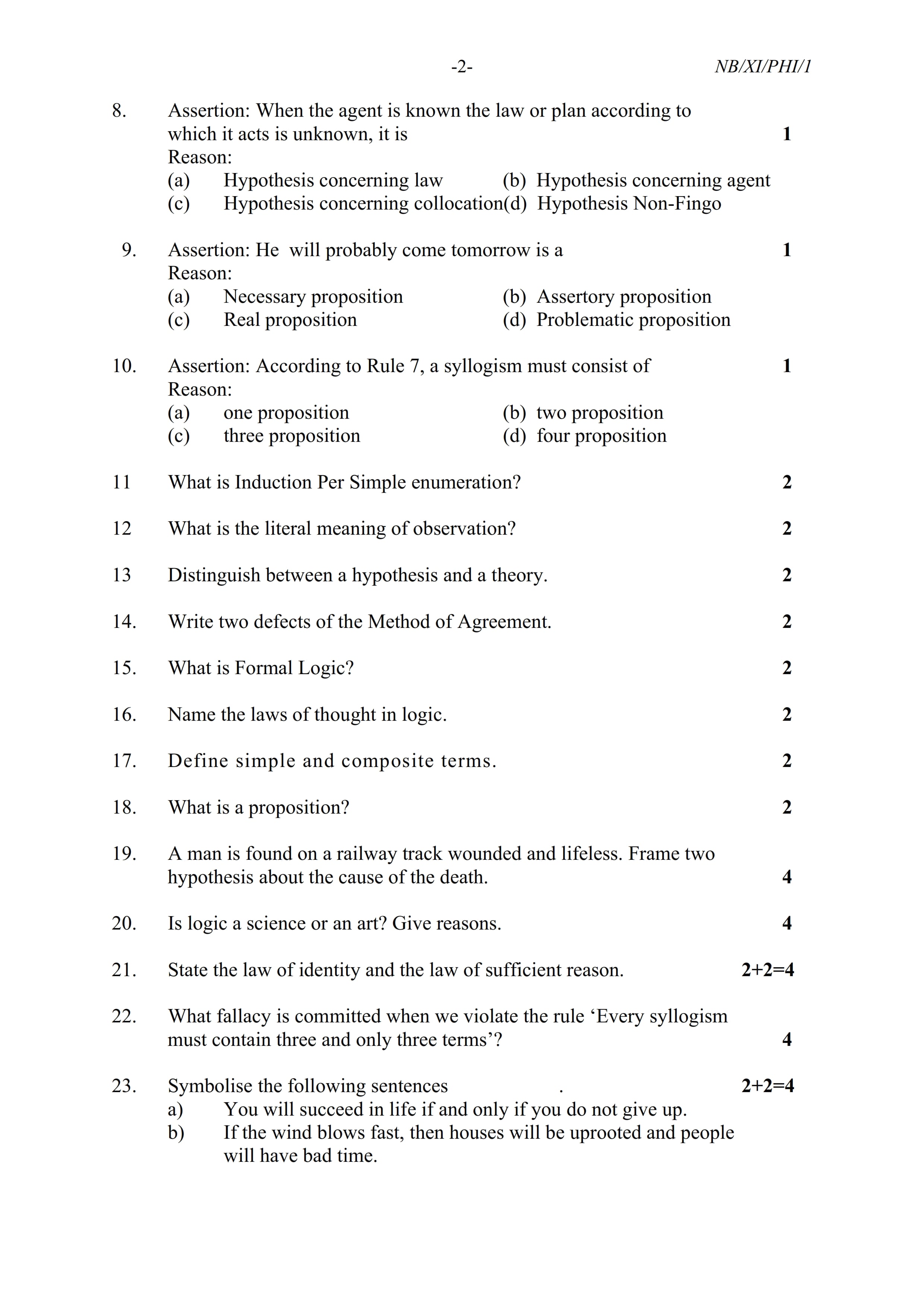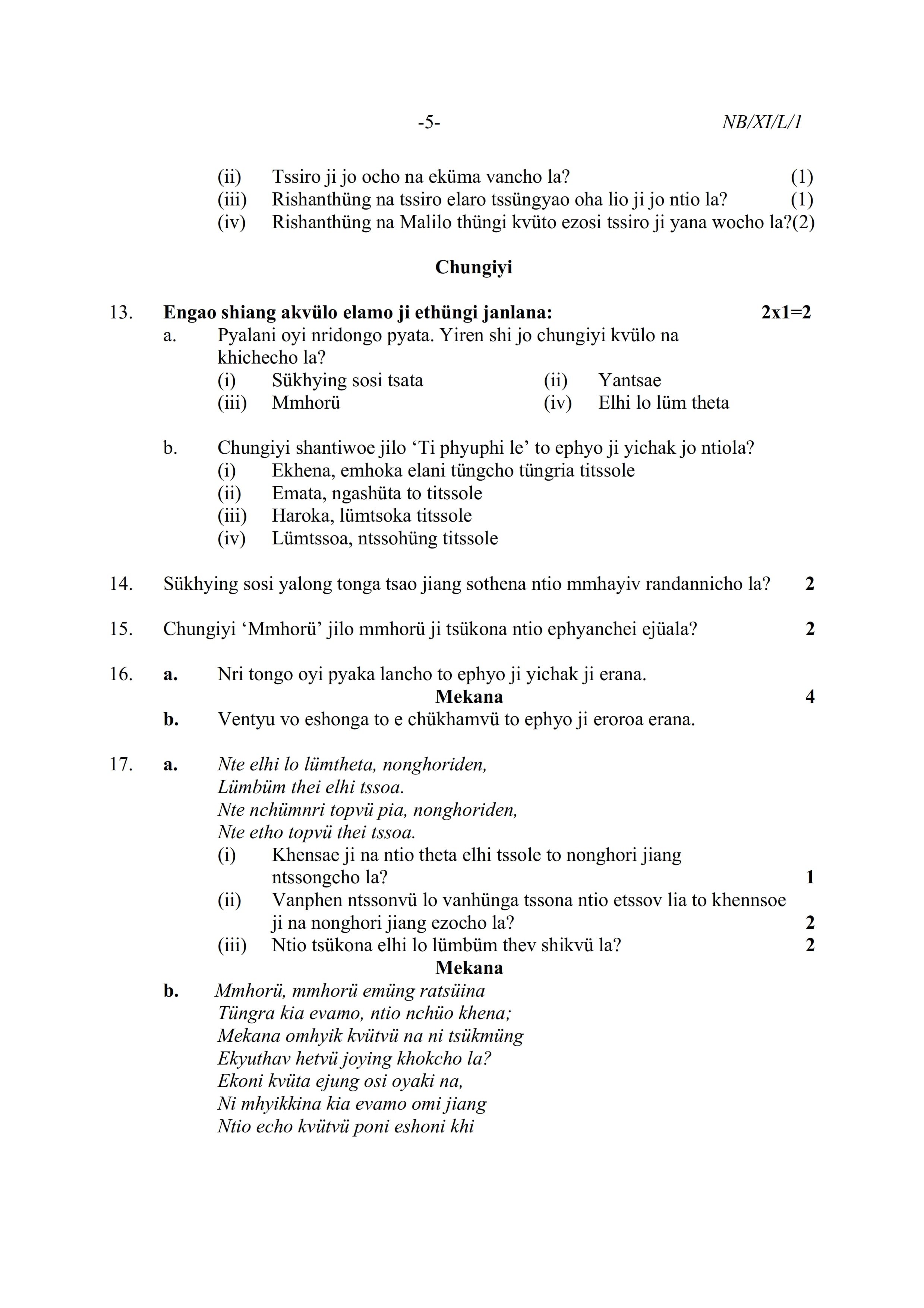 - NBSE Class 11 Question Paper